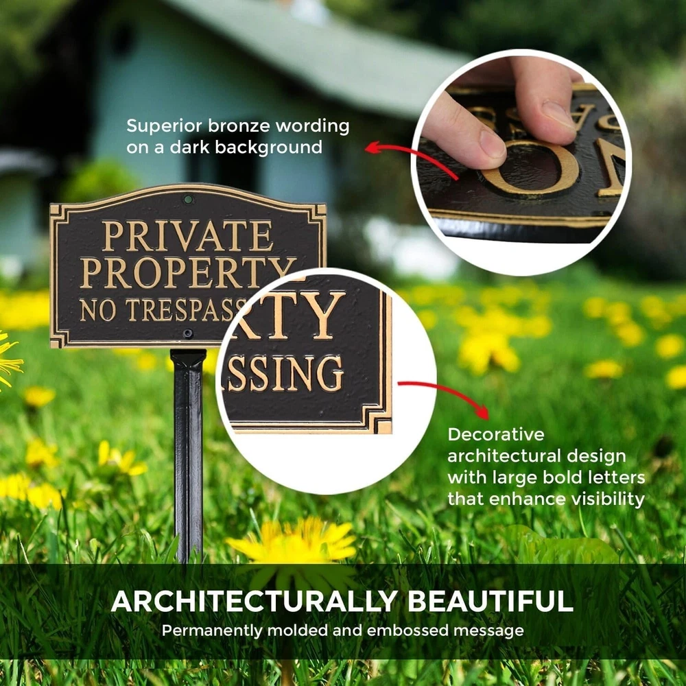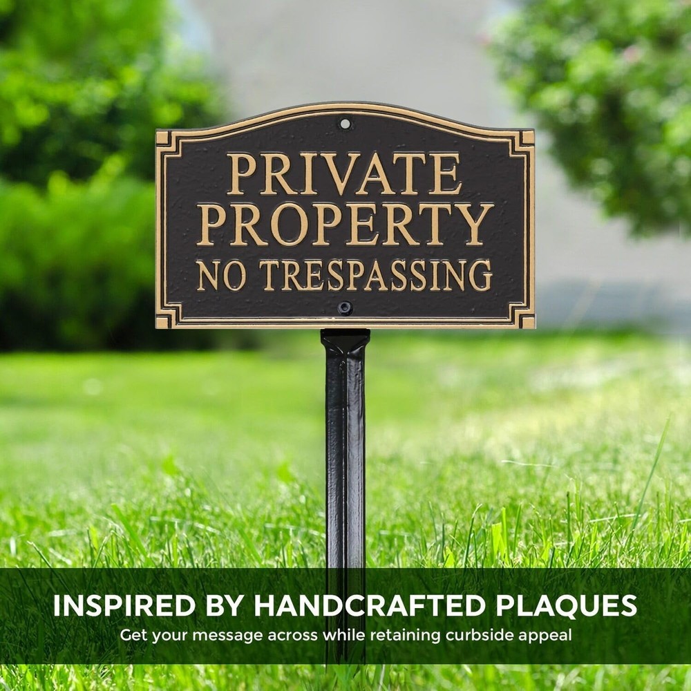 Private Property Metal Plaque with Lawn Stake ‹ › ‹ › ‹ › ‹ › ‹ › ‹ › ‹ › ‹ › ‹ › ‹ › Private Property Metal Plaque with Lawn Stake Elevate the elegance of your property with our exquisite Private Property Metal Plaque, thoughtfully designed to combine durability with aesthetic appeal. Features: DURABLE : Crafted from 375 mil (.375") thick recycled aluminum, this plaque is rustproof and built to stand the of time. ALUMI-SHIELD COATING : Our exclusive Alumi-Shield coating is engineered to endure harsh weather conditions, repel UV rays, and preserve the plaque's stunning finish. ARCHITECTURAL DESIGN : Featuring a decorative architectural design, the plaque presents large, bold letters for enhanced visibility, making it both functional and stylish. INSTALLATION : The classy golden black plaque includes an 18" aluminum lawn stake and all necessary hardware, ensuring effortless installation in your yard or garden. PACK CONTENTS : You will receive one plaque, one stake, and the required hardware for easy setup. Benefits: Durability that withstands the of time and the elements. Elegant design that enhances the curb appeal of any property. Effortless installation process with included stake and hardware. Increased visibility with bold lettering, ensuring clear communication of property boundaries. Why choose our Private Property Metal Plaque? Your property deserves a touch of elegance and security, and our Private Property Metal Plaque serves both purposes magnificently. Made of robust materials and designed to be visually striking, this metal plaque not only marks your private space but also contributes to the overall beauty of your outdoor environment. Ensure that your property is well-defined and beautifully showcased with this durable and stylish sign. Don’t wait to add a statement piece to your property—order your Private Property Metal Plaque today and enhance your outdoor space. Shipping Free & Fast Shipping - We offer free shipping to most of the USA with a normal delivery time of 3-10 business days. However, due to various situations, additional delivery time (up to 3 weeks) may be required for some items. Alternative Carriers - We may use alternative carriers (e.g. USPS, FedEx, UPS, etc.) to ensure your package arrives safely and on time. Due to the use of multiple carriers, we are unable to provide a tracking number automatically. Handling Time - Orders are processed and shipped within 1-5 business days of receiving cleared payment. Shipping Restrictions - Shipping to Alaska, Hawaii, Puerto Rico, Guam, and other US territories may incur shipping charges or delivery restrictions. Please contact us before ordering, or your order can be refunded/cancelled. State Restrictions - There may be restrictions based on your state of purchase. For example, certain items may not be shipped to California due to state regulations. Contact for Tracking Updates - If you require tracking updates or have any concerns about the delivery of your order, please feel free to contact us, and we will be happy to assist you. Return 30-Day Hassle-Free Returns - We want you to be completely satisfied with your purchase. If you are not, you can return the item within 30 days of receiving it for a full refund or exchange. Easy Return Process - To start a return, simply contact us and we will provide you with a prepaid return shipping label and detailed instructions. Restocking Fee - There are no restocking fees for returns. However, the buyer is responsible for return shipping costs if the return is not due to a seller's error. Refund Processing Time - Refunds will be processed within 5 business days of receiving the returned item in its condition. Payment We accept all major credit cards, PayPal, and Apple Pay for your convenience. Your payment information is secure and encrypted to ensure a safe and seamless transaction. Please complete your payment within 3 days of purchase to avoid any delays in shipping. Feedback Your feedback is extremely important to us. We strive to provide the best products and customer service possible. If you are satisfied with your purchase, please take a moment to leave us a positive review. If you have any concerns or issues with your order, please contact us before leaving negative feedback. We are committed to resolving any problems and ensuring your satisfaction. Contact Us If you have any questions or concerns, please feel free to out to our customer support team. You can contact us through the eBay messaging system. We are available Monday to Friday, 9:00 am to 5:00 pm EST, and we will do our best to respond to your inquiry within 24 hours. Buy it now and enjoy a pleasant shopping experience! Unit Quantity: 1.0 Material: Aluminum,Recycled Aluminum Room: Outdoor Features: Durable,Rustproof,UV Resistant,Alumi-Shield Coating,Architectural Design Mounting: Ground Mount Care Instructions: Easy Care Type: Plaque Style: Architectural Subject: Private Property Shape: Rectangular Finish: Brushed Color: Black Size: Medium Orientation: Portrait Item Weight: 2 lb