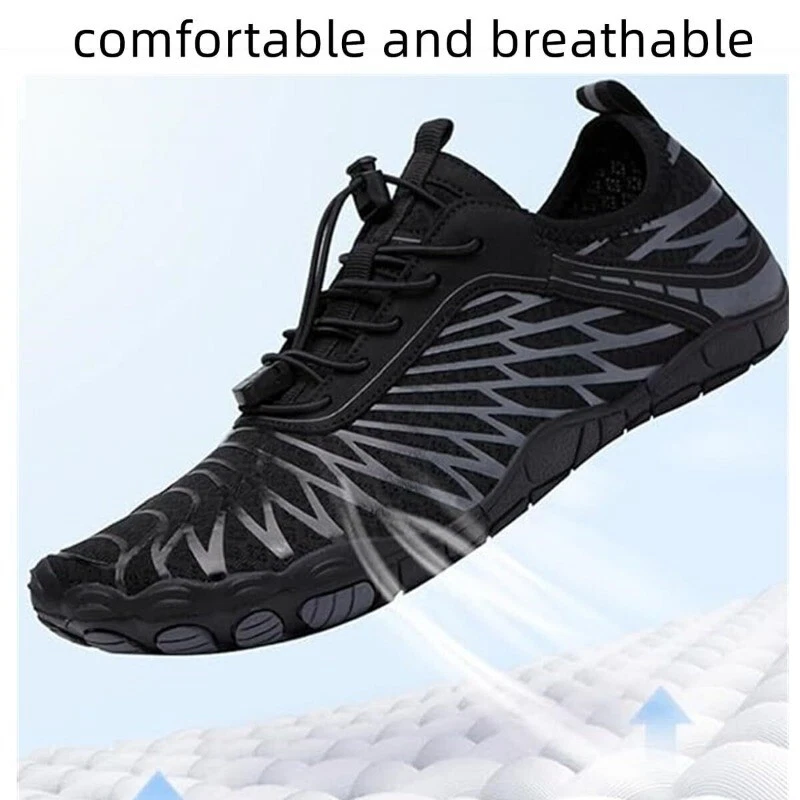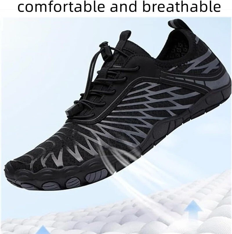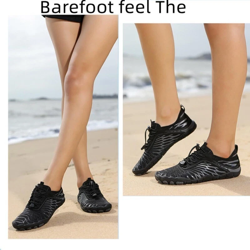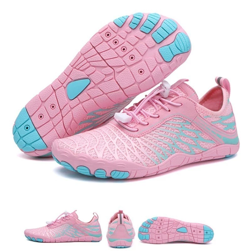 eBay Wide toe design: barefoot feel The Wide Toe Box Combined With The Flexibility Of Barefoot Shoes Allows The Toes To Move And Spread Freely ightweight and breathable:when you are doing a workout or running, The breathable mesh design and insoles can quickly dry and keep your feet away from damp conditions sole Quick dry with drainage: Made with quick dry materials and Integrated Drainage System to allow water and air to move freely making these you can also wear them as water shoes Easy on: Adjustable system allows for an easy slip on entry while maintaining a snug fit Ideal for any activity: Perfect for beach,surf, pool, sailing, boating, kayaking, windsurfing, beach volleyball, long airline flight, The shoe is necessary equipment for vacations Product Description Specification: Name:Barefoot Shoes Color:Gray/Blue/Black/Pink/White Size:36/37/38/39/40/41/42 Package Includes: 1 Pair * Barefoot Shoes