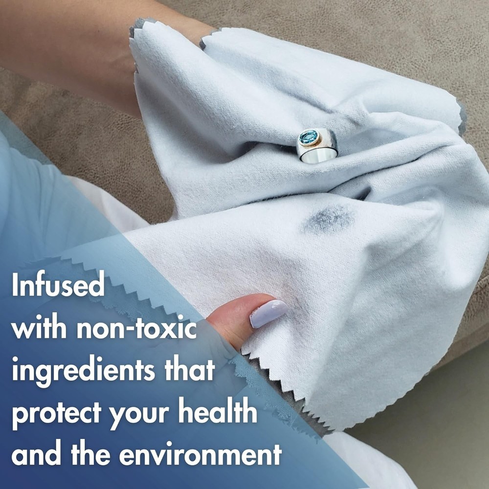 Pro Size Polishing Cleaning Cloth Pure Cotton Made in USA for Gold, Silver, and Platinum Jewelry, Eco Friendly Large Cleaner Cloth 11 x 14 in. Keeps Jewelry Clean and Shiny Product Details Product Dimensions: 14 x 11 x 0.04 inches Item model number: J1114GW Is Discontinued By Manufacturer: No Item Weight: 0.64 ounces Manufacturer: Mayflower Products LLC Scent: Unscented Brand: Mayflower Products Sheet Count: 2 Package Information: Bag Item Form: rectangular SHINES AND PROTECTS: This jewelry polishing cloth cleans, shines, and protects gold (14 k and 18 K), silver, platinum jewelry, coins, and other fine valuables. It's a tarnish remover cloth that restores the original brilliance in metals, prevents new tarnishes and gives jewelry a layer of protection. VALUE. It has three uses: silver polishing cloth, gold polishing cloth, and platinum polishing cloth (great for diamond rings) SAFE for your health and the environment. The inner part of the jewelry cleaner cloth is treated with non toxic ingredients that keep your health safe and protect the environment TWO-STEP SYSTEM: The jewelry cloth has the cleaning ingredients dry-impregnated in the white flannel to clean and polish effectively. Each side of the white cloth has cleaning properties. The untreated gray flannel adds a final shine. Both flannels are made of ultra-soft cotton for gentle cleaning of your valuables. REUSABLE: The polishing cloth can be used multiple times. The life of the cloth depends on the size and number of items cleaned. It can last a long time and should never be washed. PRO SIZE: The size of this large jewelry cleaning cloth is designed for easy polishing of silverware, watches, silver musical instruments, antiques, and big pieces of jewelry. It also provides a better handle for small pieces such as silver rings, coins, medals, and more. The size of each Pro Size jewelry cloth opened is 11 x 14 inches