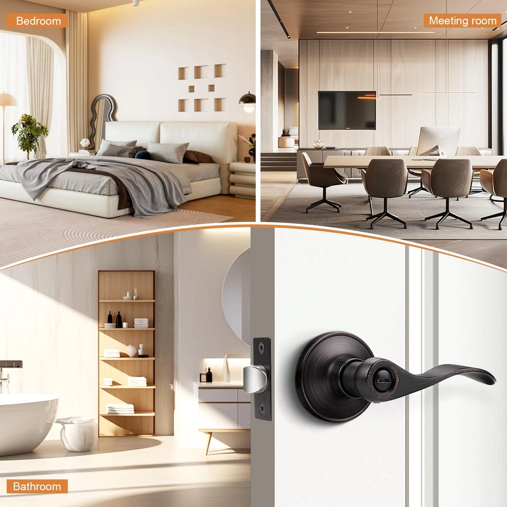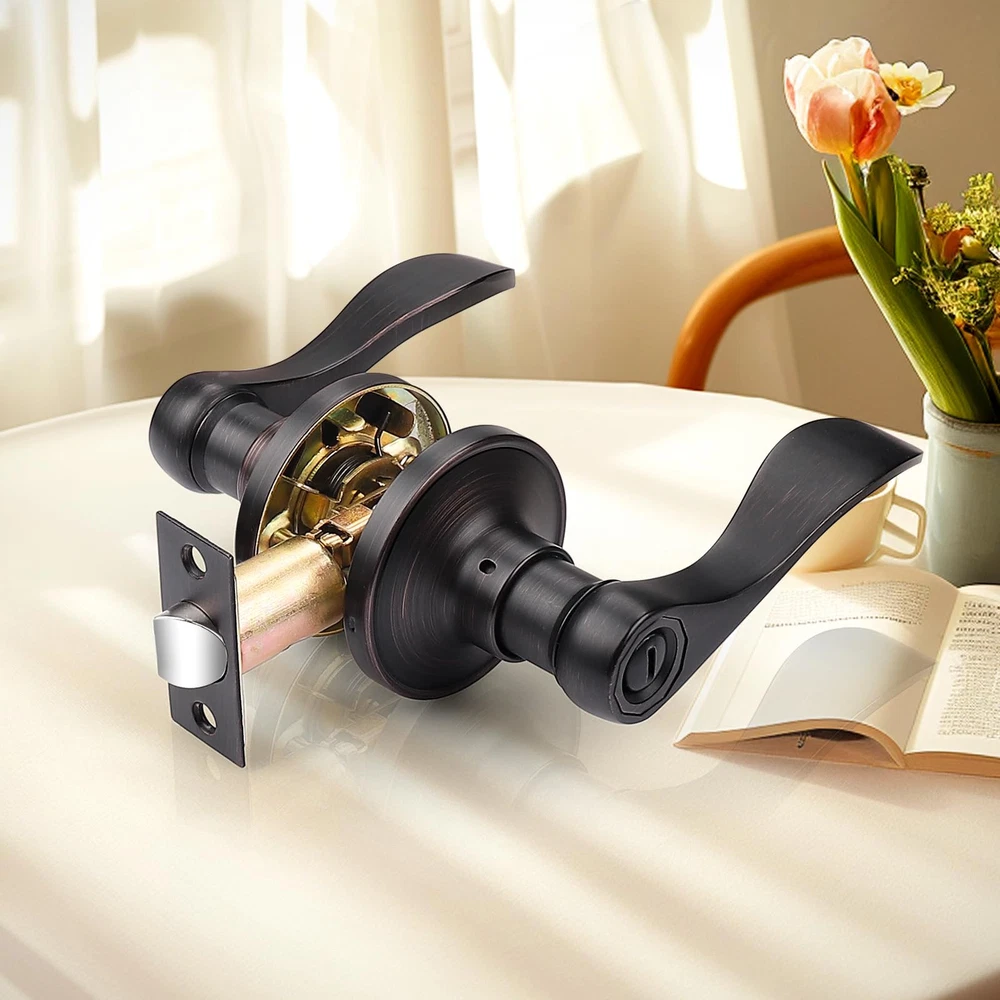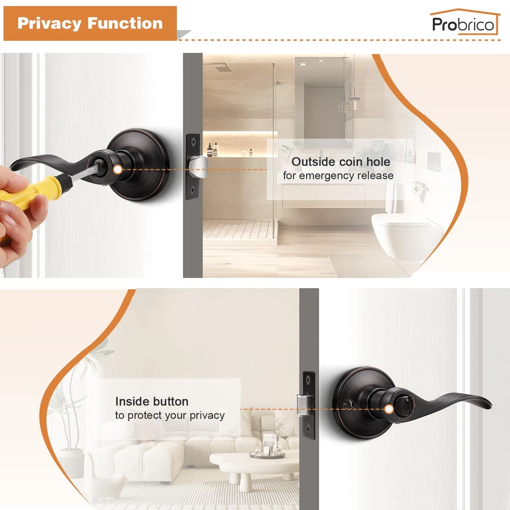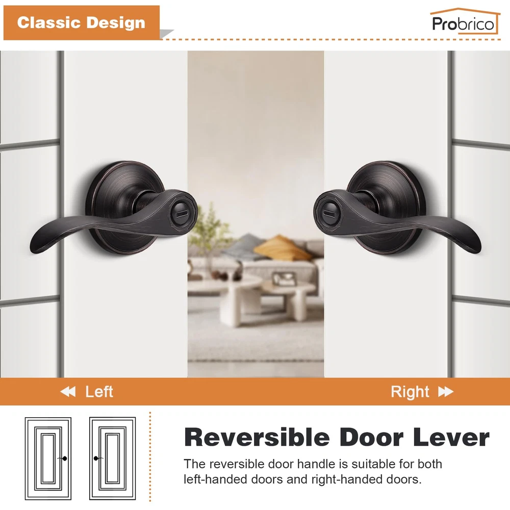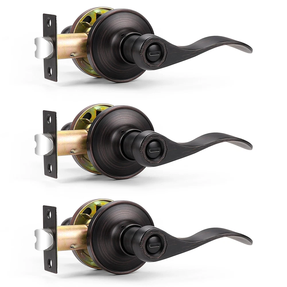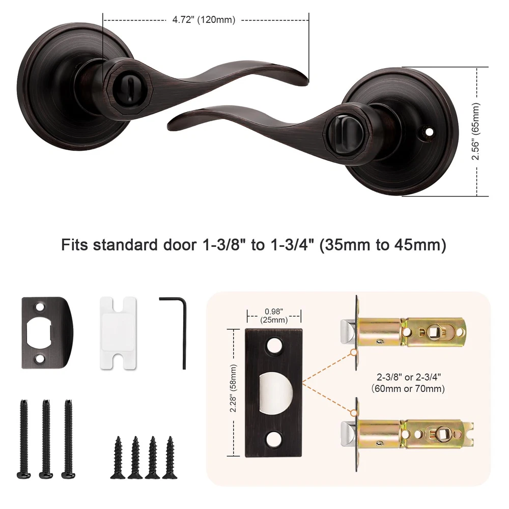 3 Pack per package(for 3 doors) : privacy door kevers with classic bronze finish for bathroom or bedroom door. Confirm with ANSI Grade 3, Exceeds 200,000 cycles. Privacy Function(without keys) : The latch bolt can be locked by thumb turn button on the inside knob. An emergency release tool can unlock the door from the outside Steel Adjustable Latch : It has adjustable universal latch - 2-3/8" or 2-3/4", Fits doors 1-1/4 inch to 1-3/4 inch Easy Intallation : Easy to install with all accessories included. The easy installation makes for a one-person project. It fits both right and left handled doors. Dimensions : Lever Length: 4.7"(120mm) , Rosette Diameter: 2.56"(65mm). Note : The square plate of the latch is unremovable
