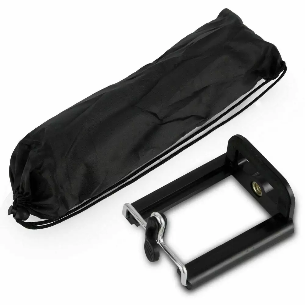 Features: -Portable and flexible, ideal for outdoor, travel, and timer shoots. -Built-in bubble level, making your tripod perfectly leveled. -Convenient grip handle moves the head at different angles. -Compatible with all kinds of smartphones. -360-degree horizontal and 90-degree vertical swivel with 3-way head. -With grip for adjusting head position. -Solid Safety 4 Section Aluminum Legs with non-slip rubber feet. -The tripod is lightweight and mobile with its aluminum alloy legs. -Lightweight and compact, easy to install and operate. Specification: Product type: Tripod Stand. Color: Silver&Black Material: Aluminum. Screw Size: 1/4" Maximum Load: 5.5lb. Maximum Height: 3.77ft/46 inches. Folded Length: 1.13ft/14 inches. Head Type: 360-degree Swivel Fluid Head. Leg Lock Type: Self-aligning metal quick-flip leg locks. Weight: 15.1 oz Package Included: 1 x Tripod Stand. 1 x Universal Holder for Tripod. 1 x Nylon Carry Bag