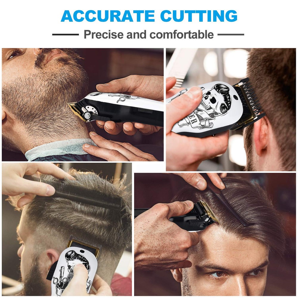 ✂️Hair Clipper Kit:This beard trimmer men set contains a professional hair clipper and a detail trimmer. Hair trimmer is suitable for trimming inch heads, patterns, etc. It can be used as a home and hair salon hair clipper. Suitable for men's, women's and children's haircuts, it has a wide range of uses and is perfect as a holiday gift. 🎁Low Noise and Continuous Standby:The haircut machine is quiet, only 60 decibels, quieter than many other models. This professional hair trimmer has a speed of 6000 rpm and is suitable for cutting dry and wet hair. 💝Fine Adjustment Bar and Guided Combing:The fine adjustment lever (1-3mm) of the Y4 hair clipper can easily adjust the cutting length. 6 standard length limit combs of 1.5 mm, 3 mm, 4.5 mm, 6 mm, 9 mm, 13 mm (1/16”, 3/16”, 1/8”, 1/4”, 3/8” 1/2”). The T9 detailed trimmer is equipped with 4 guide combs (1.5 mm, 3 mm, 6 mm, 9 mm). You can cut the size and hairstyle you want by using the right comb. 💝Carbon Steel Blades:Replaceable carbon steel blades, properly aligned, cut smoothly and cut quickly. For a smooth clipper cut, use a brush to clean the blade before cutting, and use lube to maintain the blade regularly. 🎁LED indicator:2-color LED indicator When the blue light is on during operation, it means that it is being connected for charging or fully charged. A red light means the battery is below 15%. A 6.5-foot power cord provides wired use. The battery lasts for 4 hours wirelessly after a 3-hour charge.