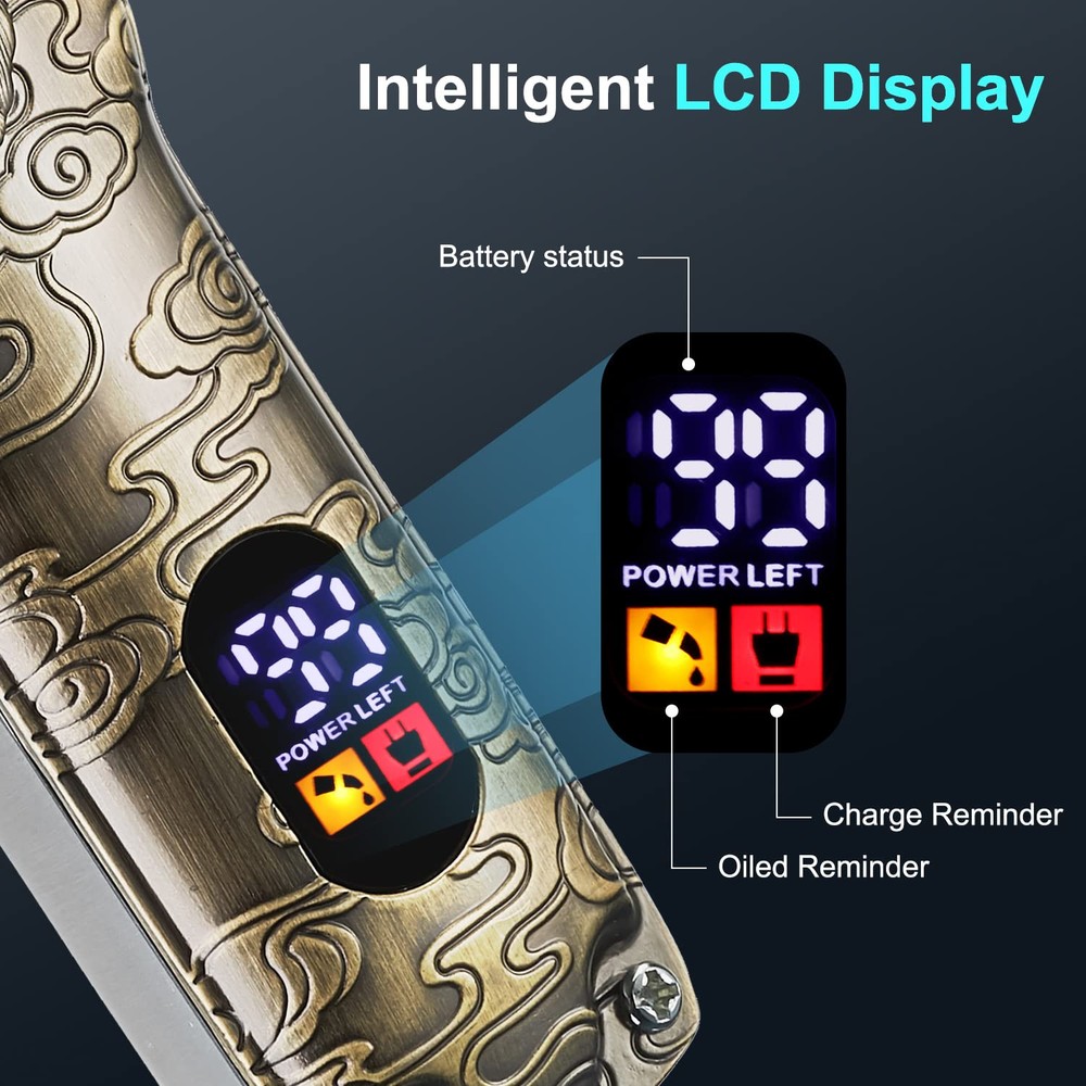[Professional Hair Clipper & Trimmer Set of 3]: This hair cutting grooming kit contains a hair clipper, t-blade trimmer, 2 in 1 nose trimmer/beard trimmer, excellent for hair cutting and body grooming. Whether you use it at home or salon, this hair clippers set can definitely meet your daily needs. [Smart LCD Screen]: All of this beard trimmer set is equipped with LCD digital screen, it can shows remaining power, charging status and lubrication reminder indicator. No need to worry about the machine running out of electricity during use. [Sharp High Carbon Steel Blade]: This cordless clippers for hair cutting offers an easy way to cut your hair. Both hair clipper and hair trimmer adopts precision high carbon steel blade to ensure that you do not pull your hair or beard, so you can easily and safely trim your hair. [Excellent Battery Performance]: Built-in rechargeable large capacity premium and safer Lithium Ion battery cell, offers up to 180 minutes of running time with charging 3 hours for the hair clipper, offers up to 120 minutes of running time with charging 1 hour for the t-blade hair trimmer, offers up to 90 minutes of running time with charging 1.5 hours for the nose trimmer. [Strong & Quiet Rotary Motor]: The rotation speed of this professional hair clipper is 6500rpm, 10W powerful motor provides a of superior performance. The noise when working is only 58db, not only suitable for men but also children.