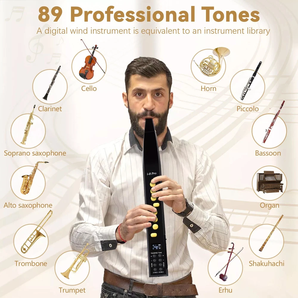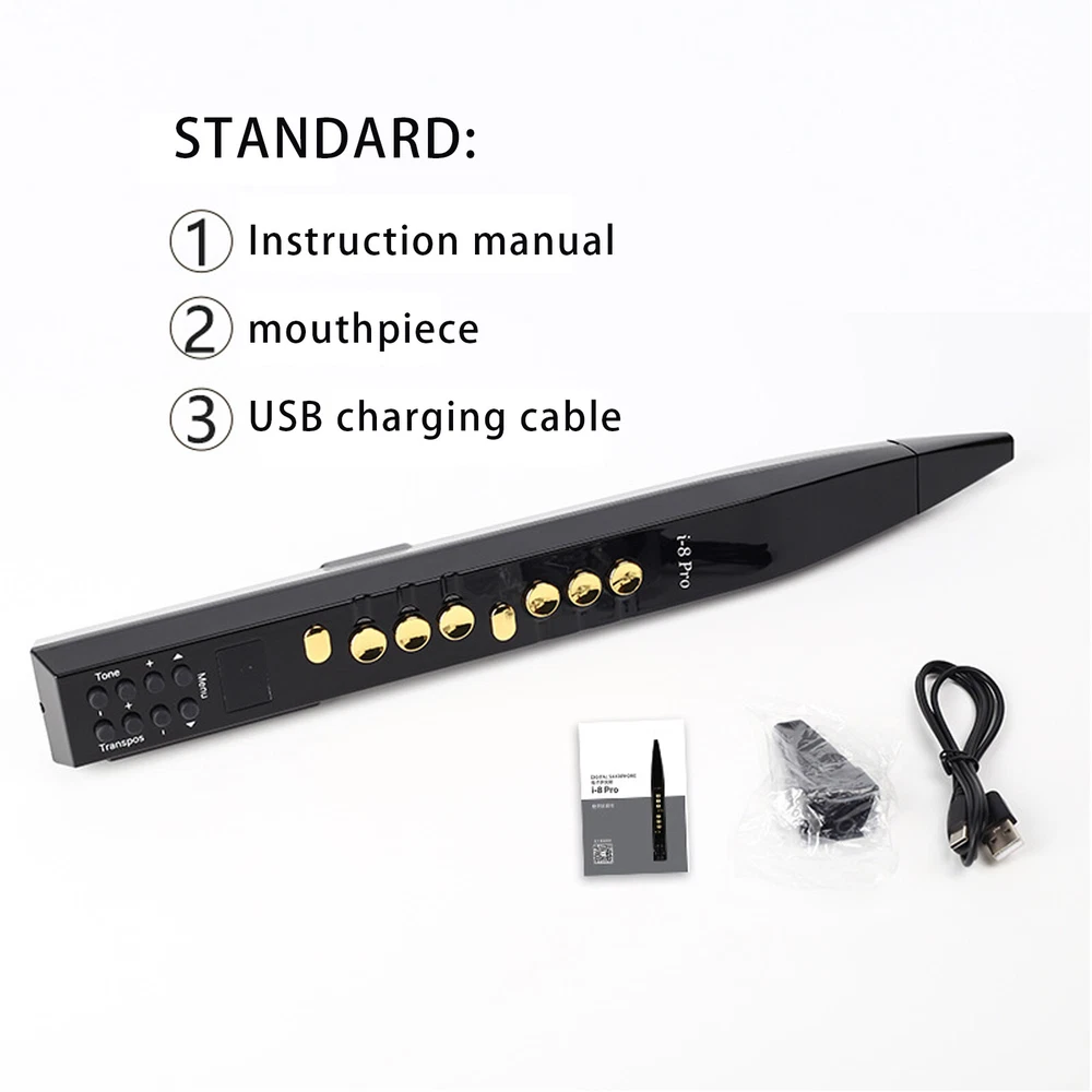 UPC: Does Not Apply Item Height: 1.6 Chorus Range: 0-10 Tonality: 12 in total (C,#C,D,bE,E,F,#F,G,bA,A,bB,B) Connector Type: Type C Type of Keys: Saxophone compatible keyboard layout Type: Wind Synthesizer Sound Source: Original Sound Sampling, Synthetic Tone Item Width: 2 MPN: Does not apply Battery type: Lithium Polymer Battery Capacity: 2400mAh Features: Digital Wind Instrument Model: i8 pro Color: Black Display: LCD Item Length: 17.7 Volume Range: 0-15 Analog/Digital: Digital Manufacturer: INGPARTNER Instrument Key: C,#C,D,bE,E,F,#F,G,bA,A,bB,B gtin13: Does Not Apply Item Weight: 1 lb Tone: 89 Kinds Finish Type: Polished Material: Stainless Steel, Plastic Blowing Range: 0-10 Charging Port: Type-C Charging: Type-C Port Brand: Unbrand Reverb Range: 0-10