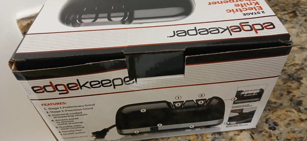 The Edge Products knife sharpener machine is a high-quality electric sharpener made of stainless steel in a sleek black color. This electric sharpener is designed to quickly and efficiently sharpen knives, making it a convenient addition to any kitchen. Made in China, this knife sharpener machine offers a easy and efficient way to maintain the sharpness of your kitchen knives.