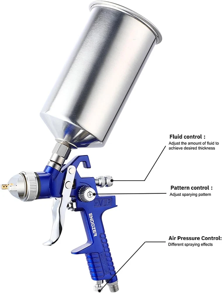Menu Other Items Feedbacks About Us Contact Us Add To Favorites Professional HVLP Gravity Feed Air Spray Gun Set with 1.4 1.7 2.0Mm Nozzles, Paint Gun with 1000Cc Aluminum Cup for Auto Paint, Wall Painting, Base Coatings This spray gun is supplied with a 1000cc gravity feed cup, with 1.4 1.7 2.0mm real stainless steel nozzle and needle. The hvlp spray gun hood is made of brass, wear-resistant and corrosion-resistant, 15 holes design, uniform atomization, excellent effect. 1/4 "NPT inlet and quick adapter of the same specification. Fluid control adjusts the amount of spray paint, pattern control adjusts the fan pattern size, and the air conditioning valve provides the ability to adjust the air flow rate. It is designed to provide uniform spraying and particle size for all types of surface coatings. In the painting process effective paint filter(product contains) recommended to reduce any small pieces of dried paint or pollutant in the fluids to ensure a perfect finish. In addition, this air spray gun case also includes accessories such as air pressure gauge, quick adapter set, etc., Compatible with various usage scenarios. Endozer spray paint gun can be used for various purposes such as furniture repair, mural painting, car painting, painting, arts and crafts, paint coating of industrial products, spray paint of factories, and model making. HVLP air spray gun that is easy to use even for beginners Product Description Item Specification Item model number H827 - Set Part Number H827-Set Style Handheld Power Source Air Powered Color Blue - 1.4/1.7/2.0 Included Components Paint Filter, Air Pressure Gauge, Quick Adapter Set Material Aluminum Country of Origin China Batteries Required? No Hose Length 1.8 Meters Item Weight 2.81 pounds Batteries Included? No Model Name H827 - Set Recommended Uses For Product Painting Special Features Low Pressure, High Volume, Gravity Feed Product Dimensions 5 x 4 x 5 inches Size 1.4/1.7/2.0 1000cc Dimensions Shipping Returns Additional Info Product Dimensions: 4.0 inches x 5.0 inches x 5.0 inches. Weight: 2.81 lb Fast shipping is very important for us. Our standard shipping service is FREE. Your order will be shipped within 1-3 business days upon full payment received. Most items are delivered within 3-5 business days, however, please allow 3-10 business days. We are shipping only to USA. We only ship to the confirmed Paypal address. We reserve the right to cancel any order for any reason at any time. We are not responsible for undeliverable addresses. We offer a 30 day return policy from checkout winning date. Your satisfaction is guaranteed! If for any reason you are unhappy with your item, just return it within 30 days for a full refund, minus shipping cost. Please contact us prior to initiating a return so that we can issue you a refund authorization. Items defective upon receipt must be packaged in their retail packaging as if new and returned with a detailed description of the problem. Return shipping fees are not refundable. We reserve the right to decline any returns if the above guidelines are not followed. All of our items, unless otherwise stated, will only run on 120 volts. Please check to make sure your country complies with these specifications. If you have a problem or question regarding your transaction please contact us before leaving any type of feedback. We will work with you to resolve any problem you may have.
