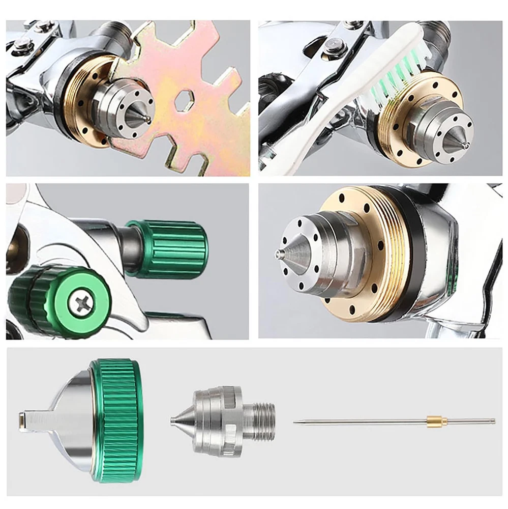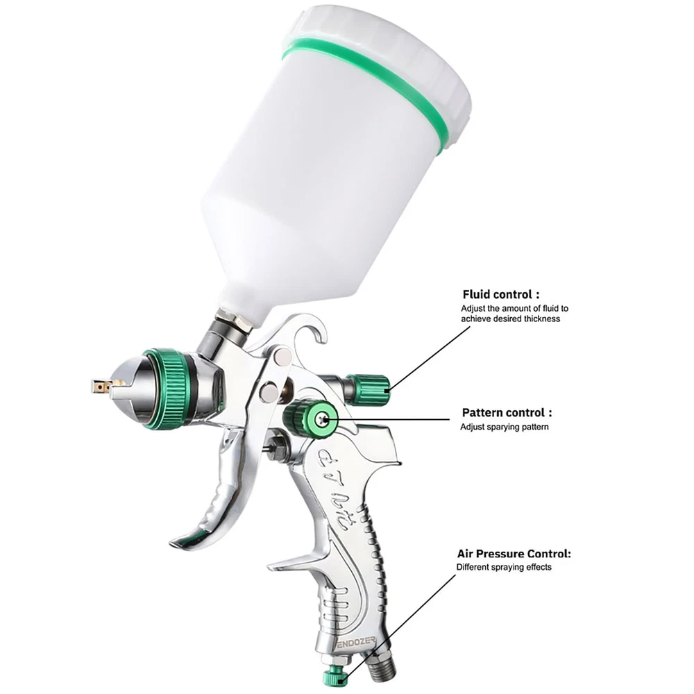 This spray is supplied with a 20 oz. (600 ml) gravity feed cup, with 1.4 1.7 2.0mm real stainless steel nozzle and needle. The hvlp spray hood is made of brass, wear-resistant and corrosion-resistant, 15 holes design, uniform atomization, excellent effect. 1/4 "NPT inlet and quick adapter of the same specification. Fluid control adjusts the amount of spray paint, pattern control adjusts the fan pattern size, and the air conditioning valve provides the ability to adjust the air flow rate. It is designed to provide uniform spraying and particle size for all types of surface coatings. In the painting process effective paint filter(product contains) recommended to reduce any small pieces of dried paint or pollutant in the fluids to ensure a perfect finish. In addition, this air spray case also includes accessories such as air pressure gauge, quick adapter set, etc., with various usage scenarios. spray paint can be used for various purposes such as furniture repair, mural painting, car painting, painting, arts and crafts, paint coating of industrial products, spray paint of factories, and model making. HVLP air spray that is easy to use even for beginners