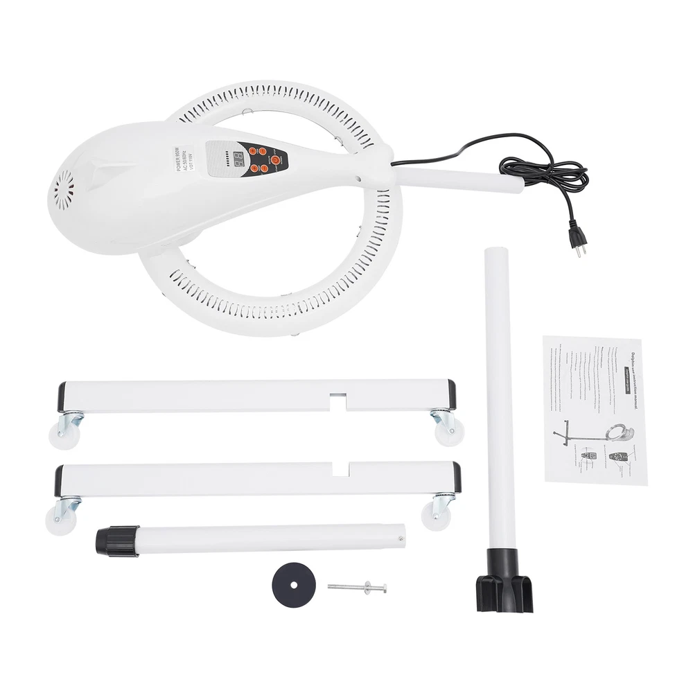Package Included 1*Stand Hair Dryer 1*English Instruction All Accessories for Assembly Description Do you want to change your hairstyle freely and quickly? Do you want a better hair dryer that can shape your hair more effectively? Then you mustn’t miss our product! Our premium stand hair dryer uses a high-power heating tube to achieve rapid heating and save time. At the same time, its multiple-functional use can meet customers' daily styling needs. This beautiful and practical hair steamer is your ideal choice. Professional Stand Salon Infrared Hair Dryer Adjustable With Wheels Perm Styling Description Do you want to change your hairstyle freely and quickly? Do you want a better hair dryer that can shape your hair more effectively? Then you mustn’t miss our product! Our premium stand hair dryer uses a high-power heating tube to achieve rapid heating and save time. At the same time, its multiple-functional use can meet customers' daily styling needs. This beautiful and practical hair steamer is your ideal choice. Key Features Build to Last: Premium aluminum, iron, ABS , and exquisite spray painting and electroplating processes make this product sturdy, wear-resistant, heat-resistant, scratch-resistant, corrosion-resistant, high-temperature, and deformation- resistant , so it can well withstand the test of time. High Efficiency: The high-power quartz heating element (950W) uses infrared technology to dry hair rapidly, maintaining moisture and reducing frizz for enhanced client satisfaction. The 360° rotating heating disc transfers heat evenly to the roots of the hair, reducing customer waiting time. Besides, it can help customers promote blood circulation, accelerate metabolism, and make hair elastic. Free Adjustment: The product height can be adjusted by the black snap within the range of 61.81-70.08 inches to meet the needs of people of different heights, providing a comprehensive angle and better hair care effects. In addition, the time(0-60 minutes) and temperature are adjustable to suit different hair types, locking in moisture and nutrients. Flexible Movement: The casters can rotate 360 °, making it easy for you to move freely and flexibly. They also prevent hair from getting tangled, improving usability. Easy to Clean: The smooth surface and simple structure make it easy to clean, so you just need to gently wipe it with a cloth. Simple Installation: A complete set of accessories, a simple structure, and a detailed instruction can help you complete the installation in a short time. Beautiful Appearance: The classic white color and smooth surface make it look very neat and beautiful, suitable for various decorative styles. Buy with Confidence: We stand behind all our guests and look forward to assisting you with your purchase. It is our pleasure to answer your confusion and questions. The end of the story between us is not "we sell and you buy". Details Stable Base: The sturdy support rod and large four-legged base ensure good stability, making it safer to use. Extended Power Cable: The 8.2ft long power cord provides you with more usage locations and reduces usage restrictions. Heat Dissipation Holes: It comes with cooling holes to help the machine dissipate heat promptly, ensuring safety and extending service life. Application It can be used in barbershops, beauty salons, and other places, and is suitable for hair drying, cold perm, oil baking, care, hair dyeing, heating, styling, and so on. Specification Color: White Material: Aluminum, Iron, ABS Process: Spray Painting, Electroplating Mount Type: Floor Stand Technology: Infrared Heating Pipe Type: Quartz Screen Type: LCD Power Source: Corded Electric Plug Type: US Standard Voltage: 110V Power: 950W Frequency: 50/60Hz Time Control Range: 0-60mins Power Cable Length: 2.5m/8.2ft Number of Wheels: 4 Heating Head Diameter: 47cm/18.5in Base Length: 60cm/23.62in Height Adjustment Range: 157-178cm/61.81-70.08in Package Size: 53*52*34.5cm/20.87*20.47*13.58in Gross Weight: 7kg/15.43 lbs Net Weight: 6.65kg/14.66 lbs Package Included 1* Stand Hair Dryer 1*English Instruction All Accessories for Assembly Notes Please ensure complete discharge of water when cleaning the product. Please read the manual carefully and pay attention to the safety precautions inside. External collision should be avoided. Please allow the slight color difference caused by the shooting light and the 1-3cm error due to manual measurement, and make sure you do not mind before ordering. Payment Delivery details Terms of sales About us Contact us Payment We accept ebay payment 。 Fees such as import duties, taxes are not included in the item price or shipping costs. These charges are the buyer's responsibility. Delivery details Shipping: 2-9 working days to: USA Terms of sales We maintain high standards of excellence and strive for hundred percent customer satisfaction. Feedback is very important to us. We hope that you contact us immediately before you give neutral or negative feedback, so that we can address your concerns. It is impossible to address issues if we do not know about them! About us Your satis faction is our ultimate goal. We work hard to earn your trust and future business. Our certified technicians have tested each item before shipping. The unit comes with 1 year limited warranty on all manufacturing defects. a) If you receive a defective item, you may return it or ask for a discount. Please contact us within 14 days after you receive the package. b) What you returned must be intact and in its original packaging as re? u. Customer is responsible for shipping costs of the returned item. c) We will cover the cost of shipping back t with the shipping rate indicated in the registration page. We will send you a new unit or refund the full payment you paid. Thank you. Contact us Business Hour Business Hour: Monday To Friday: 8:30 AM to 5:00 PM (Beijing China time) Due to time zones, our reply to your questions may not be immediately. But within above work