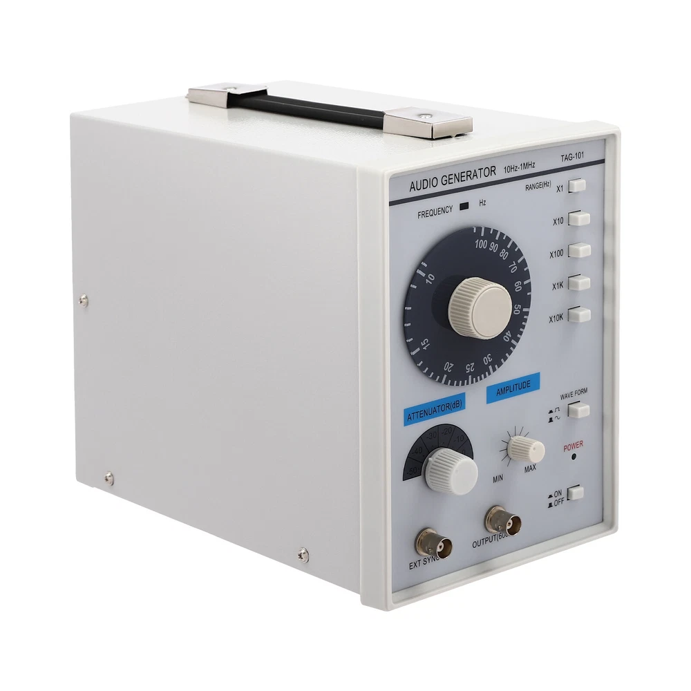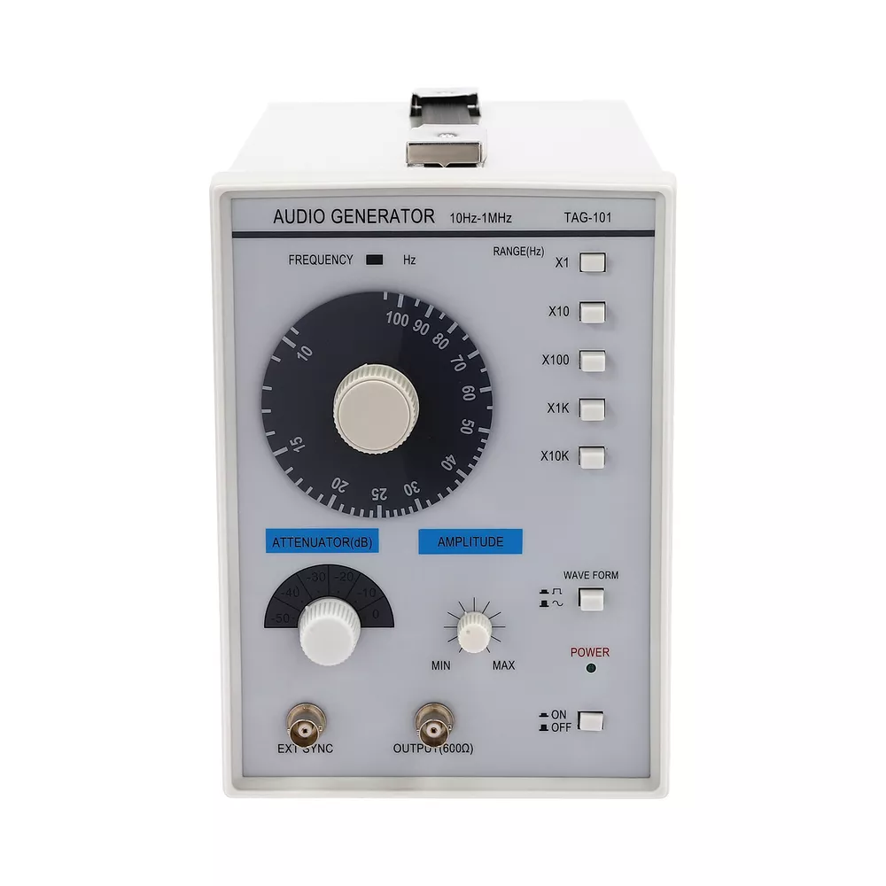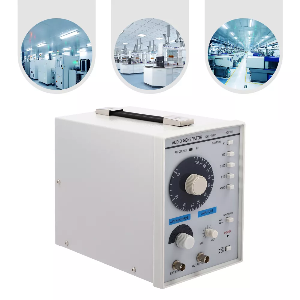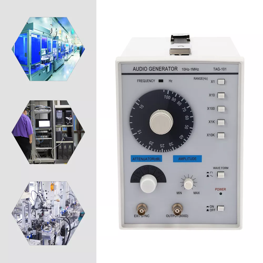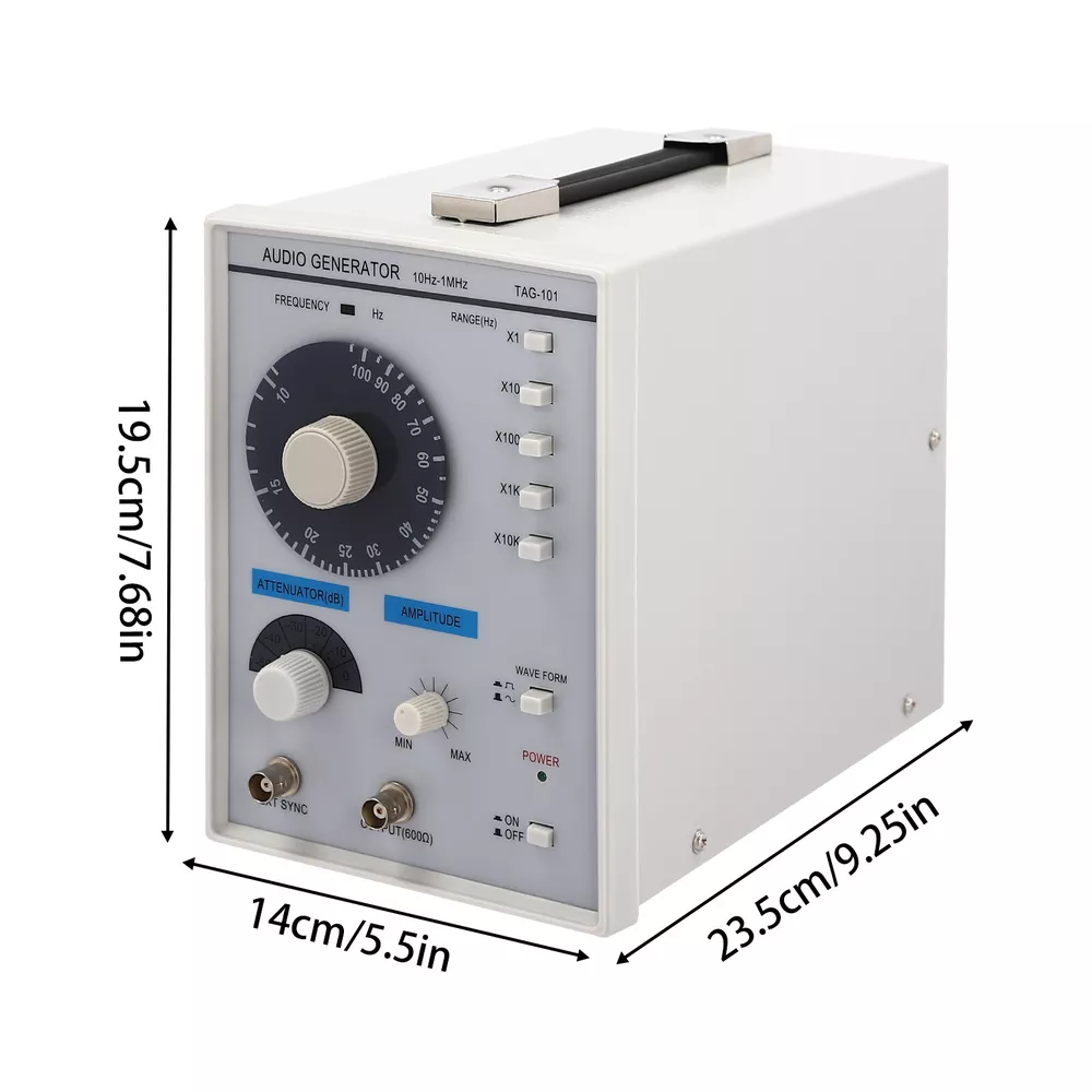 Application It is an ideal instrument for electronic engineering, laboratories, production lines, teaching, and research. Specifications Model: TAG-101 Material: Metal, Plastic Color: White Shape: Rectangular Style: Modern Power Source: Corded Electric Plug Standard: US Standard Power Supply: AC 110V (50/60 Hz), 8W Frequency Range: 10 Hz~1 MHz Number of Measurement Ranges: 5 Accuracy: ±5% of Full Scale Output Impedance: 600Ω Output Control: 0dB, -10dB, -20dB, -30dB, -40dB, -50dB (Fine-tunable) Sine Wave Output Output Voltage: 5~6V RMS Distortion: 500 Hz~50 kHz ≤ 0.05% 50 Hz~500 kHz ≤ 0.5% Output Smoothness: ±1.5 dB for 1 Reference Square Wave Output Range: 10 Hz~1 MHZ Output Level: 10 V Peak Rise Time: 0.5 μs Professional Low-frequency Upgraded Signal Generator, High Precision Function **Description of yybshop02** Description This low-frequency signal generator is a cutting-edge, precision-engineered device designed to meet the demanding requirements of electronic testing and development. With its advanced features and superior performance, this product stands out as a top-tier solution for professionals in various industries. Key Features High-quality Material: The product is made of metal and plastic, which are hard, wear-resistant, impact-resistant, and corrosion-resistant, ensuring a long service life. Exceptional Frequency Accuracy: The reliable circuit system ensures high stability, unparalleled frequency accuracy (±5% of full scale), and extremely low distortion rate, ensuring precise waveform generation for a wide range of applications. 6-stage Output Attenuator: The low-frequency signal generator attenuates from 0dB to -50dB in 10dB increments (fine-tunable) to help you test signals that can be reduced in power without significantly distorting their waveforms. Dual Output Waveforms: Equipped with the ability to produce sine and square dual output waveforms, the product offers versatility to accommodate diverse testing needs. User-friendly Design: Featuring intuitive and user-friendly controlling knobs and precise scale, this product enables effortless operation and seamless adjustment of signal parameters. Wide Frequency Range: This low-frequency signal generator has a wide frequency range (10 Hz~1 MHz), which is divided into 5 measurement ranges, allowing users to generate signals across low frequencies with utmost flexibility and control. Compact and Lightweight: The compact size (9.25*5.5*7.68 in), lightweight (4.4 lbs), and an elastic carrying handle allow you to carry it to the desired testing locations. Easy to Clean: The surface of this product is smooth and flat, which is easy to clean. You just need to wipe it with a dry rag. Guaranteed Customer Service: We stand behind all our guests and look forward to assisting you with your purchase. It is our pleasure to answer your confusion and questions. The end of the story between us is not "we sell and you buy". Details Indicator Light: It visually reminds you of the working status of the low-frequency signal generator. Long Power Cord: The 4ft long power cord reduces usage restrictions and allows for easy placement. Application It is an ideal instrument for electronic engineering, laboratories, production lines, teaching, and research. Specifications Model: TAG-101 Material: Metal, Plastic Color: White Shape: Rectangular Style: Modern Power Source: Corded Electric Plug Standard: US Standard Power Supply: AC 110V (50/60 Hz), 8W Frequency Range: 10 Hz~1 MHz Number of Measurement Ranges: 5 Accuracy: ±5% of Full Scale Output Impedance: 600Ω Output Control: 0dB, -10dB, -20dB, -30dB, -40dB, -50dB (Fine-tunable) Sine Wave Output Output Voltage: 5~6V RMS Distortion: 500 Hz~50 kHz ≤ 0.05% 50 Hz~500 kHz ≤ 0.5% Output Smoothness: ±1.5 dB for 1 Reference Square Wave Output Range: 10 Hz~1 MHZ Output Level: 10 V Peak Rise Time: 0.5 μs Synchronization Performance Range: Each 1V Output Voltage Can Change The Oscillation Frequency by 1% Input Impedance: 10 KΩ Gross Weight: 2.9kg/6.4lbs Net Weight: 2kg/4.4lbs Power Cord Length: 1.2m/4ft Product Size: 23.5*14*19.5cm/9.25*5.5*7.68in Package Size: 32*30*21cm/12.6*11.8*8.3in Package Included 1* Low-frequency Signal Generator 1* Power Cord 1* BNC Output Cable 1* English Manual Notes Please read the manual completely before installation and use, and pay particular attention to the safety instructions included. Please allow the slight color difference caused by the shooting light and 1-3cm error due to manual measurement, and make sure you do not mind before you order. Payment Delivery details Terms of sales About us Contact us Payment We accept ebay payment 。 Fees such as import duties, taxes are not included in the item price or shipping costs. These charges are the buyer's responsibility. Delivery details Shipping: 2-9 working days to: USA Terms of sales We maintain high standards of excellence and strive for hundred percent customer satisfaction. Feedback is very important to us. We hope that you contact us immediately before you give neutral or negative feedback, so that we can address your concerns. It is impossible to address issues if we do not know about them! About us Your satis faction is our ultimate goal. We work hard to earn your trust and future business. Our certified technicians have tested each item before shipping. The unit comes with 1 year limited warranty on all manufacturing defects. a) If you receive a defective item, you may return it or ask for a discount. Please contact us within 14 days after you receive the package. b) What you returned must be intact and in its original packaging as re? u. Customer is responsible for shipping costs of the returned item. c) We will cover the cost of shipping back t with the shipping rate indicated in the registration page. We will send you a new unit or refund the full payment you paid. Thank you. Contact us Business Hour Business Hour: Monday To Friday: 8:30 AM to 5:00 PM (Beijing China time) Due to time zones, our r