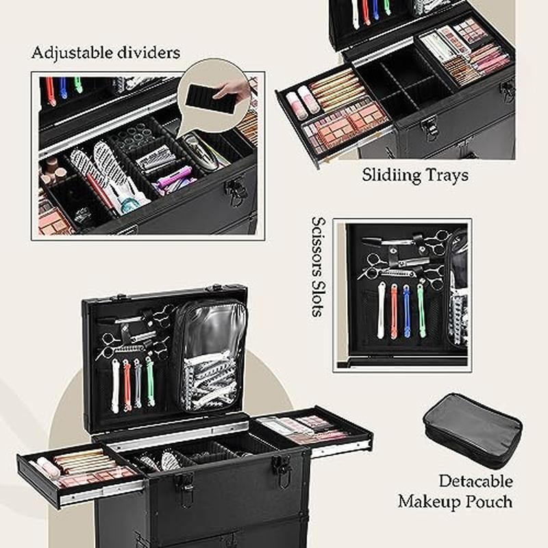 You may also like 14 Qt Aluminum Fry Pot W/Lid Perforated Basket Heavy Duty Handles Frying Cooking 73.79 USD 77.67 USD Free shipping 5% off 2 Piece Wall Mirrors Crush Diamond Decor Hanging Hardware Included Home Accent 41.46 USD 43.64 USD Free shipping 5% off Furnace Filter for Air Conditioner Air Cleaner 1 Count MERV 11 Healthy White US 64.08 USD 67.45 USD Free shipping 5% off Crystal Clear Glass Kettle Electric Soft Open Lid Auto Shut Off 1800W BPA Free 111.43 USD 117.3 USD Free shipping 5% off Turbocharged Twin Size Truck Car Bed Working Headlights Built-In Storage Plastic 385.3 USD 405.58 USD Free shipping 5% off Dog Agility Set Training Exercise Jump Tunnel Weave Poles Portable Equipment New 86.81 USD 91.38 USD Free shipping 5% off Folding Step Ladder W/ Tool Platform Anti-Slip Pedal 500lbs Lightweight Steel US 75.07 USD 79.02 USD Free shipping 5% off Portable CD Player Boombox FM Radio Bluetooth USB Remote Control Disco Light New 45.62 USD 48.02 USD Free shipping 5% off Portable CD Boombox Bluetooth FM Radio USB AUX Input Music Player System Blue 47.32 USD 49.81 USD Free shipping 5% off Adjustable Bookshelf W/Doors Hidden Storage Office Library Retro Design Home New 246.44 USD 259.41 USD Free shipping 5% off 10ft Portable Wheelchair Ramp Folding Aluminum Non-Slip 800lbs Heavy Duty Access 434.69 USD 457.57 USD Free shipping 5% off Adjustable Chrome Wire Shelving Unit 4 Tier Storage Rack 72 x 30 x 18 In Durable 238.5 USD Free shipping Multifunctional Cosmetics Trolley Case: Embrace convenient makeup organizing with our hairstylist rolling makeup case. This makeup rolling trolley can be your cosmetology studio on wheels, a travel companion for makeup artists, and a chic home organizer, all rolled into one. Redefine the way you approach beauty and organization. Convertible Makeup Station: This makeup rolling case is a Convertible Makeup Station, the ultimate answer to your cosmetic needs. With 2 sliding flat trays for a temporary worktop, 4 large drawers set transformed into shelves, and 2 side doors providing steady balance, this makeup case is your versatile solution for seamless beauty sessions. Versatile Storage Compartments: The lid is equipped with scissor slots and a detachable pouch housing the accessories, the upper trays suits your flat palette collections or styling tools. Under the trays is an adjustable storage compartment which is perfect for nail polishes, lipsticks, brushes, or hair removers. In the lower part's 4-shelf drawer set holds, sprays, curling irons, hair dryers, or other supplies. While the side doors' pockets keep your mascaras, eyeliners, and combs accessible. Effortless Mobility Redefined: Experience true Portability with the 6-Wheel rolling makeup case. The telescopic handle and innovative 6-wheel design ensure smooth navigation, while the brakes on the wheels could hold it standing still. With locks that safeguard your cosmetics and tools, this case is about giving you the freedom to carry your beauty world wherever you go, securely and stylishly. Durable Quality: This makeup artist travel case is built with elevated endurance. Crafted from enhanced aluminum alloy and fortified with protective metal corners, it's a guardian of your beauty treasures. The surface of the case is effortless to clean; it maintains its professional allure, ensuring a lasting professional presentation. Main Case Dimensions: 28 inches * 11. 8 inches * 15. 7 inches. You may also like Cordless 40V Hedge Trimmer 24 In Dual Action Blades Lithium Ion Battery Charger 173.46 USD 182.59 USD Free shipping 5% off Multipurpose Adjustable Standing Desk Foldable Computer Table W/ Storage Shelf 164.25 USD 172.89 USD Free shipping 5% off Easy Incline Pool Deck Ladder Above Ground Pools W/Adjustable Handrails 48-54 In 197.1 USD 207.47 USD Free shipping 5% off Handmade Seagrass Storage Basket Organizing Blankets Toys Laundry Decorative New 170.13 USD 179.08 USD Free shipping 5% off 3 In 1 Fire Pit BBQ Grill Table Outdoor Heavy Duty W/ Waterproof Poker Cover New 164.25 USD 172.89 USD Free shipping 5% off 20 Pc Stubby Combination Wrench Set SAE Metric Alloy Steel Off-Corner Design New 89.34 USD 94.04 USD Free shipping 5% off 33x19 In Stainless Steel Drop-In Kitchen Sink Deep Dual Bowl Mobile Homes New 174.82 USD 184.02 USD Free shipping 5% off X-Large Pet Food Storage Container W/ Airtight Seal Magnetic Scoop Wheels New 148.19 USD 211.19 USD Free shipping 30% off Adjustable Wire Shelving 4 Tier Storage Unit Durable Chrome 72 x 30 x 18 In New 238.5 USD Free shipping Airtight Pet Food Storage Container W/ Magnetic Scoop Locking Handle Wheels New 148.19 USD 211.19 USD Free shipping 30% off Adjustable Chrome Wire Shelving Unit 4 Tier Storage Rack 72 x 30 x 18 In Durable 238.5 USD Free shipping Two Door Portable Dog Crate Air Transport Easy Clean Hold 50 Lbs Pets Medium New 175.98 USD 185.24 USD Free shipping 5% off
