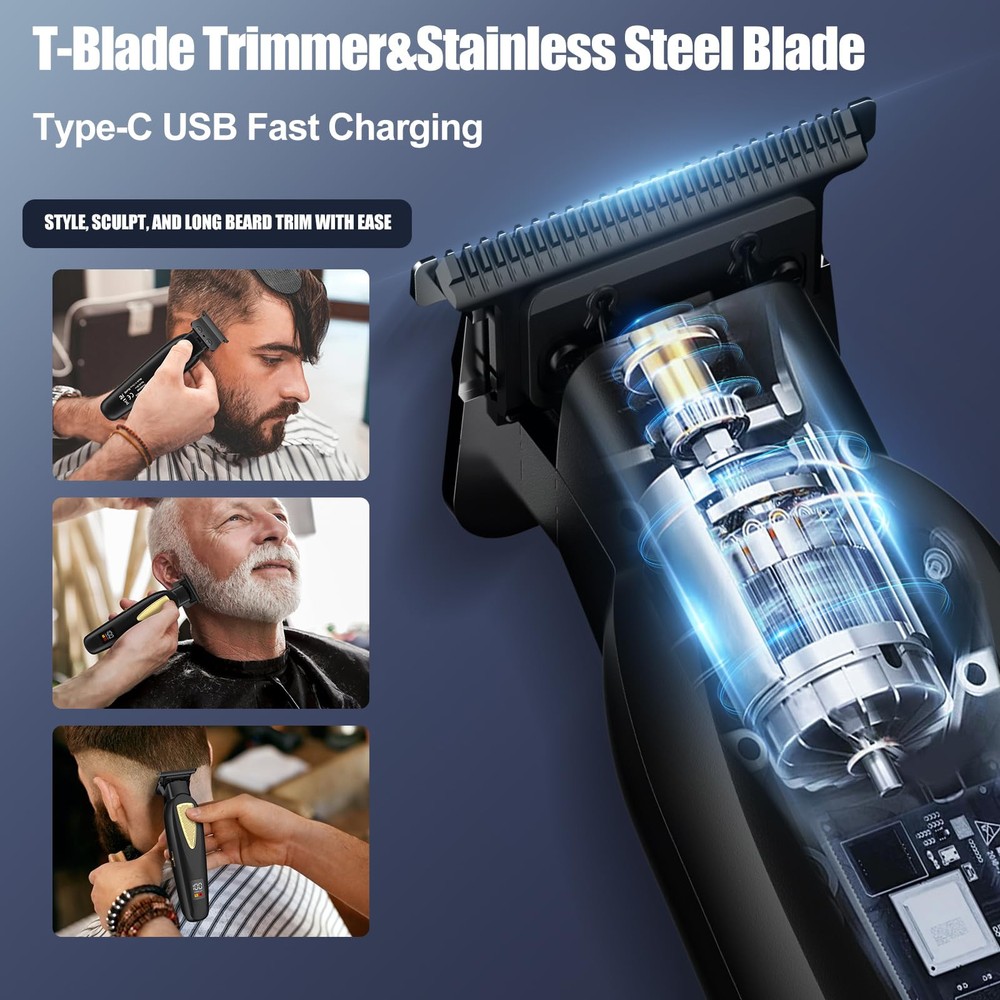 This trimmer set is a game-changer! The T-blade gives ultra-sharp precision, the cordless design is so convenient, and the LED screen keeps track of battery life effortlessly. Cuts like a pro, feels great in hand, and the 3-in-1 versatility saves time and space. Perfect for fast, smooth grooming at home—well worth it!