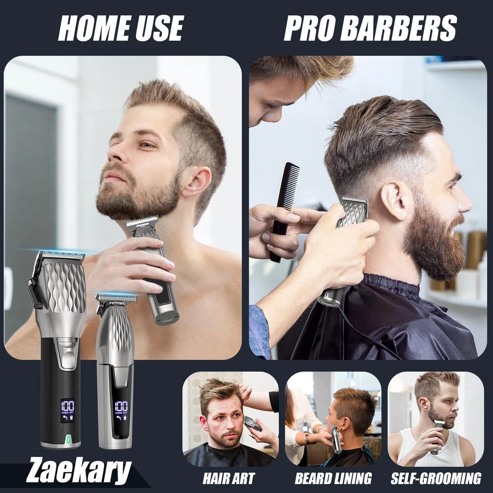 Men's Professional Cordless Hair Clipper & T-Blade Trimmer Set Rechargeable