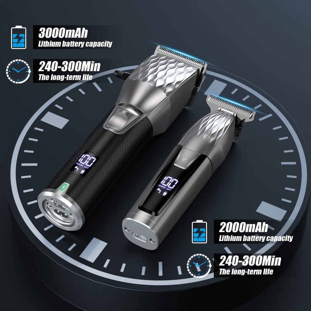 Professional Hair Clipper Set: The professional hair clipper set is developed by , a brand dedicated to the development of high-quality hair clippers, which integrates haircutting and styling. The large size is a professional hair clipper with adjustable blades that handle all hair types and lengths with ease. The micro trimmer is a zero-gap trimmer, perfect for precise beard and sideburn trimming. Professional Mate Clipper Trimmer: The hair clipper and trimmer is specially designed for haircutting. The cutter head is made of alloy. The edge is hard and sharp, not easy to break, and it can be automatically ground. Suitale for thick, wet, rough, and complicated hair style shaping, and can also be used for baby hair care. When running the volume is less than 45 decibels, which can give the baby a haircut in sleep. Large Capacity Battery: Professional hair clipper with a rechargeable 3000mAh strong battery, 3 hours of charging can provide up to 240 minutes of running time. The beard trimmer is built in a 2000mAh battery that can run for at least 240 minutes after 2 hours of full charge. The built-in high-definition LED display allows the hairdresser to quickly check the remaining power, it can solve the situation of sudden power failure during your work. Super Many Professional Accessories: The IDERREST hair clipper kit is equipped with all the accessories you need. The large clipper is equipped with (1.5, 3, 4.5, 6, 10, 13, and16mm) 6 limit combs, and the small sideburn trimmer is equipped with (1, 2, 3mm) 3 limit combs, 1 special cloth for hair cutting, 2 soft cleaning brushes, 2 dedicated USB charging cables and 1 hair comb. The complete configuration makes the set ideal for professional hairdressers and home haircuts. Beauty Salon Set: You only need a set of professional hair clippers, which can perfectly solve everything you need for haircutting. Selected functionally, this suit is suitable for men, women and children. Choose from gifts, the second set is packaged in a new special gift box, you can give it to your family, lover, and friends as a birthday gift.