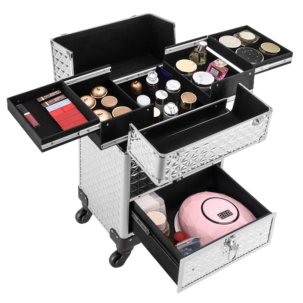 This case is a game-changer for my makeup collection! The smooth wheels and sturdy build make it easy to roll around, and all the compartments keep everything organized. Love how much it holds without being bulky. Perfect for pros or anyone with lots of products!