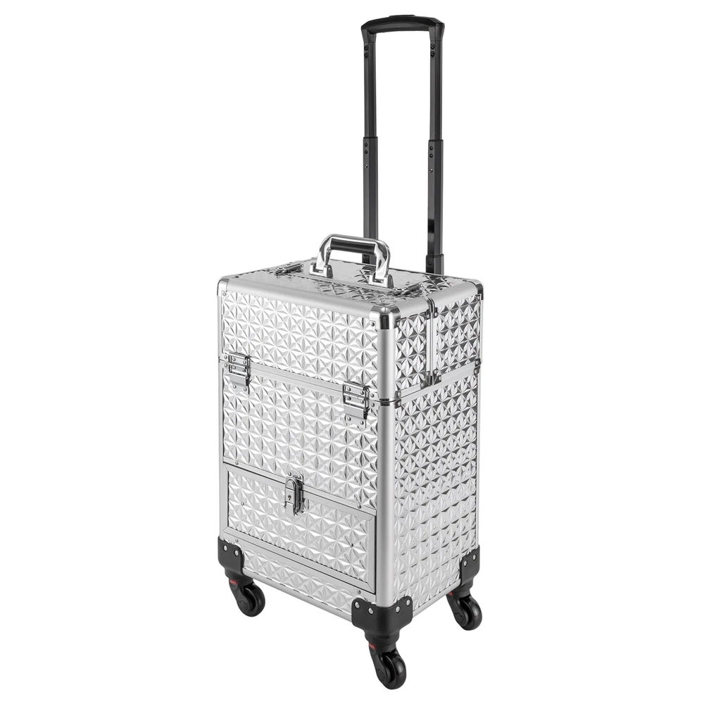 Specifications Material: Aluminum Alloy, ABS, Density Board, and Flannelette Surface Treatment: Indentation Color: Silver Style: Modern Shape: Rectangular Bearing Capacity: About 20kg/44.09lbs Number of Items: 1 Number of Wheels: 4 Gears of Pull Rod: 3 Number of Compartments: 7 Number of Drawers: 1 Net Weight: 5.8kg/12.79lbs Gross Weight: 6.8kg/14.99lbs Product Size: 34*25*47cm/13.4*9.8*18.5inch Package Size: 38*29*54cm/14.96*11.42*21.26inch Length of Pull Rod: About 80cm/31.5inch Rolling Makeup Train Case Professional Cosmetic Trolley Makeup Storage Organizer Rolling Makeup Train Case Professional Cosmetic Trolley Makeup Storage Organizer Application This rolling makeup train case can be widely used by hair stylists, pet groomers, makeup artists, and so on for storing scissors, makeup, jewelry, combs, and other items. In addition, it is also very suitable for you to store tools or daily necessities when you go out. Specifications Material: Aluminum Alloy, ABS, Density Board, and Flannelette Surface Treatment: Indentation Color: Silver Style: Modern Shape: Rectangular Bearing Capacity: About 20kg/44.09lbs Number of Items: 1 Number of Wheels: 4 Gears of Pull Rod: 3 Number of Compartments: 7 Number of Drawers: 1 Description A good hairstyle and makeup can bring us a new look, but messy tools often affect our work efficiency. Our rolling makeup train case can eliminate your concerns very well. Made of high-quality aluminum alloy, ABS, density board, and flannelette, this case is durable and not easy to rust, so you can use it for a long time and save costs. In addition, the large capacity and compact design can provide convenience for your daily use and carry. With the help of this product, your items can be organized neatly. Key Features Premium Material: This case is made of aluminum alloy, ABS, density board, and flannelette, making the product durable, and not easy to deform and rust, so it can keep beautiful and practical for a long time, and you don't need to replace it frequently. Exquisite Workmanship: The pattern on the surface of the case has gone through the indentation process, which can effectively improve the appearance of the product, play a protective role and extend the service life of the product Large Capacity: The case has seven compartments and a smooth drawer. The reasonable layout allows you to store a variety of items by category, such as skin care products, eye shadows, lipsticks, and makeup brushes. It also facilitates your search. Strong Bearing Capacity: The thickened material and stable structure enable the product to bear a weight of about 20kg/44.09lbs, so you can use it without worrying about being overweight. Adjustable Design: The compartment of the product can be adjusted freely, so you can adjust it according to your own needs and the actual situation of the goods, which is very convenient. Safe and Convenient: The front and top of the case are equipped with an independent safety lock with a built-in lock cylinder, as well as a buckle. With the lock catch, you can carry it safely and conveniently when you go out, and it can guard various items in the box anytime and anywhere. Ready to Use: The product adopts an integrated design, so you can use it directly after receiving the goods, saving you time. Beautiful Appearance: The case is pink with smooth lines, and is full of modern and fashion sense, making the product attractive. This case is not only a practical tool but also a chic accessory to show your unique fashion taste. Compact and Lightweight: The size of this case is 34*25*47cm/13.4*9.8*18.5inch, and its net weight is 5.8kg/12.79lbs, so you can put it in the dresser and the studio at will, and it is also very convenient for you to carry. Easy to Clean: The surface of the product is smooth, and the high-quality material makes the product not easy to accumulate dust. After a period of use, you only need to use a towel for cleaning. Ideal Gift: With a good appearance and a large capacity, you can give it to your friends or family who work in the hair salon or makeup shop to help them store hair tools or other items. Protective Shipping: In order to prevent the product from being damaged and bumped during transportation, we fill the package with anti-collision protection foam to protect your products to the maximum extent possible. Details Removable Universal Wheels: This case is equipped with four detachable wheels which are tightly wrapped with 12mm/0.47inch plastic cement, which allows you to move flexibly with low noise. Practical Handle and Pull Rod: There is a handle on the top of the product and a pull rod fixed by two buckles and with three gears, which provides more convenience for you to move and carry it, and it can also meet the needs of people in different heights Round Corners: The case adopts thickened alloy anti-collision corners and is fixed with 3 rivets, which are solid and stable, just like the armor to protect the product from collision and fall, and it also can better protect your safety and prevent skin from being scratched. Two Keys: Two high-quality keys are provided in the package of the product, which is convenient for you to open and close the product. Package Included 1 * Rolling Makeup Train Case 2 * Keys Net Weight: 5.8kg/12.79lbs Gross Weight: 6.8kg/14.99lbs Product Size: 34*25*47cm/13.4*9.8*18.5inch Package Size: 38*29*54cm/14.96*11.42*21.26inch Length of Pull Rod: About 80cm/31.5inch Notes Please remember always lift the case with the top carrying handle when going upstairs. Please note that the four wheels of this product are not equipped with brakes. Please allow the slight color difference caused by the shooting light and 1-3cm error due to manual measurement, and make sure you do not mind before you order. Payment Delivery details Terms of sales About us Contact us Payment We accept ebay payment 。 Fees such as import duties, taxes are not included in the item price or shipping costs. These charges are the buyer's
