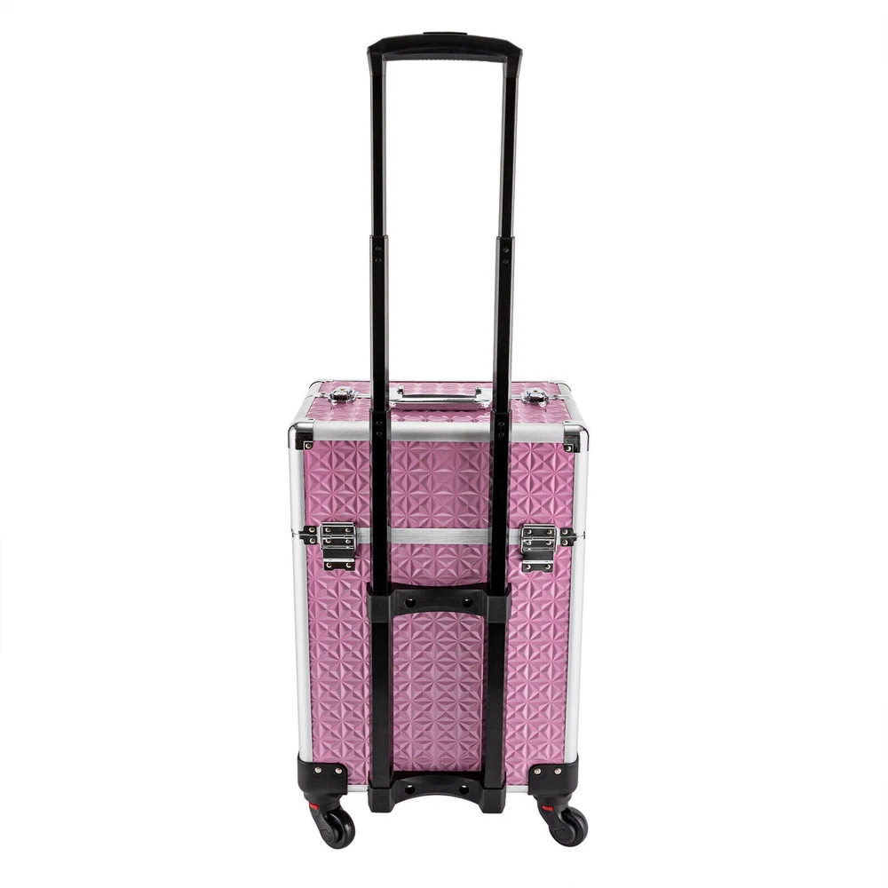 Specifications Material: Aluminum Alloy, ABS, Density Board, and Flannelette Surface Treatment: Indentation Color: Pink Style: Modern Shape: Rectangular Bearing Capacity: About 20kg/44.09lbs Number of Items: 1 Number of Wheels: 4 Gears of Pull Rod: 3 Number of Compartments: 7 Number of Drawers: 1 Net Weight: 5.8kg/12.79lbs Gross Weight: 6.8kg/14.99lbs Product Size: 34*25*47cm/13.4*9.8*18.5inch Package Size: 38*29*54cm/14.96*11.42*21.26inch Length of Pull Rod: About 80cm/31.5inch Package Included 1*Rolling Makeup Train Case 2*Keys Professional Rolling Makeup Train Case Cosmetic Trolley Makeup Storage Organizer Professional Rolling Makeup Train Case Cosmetic Trolley Makeup Storage Organizer Description A good hairstyle and makeup can bring us a new look, but messy tools often affect our work efficiency. Our rolling makeup train case can eliminate your concerns very well. Made of high-quality aluminum alloy, ABS, density board, and flannelette, this case is durable and not easy to rust, so you can use it for a long time and save costs. In addition, the large capacity and compact design can provide convenience for your daily use and carry. With the help of this product, your items can be organized neatly. Key Features Premium Material: This case is made of aluminum alloy, ABS, density board, and flannelette, making the product durable, and not easy to deform and rust, so it can keep beautiful and practical for a long time, and you don't need to replace it frequently. Exquisite Workmanship: The pattern on the surface of the case has gone through the indentation process, which can effectively improve the appearance of the product, play a protective role and extend the service life of the product Large Capacity: The case has seven compartments and a smooth drawer. The reasonable layout allows you to store a variety of items by category, such as skin care products, eye shadows, lipsticks, and makeup brushes. It also facilitates your search. Strong Bearing Capacity: The thickened material and stable structure enable the product to bear a weight of about 20kg/44.09lbs, so you can use it without worrying about being overweight. Adjustable Design: The compartment of the product can be adjusted freely, so you can adjust it according to your own needs and the actual situation of the goods, which is very convenient. Safe and Convenient: The front and top of the case are equipped with an independent safety lock with a built-in lock cylinder, as well as a buckle. With the lock catch, you can carry it safely and conveniently when you go out, and it can guard various items in the box anytime and anywhere. Ready to Use: The product adopts an integrated design, so you can use it directly after receiving the goods, saving you time. Beautiful Appearance: The case is pink with smooth lines, and is full of modern and fashion sense, making the product attractive. This case is not only a practical tool but also a chic accessory to show your unique fashion taste. Compact and Lightweight: The size of this case is 34*25*47cm/13.4*9.8*18.5inch, and its net weight is 5.8kg/12.79lbs, so you can put it in the dresser and the studio at will, and it is also very convenient for you to carry. Easy to Clean: The surface of the product is smooth, and the high-quality material makes the product not easy to accumulate dust. After a period of use, you only need to use a towel for cleaning. Ideal Gift: With a good appearance and a large capacity, you can give it to your friends or family who work in the hair salon or makeup shop to help them store hair tools or other items. Protective Shipping: In order to prevent the product from being damaged and bumped during transportation, we fill the package with anti-collision protection foam to protect your products to the maximum extent possible. Details Removable Universal Wheels: This case is equipped with four detachable wheels which are tightly wrapped with 12mm/0.47inch plastic cement, which allows you to move flexibly with low noise. Practical Handle and Pull Rod: There is a handle on the top of the product and a pull rod fixed by two buckles and with three gears, which provides more convenience for you to move and carry it, and it can also meet the needs of people in different heights . Round Corners: The case adopts thickened alloy anti-collision corners and is fixed with 3 rivets, which are solid and stable, just like the armor to protect the product from collision and fall, and it also can better protect your safety and prevent skin from being scratched. Two Keys: Two high-quality keys are provided in the package of the product, which is convenient for you to open and close the product. Application This rolling makeup train case can be widely used by hair stylists, pet groomers , makeup artists, and so on for storing scissors, makeup, jewelry, combs, and other items. In addition, it is also very suitable for you to store tool s or daily necessities when y ou go out. Specifications Material: Aluminum Alloy, ABS, Density Board, and Flannelette Surface Treatment: Indentation Color: Pink Style: Modern Shape: Rectangular Bearing Capacity: About 20kg/44.09lbs Number of Items: 1 Number of Wheels: 4 Gears of Pull Rod: 3 Number of Compartments: 7 Number of Drawers: 1 Net Weight: 5.8kg/12.79lbs Gross Weight: 6.8kg/14.99lbs Product Size: 34*25*47cm/13.4*9.8*18.5inch Package Size: 38*29*54cm/14.96*11.42*21.26inch Length of Pull Rod: About 80cm/31.5inch Package Included 1*Rolling Makeup Train Case 2*Keys Notes Please remember always lift the case with the top carrying handle when going upstairs. Please note that the four wheels of this product are not equipped with brakes. Please allow the slight color difference caused by the shooting light and 1-3cm error due to manual measurement, and make sure you do not mind before you order. Payment Delivery details Terms of sales About us Contact us Payment We accept ebay payment 。 Fees such as import duties, taxes are not included in the item price