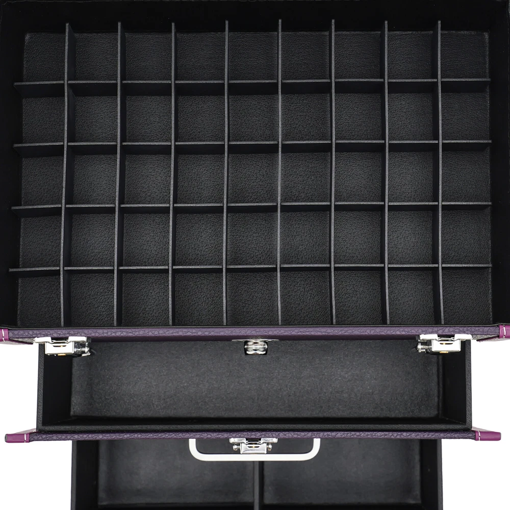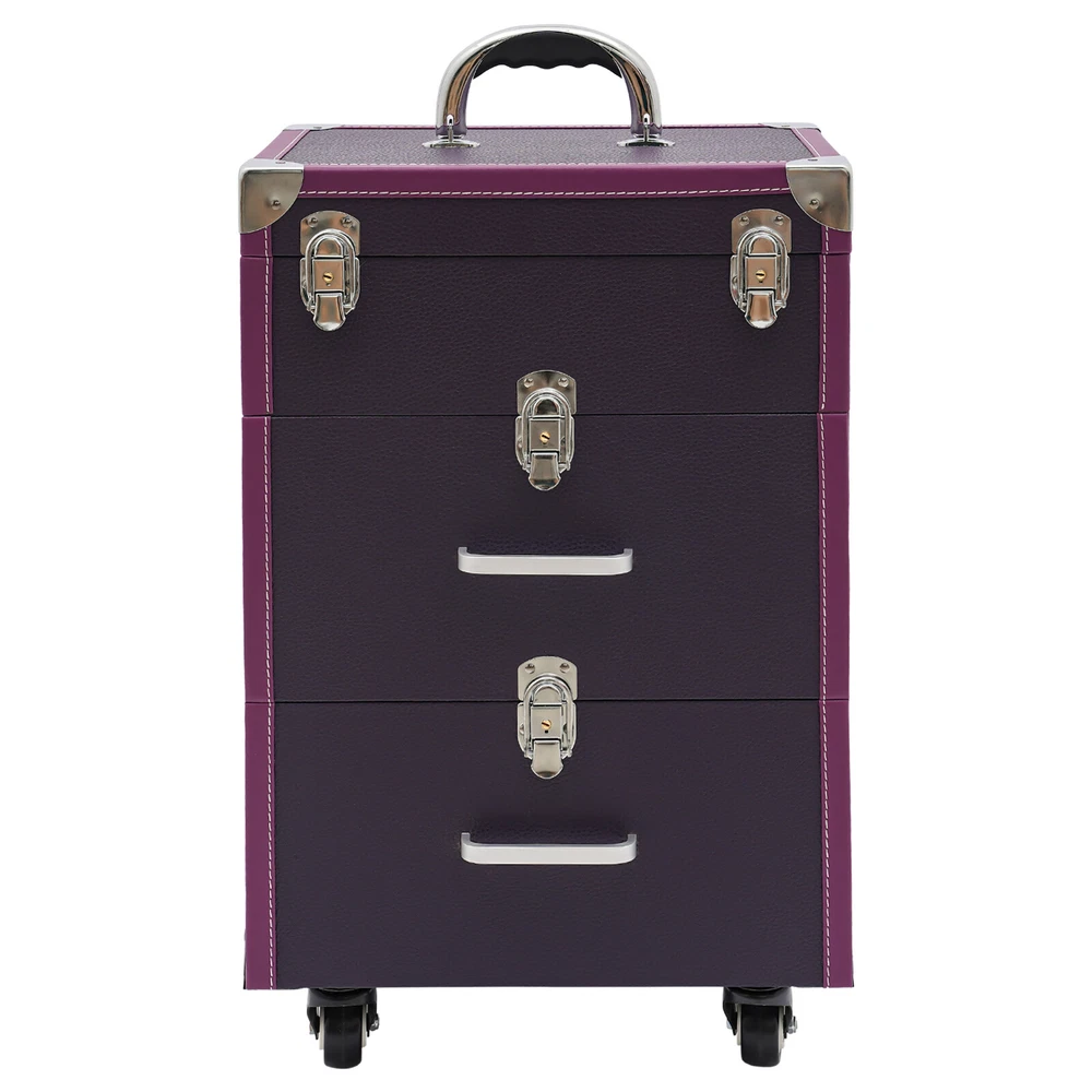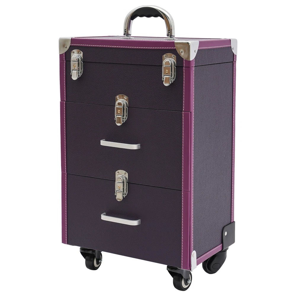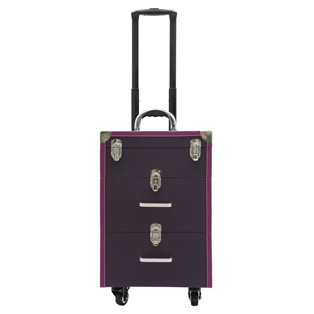 Description A good makeup case is essential for makeup artists. The rolling makeup case is made of high-quality materials, sturdy and durable. The large capacity design allows you to partition and store different cosmetics, hair tools, and more. With the minimalist style, universal wheels, retractable pull rod, and comfortable handles, it makes your make-up work more convenient! Key Features Premium Materials: This product is made of high-quality PVC and aluminum alloy, which is corrosion-resistant, wear-resistant, and not easy to fade, ensuring a long service life. Large Capacity: The two drawers at the bottom allow you to store curling irons, hair dryers and other large items, The large compartment with 45 slots makes it easy to store nail polishes and lipsticks, it is also removable Professional Makeup Train Case Rolling Cosmetic Travel Organizer Suitcase Description A good makeup case is essential for makeup artists. The rolling makeup case is made of high-quality materials, sturdy and durable. The large capacity design allows you to partition and store different cosmetics, hair tools, and more. With the minimalist style, universal wheels, retractable pull rod, and comfortable handles, it makes your make-up work more convenient! Key Features Premium Materials: This product is made of high-quality PVC and aluminum alloy, which is corrosion-resistant, wear-resistant, and not easy to fade, ensuring a long service life. Large Capacity : The two drawers at the bottom allow you to store curling irons, hair dryers and other large items, The large compartment with 45 slots makes it easy to store nail polishes and lipsticks, it is also removable for easy cleaning. The clear bag makes it easy to store make-up brushes, foundations, eyeshadow palettes and other small items(all not included) for your convenience. Thanks to the hook and loop fastener design, you can easily detach the clear makeup bag to use as a separate small bag, which is very portable. Outstanding Load Capacity: The rectangular structure and high-quality materials give the case an excellent weight capacity (up to 110.23 lbs around). You can put all your hair and beauty tools in it with confidence. Protect Your Privacy: Locking latches securely protects valuables inside the case and maximizes your privacy. Flexible Movement: The easy-to-move silent universal wheels(with two brakes), telescopic pull rod, and case body handle make it easy to move the case up and down stairs, in and out of the car, and in the lift. Simple and Generous: The pleasing purple and silver color, three-dimensional structure, and smooth lines give the product a modern feel. Such a beautiful makeup case can nicely decorate your dressing room and make a good impression when you are out at work. Exquisite Gift : The exquisite design and large capacity make this product a great gift to your mother, girlfriend, sisters, wife, and loved ones engaged in the makeup industry. Easy Maintenance : A simple construction and smooth surface make this product easy to clean, you just need a towel and water to easily remove dust and residue. Details Wide Opening : With a wide opening (beveled edge length: 14.1in), it is easy for you to store and retrieve certain items without messing up other items in the drawer. 2 Keys : The configuration of two keys prevents the worry of losing or forgetting one key. It also enables you to open the case easily. Drawer Handle: It allows you to pull out drawers smoothly. Wrapped Corners: They can better protect the product from wear and collision, thus extending its service life. Application It is recommended for make-up artists from beginners to professionals such as freelance make-up artists, wedding make-up artists, celebrity make-up artists, and make-up interns. It can also be used for traveling or kept at home for makeup enthusiasts, hair barbers/stylists, nail technicians, estheticians, embroiderers, and crafters. Specifications Material: PVC, Aluminium Alloy, HDF, Rubber, Metal Color: Purple, Silver Style: Modern Shape: Rectangular Assembly Required: No Mounting Type: Floor Standing Wheel Type: Universal Wheel(2 with Brakes) Carrying Method: Hand-held, Hand-pulled Load Bearing Capacity: About 50kg/110.23lbs Applicable Nail Polish Bottle Height: 12cm/4.7in Length of Open Bevelled Edges: 36cm/14.1in Drawer Height: 17cm/6.7in, 17cm/6.7in, 9cm/3.5in Telescopic Rod Extension Height from Case: 45cm/17.7in Product Size: 36*23*57cm/14.1*9*22.4in Package Size: 64*42*33cm/25.2*16.54*12.99in Gross Weight: 8.3kg/18.3lbs Net Weight: 7kg/15.43lbs Package Included 1*Rolling Makeup Case 2*Keys Notes Please note that cosmetics are not included. Please use this product within its carrying capacity. Please be sure to lift the case by the top carry handle when going up the stairs. The service wear of the case is a normal phenomenon. In the process of daily use, please try to avoid excessive impact and drop to extend the lifespan of the product. Please clear the wheels in time to maintain smooth movement. Please use soft tools and water to clean. Please keep away from corrosive liquids. Please avoid long-term exposure to the sun. To avoid the case from tipping, please ensure the front wheels are facing forward and locked into place when stationed and in use. It's normal for the tie rod to wobble a little bit as it needs clearance to move back and forth better. If it is too tight, it will harm the tie rod instead. Please make sure you don't mind before purchasing. Please allow the slight color difference caused by the shooting light and 1-3cm error due to manual measurement and make sure you do not mind before ordering. Payment Delivery details Terms of sales About us Contact us Payment We accept ebay payment 。 Fees such as import duties, taxes are not included in the item price or shipping costs. These charges are the buyer's responsibility. Delivery details Shipping: 2-9 working days to: USA Terms of sales We maintain high standards of excellence and 