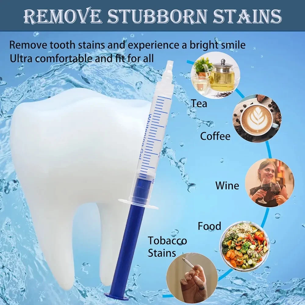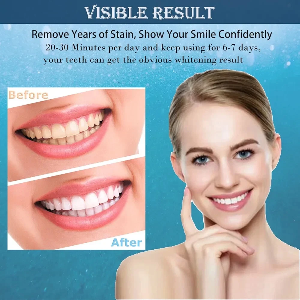 Professional Home Teeth Whitening Kit HOW TO USE Prepare: Brush your teeth before application. Apply Gel: Dispense the whitening gel onto the mouthpiece, ensuring an even distribution. Insert Mouth Tray: Place the mouthpiece into your mouth, securing a snug fit for optimal contact with your teeth. Activate LED Light: Turn on the LED light to enhance the whitening process, ensuring each tooth receives the maximum benefit. Wait: Allow the gel to work its magic for 20-30 minutes. Rinse: Gently remove the mouthpiece, rinse your mouth, and clean the mouthpiece for future use. THE KIT CONTAINS 5 X 3 ML TEETH WHITENING GELS 2 X MOUTH TRAYS LED LIGHT SHADE GUIDE INSTRUCTIONS ✅ SAMEDAY DISPATCH ✅ ✅ FAST FREE DELIVERY ✅ Benefits of Use: Stain Removal: Effortlessly eliminate common stains from daily life like tea, coffee, red wine, smoking and more, restoring the natural brilliance of your teeth. Customer service we want happy customers, we pride ourselves on providing excellent customer service. If for whatever reason you are not completely happy with your purchase just send us a message and we will get things sorted straight away. INGREDIENTS: Propylene Glycol, Glycerin, Aqua, Cellulose gum, Carbomer, Sodium Bicarbonate, EDTA, Menthol, PVP, Sodium chlorite This teeth whitening kit complies with Ebay and EU UK rules and contains less than 0.1% Hydrogen or Carbamide peroxide. SGS Certified & Complete With MSDS Report. This product does not contain carbamide peroxide, zinc peroxide, or other compounds that release hydrogen peroxide. Expires 03/26