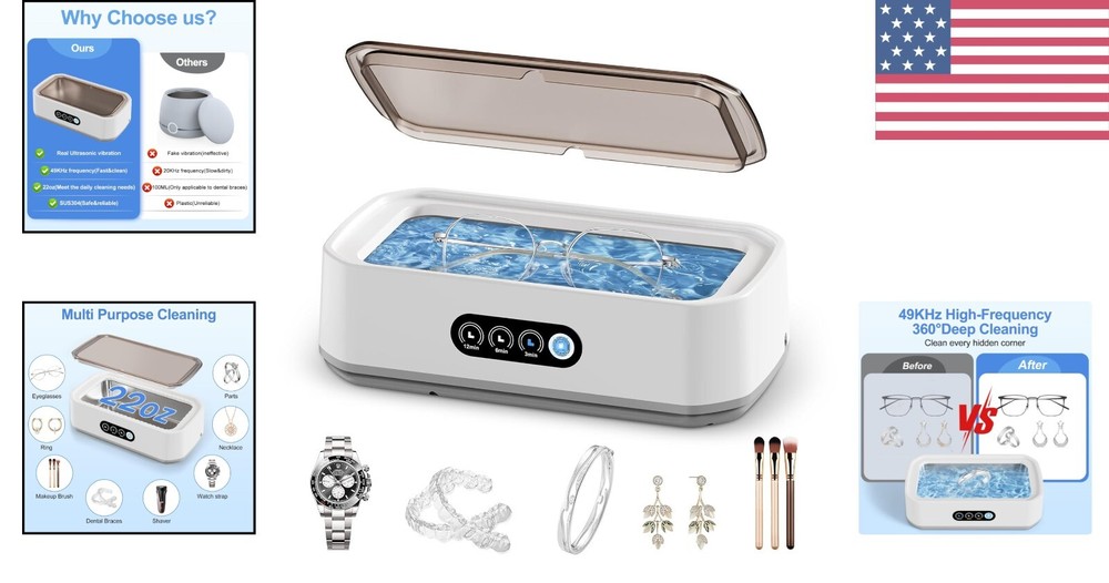This ultrasonic jewelry cleaner is a game-changer! It effortlessly restores shine to rings, watches, glasses, and more with its powerful cleaning action. The digital timer and touch controls make it super easy to use, while the large tank fits multiple items at once. My jewelry looks brand new after just a few minutes—highly recommend for anyone who wants professional-level cleaning at home!