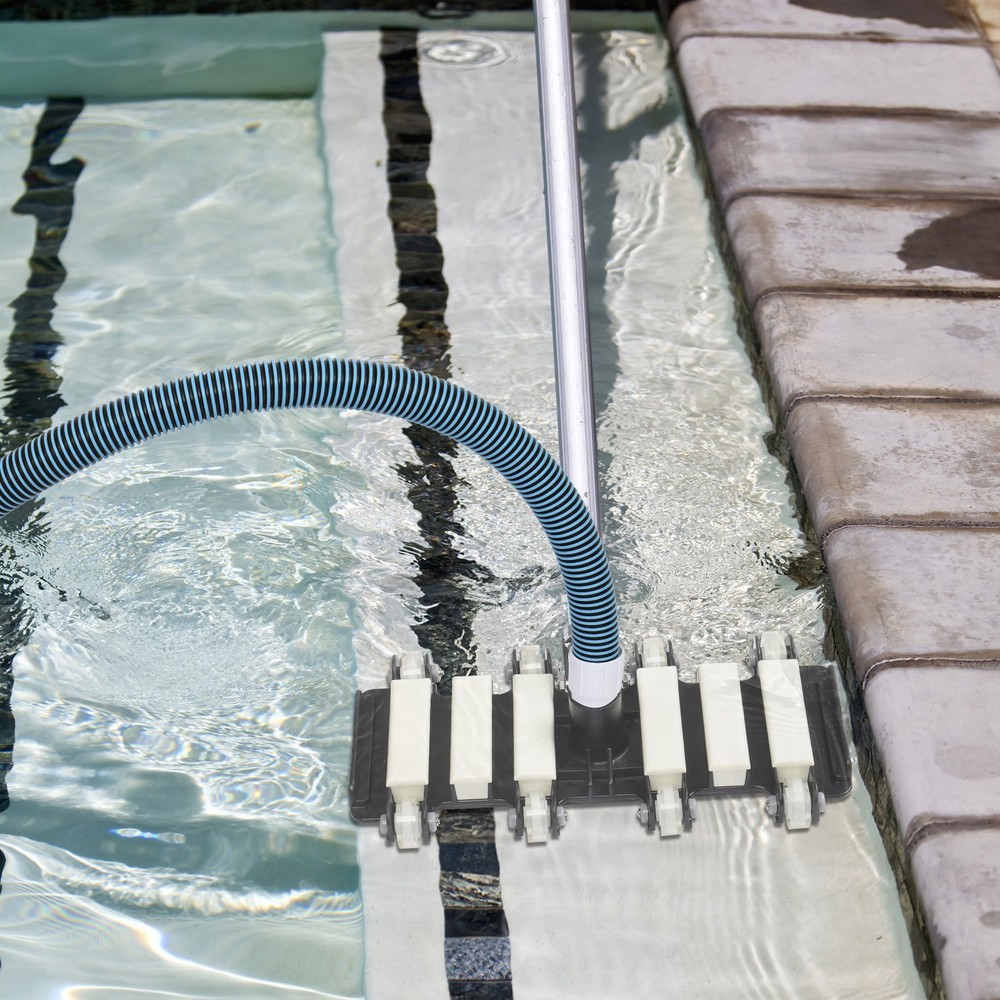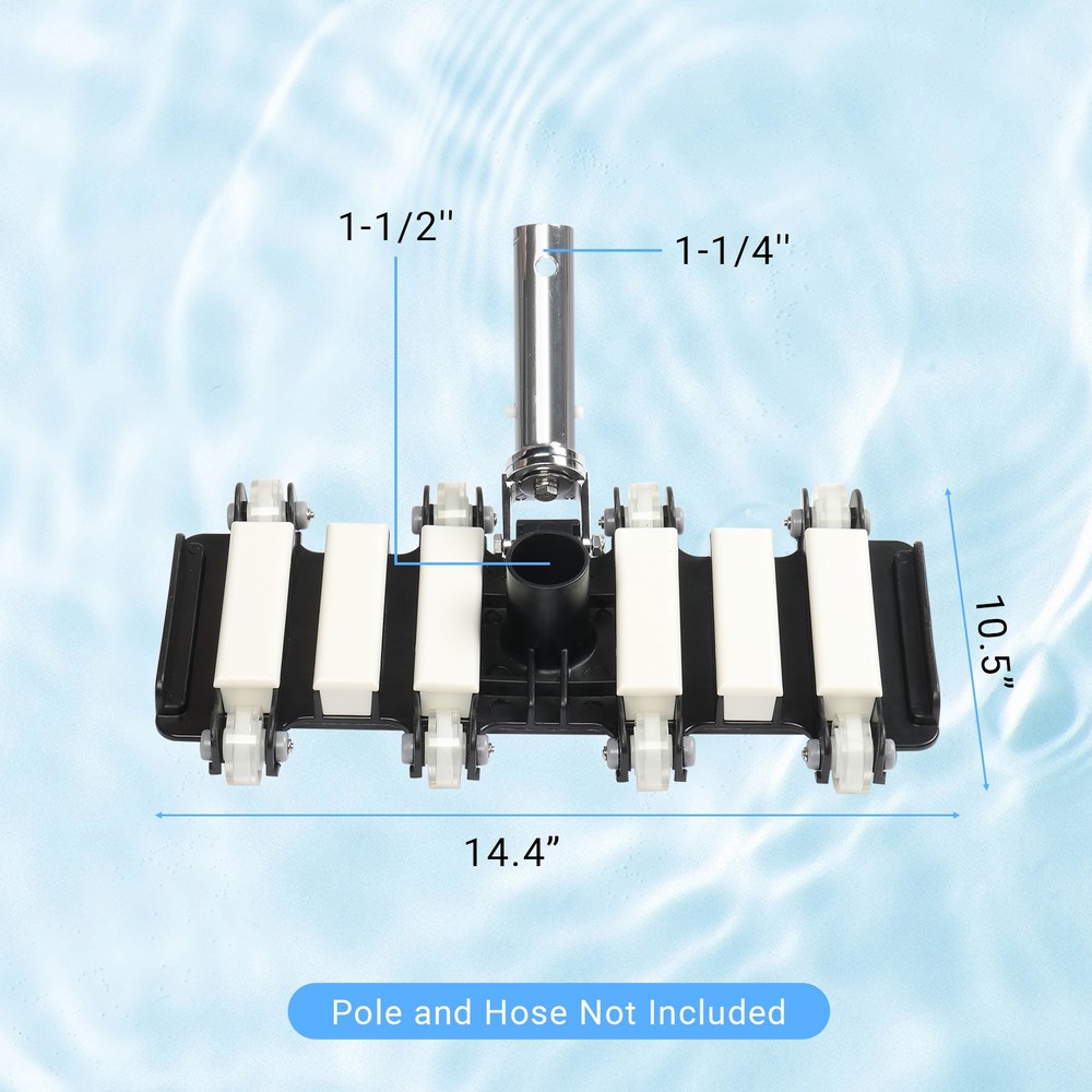 This pool vacuum head is a game-changer! The weighted design keeps it firmly in place while the flexible body glides effortlessly over curves and flat surfaces, ensuring no dirt is left behind. Super easy to set up—just attach your hose and handle, and you're ready for a spotless pool. The suction power is impressive, tackling debris without any hassle. Highly recommend for hassle-free cleaning!