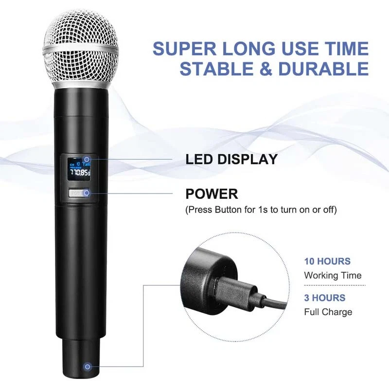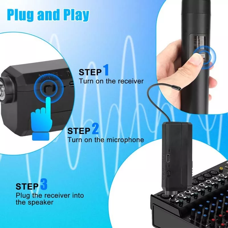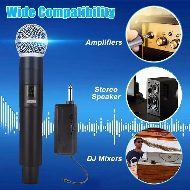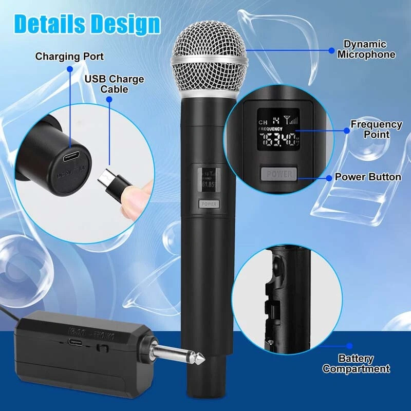 SAFE & SECURE SHOPPING 100% SATISFACTION GUARANTEED FAST SHIPPING VHF Professional Wireless Handheld Microphone System Karaoke w/Adapter Receiver Product Description Feature: 1. Extended Wireless Range: Experience the freedom to move up to 50 meters away from the receiver without compromising the audio quality. 2. Rechargeable and Long-lasting: The microphone and receiver feature built-in rechargeable batteries, with a DC 5V charging interface, with a single full charge providing up to 10 hours of continuous usage. 3. Enhanced Audio Quality: Equipped with a 30mm dynamic microphone core, our wireless microphone system delivers exceptional sound quality with full-bodied, true-to-life vocal reproduction. 4. Easy Setup: Simply connect the receiver to your audio equipment, pair it with the microphone, and you're ready to go. 5. Compatibility: Our wireless microphone system is fit for most sound systems, speakers, and audio devices for seamless integration. 6. Intelligent DSP Technology: Our wireless microphone system features intelligent Digital Signal Processing (DSP) technology, specifically designed to combat high-frequency interference and prevent signal dropout. Specification: Type: VHF Wireless Microphone Color: Black Capsule: Dynamic Dynamic range:96 db Material: ABS+ Metal Frequency:261.8 MHZ Polar pattern: Cardioid Harmonic radiation:<-50DBC Transmission power:20mwW The distortion degree of:<0.5% Operating temperature:-10 - 50℃ Frequency response:80Hz-18KHz Wireless receiving range:50 meters Radiofrequency bandwidth:60 MHZ Scope of application: Universally used in various sizes of speakers, amplifiers, power amplifiers, computers, SLR cameras, televisions, and other equipment. include: 1x Wireless Microphone 1x Charging Cable 1x 6.5mm Receiver 1x 6.35mm to 3.5mm Adapter 1x Anti-Slip Ring 2x battery 2x Sponge cover 1x User Manual Payment Shipping Returns Contact Us Payment 1. This is the payment method we can accept: Paypal 2. You can checkout and pay immediately after the auction ends or you complete the purchases. If you need an eBay invoice sent to you by Email, please contact us before making payments. 3. Once the checkout is completed, you will not be able to include any additional purchases. We start to process and fulfill your order once payment is received. New purchases after the checkout will be processed separately. 4. Payments are expected within 4 days after the order is confirmed. Unpaid item (UPI) strike may be filed with eBay upon non-receipt of payment. Shipping 1. How much is the shipping & handling (S&H)? Our shipping and handling charges are clearly stated in the Shipping and Payments section of the item page, and we provide Free Shipping for most items. 2. For multiple purchases, the combine shipping discount will be automatically calculated when you check out and pay all of your purchases together. Items checked out separately may not be combined and the combine shipping discount will not be offered automatically. 3. Please make sure the correct Ship-To address is entered before checking out. Once the payment is completed, you may not be able to change the shipping address. We shall not be held responsible for any wrong or undeliverable addresses. 4. We usually ship within 1-2 business days of receiving cleared payment. Returns 1. We put buyer's satisfaction at top priority. If you're not pleased with your purchases, we'll be happy to make an exchange or refund the item total price less Shipping and Handling (S&H) charges within 30 days of your purchases. 2. For any Exchange, Refund or Return, the item must be in its original condition, including the box, packaging, and all the accessories or gifts. 3. We'll provide prepaid return shipping label if the return is a result of our error. Postage reimbursement is offered only on standard mails, and it needs to be approved by our staff prior to returning. 4. Please allow up to 7 business days for returns to be processed. 5. Shipping and Handling (S&H) charges are not refundable. Contact Us 1. Customer satisfaction is very important to us and our feedback rating reflects this satisfaction. If you have any question or concern, please contact us via eBay message. 2. We respond to all eBay messages as quickly as possible. Though your question will usually be answered very soon, please allow us up to one business day before you start thinking your message is neglected or the reply is avoided, because there would be time difference, non-working hours or public holidays that have prevented us from making an instant response. Copyright © 2022 Tongtool