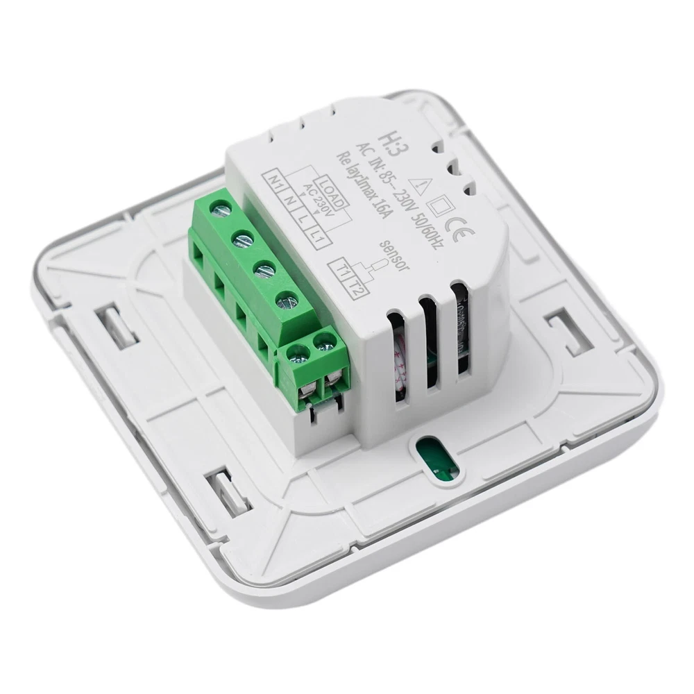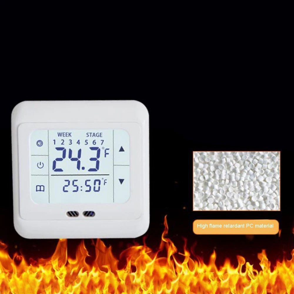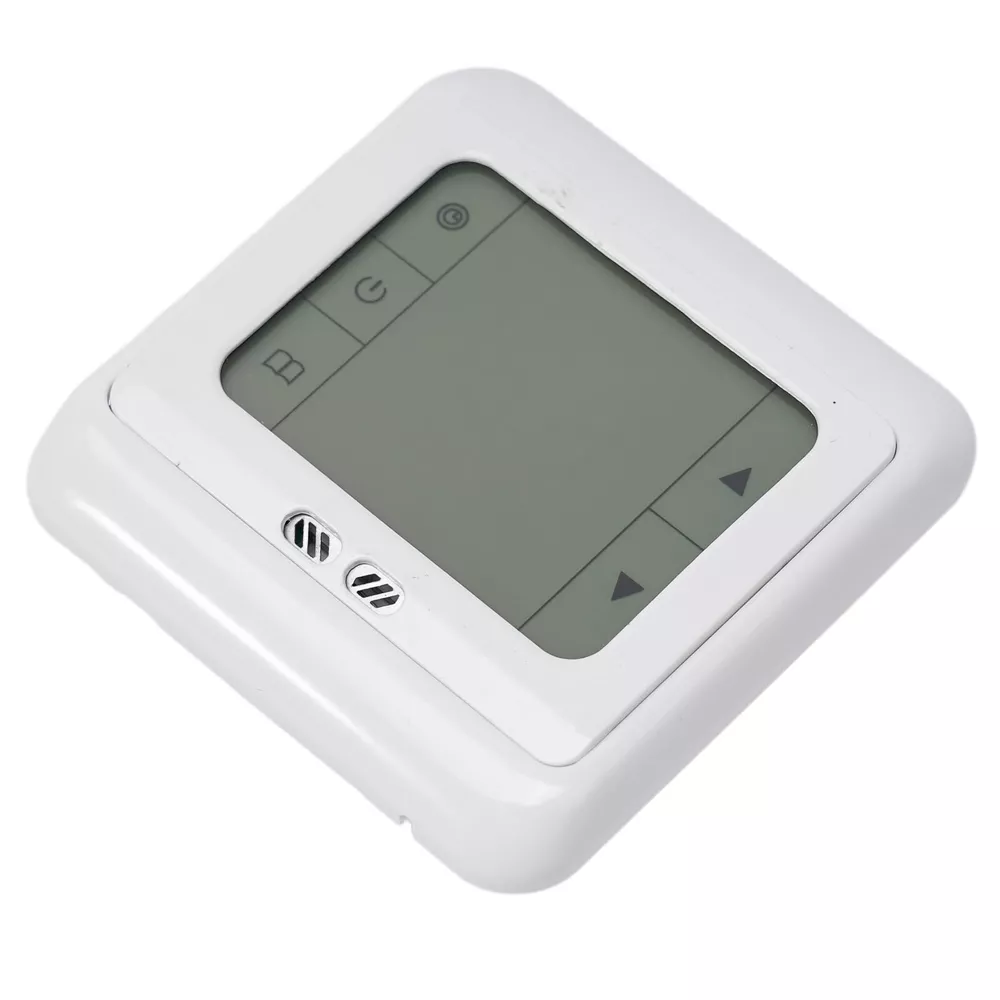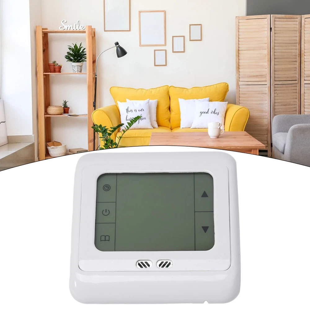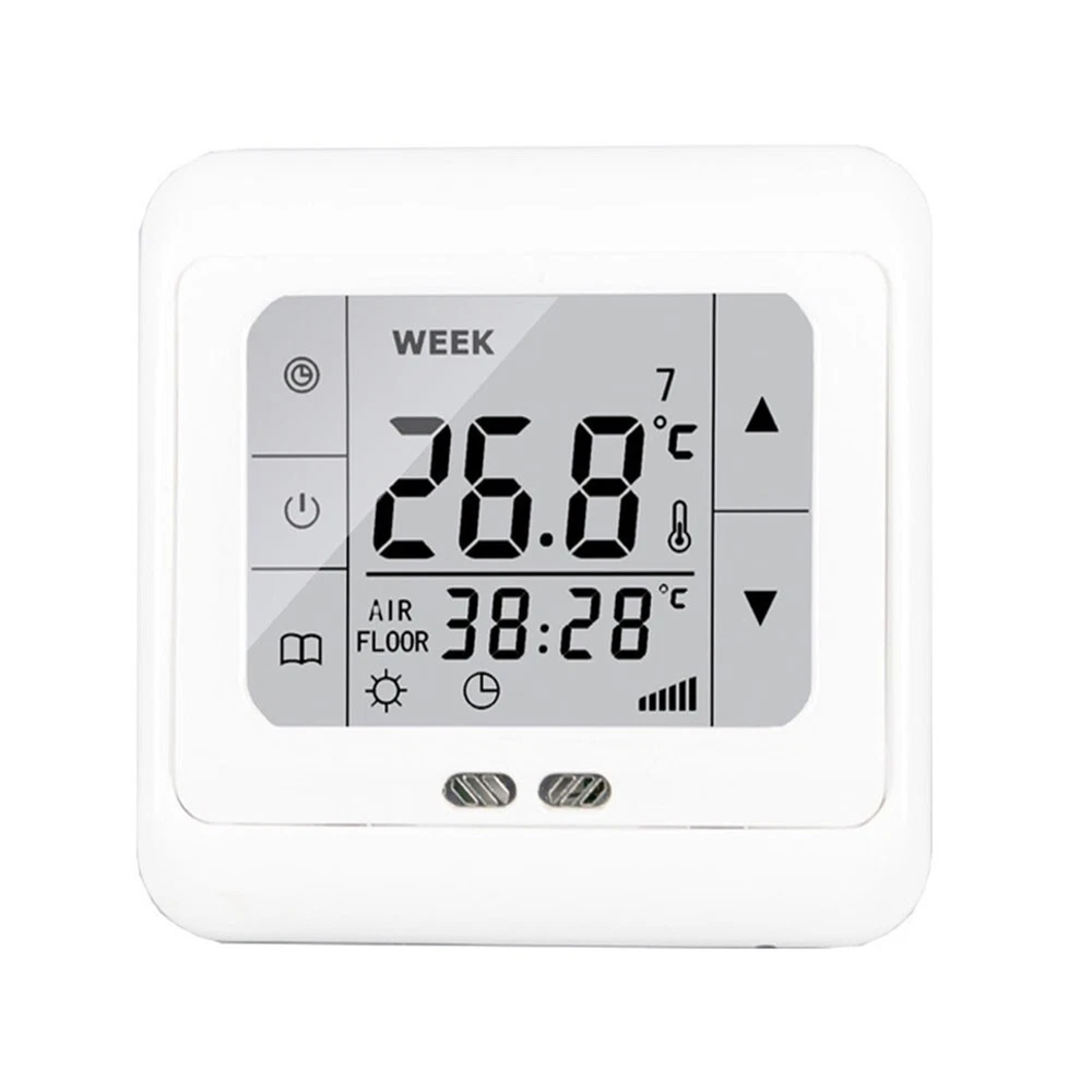 Product Description Features: * Dual temperature sensor control: the inner sensor measures the air temperature; the outer sensor measures the floor temperature. (internal sensor control by default) * Dual temperature display: real-time temperature set temperature. * Memory function: The settings can be saved when the power is cut off. (default function is off) * Automatic calibration function: room temperature display accuracy 0.5, internal accuracy 0.1. * Three working modes: Monday to Friday/Monday to Saturday/Monday to Sunday. * select of manual mode programmable mode. * Programmable temperature setting for time periods per day. Product Description: Modern touch screen room thermostats are designed to control the on/off of electric heating applications for comfort and energy saving by comparing the room temperature with the set temperature. It can control electric ball valves, electric valves, thermal valves, solenoid valves, heaters, electric heating films, and electric heating carbon crystals. It is used for floor heating. Not suitable for boilers, furnaces, water heating, air conditioning. Specification: * Material: PC+ABS * color: White * Power supply: AC 80-220V 50/60Hz * Load current: 16A (electric heating) * Power consumption: <0.3W * Accuracy: ±0.5℃ * Set point temperature range: 5°C - 35°C * Extreme temperature range: 5-99°C * Temperature sensor: * Setting unit: 0.5°C/step * Backlight: blue, automatically off after seconds * Thermostat size: 86*86*14mm (height*width*depth) * Output power: 250V AC/25A * Button: touch mode * Quantity: 1PCS Package content: 1 X temperature controller Note: 1. The real color of the item may be slightly different from the pictures shown on website caused by many factors such as brightness of your monitor and light brightness. 2. Please allow slight manual measurement deviation for the data. Payment Payment must be completed within 5 days. If you have any problems about payment, please contact us via ebay message. Delivery details We only ship to confirmed ebay Order addresses. Please comfirm that your Order address is in line with your shipping address. Please kindly note that the c ombined shipping is not provided because the shipping fee is calculated by weight. Also, the each additional item means exactly the the same color and size. It takes about 7 -15 working days to US; about 10-30 working days to other countries. Transit time may be a little delayed because of the bad weather and customs inspection . If you do not receive your item within 30 working days since payment finished, please contact us immediately for further assistance. Contact us We strive for 100% customer satisfaction! Positive Feedback is very important to us. If you have any questions, p lease feel free to contact us via "Ask seller a question" . We will reply your email within 24 working hours.