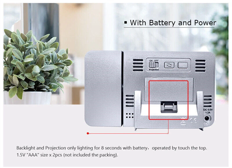 You Might Also Like Waterproof Digital Sports Watch Military Tactical LED Backlight Wristwatch Men 9.34 USD 10.99 USD Free shipping 15% off Black Resin Watch Strap For CASIO Sport Diving Watch Rubber Replacement Band 7.22 USD 8.49 USD Free shipping 15% off Replacement 6 Channel USB Receiver Dongle For Logitech Unifying Keyboard/Mouse 11.3 USD 13.29 USD Free shipping 15% off Replacement USB Receiver Dongle For Logitech M950 M310 M525 M720 Keyboard 8.24 USD 9.69 USD Free shipping 15% off USB Wireless Bluetooth Receiver 3.5mm AUX Audio Stereo Music Home Car Adapter 8.07 USD 9.49 USD Free shipping 15% off 18MM Watchband For Casio W-800H F-91 W-218H Watch Band Replacement Black Strap 7.64 USD 8.99 USD Free shipping 15% off 1 PCS 7S26A Movement Automatic Rotor Oscillating Weight For Seiko NH35 NH36 11.04 USD 12.99 USD Free shipping 15% off 4 Colors For PSP3000 Shell Case Replacement Full Housing Cover With Buttons 17.74 USD 20.87 USD Free shipping 15% off 12V Digital Thermostat Temperature Control Switch Sensor Module Board 8.66 USD 10.19 USD Free shipping 15% off For NZXT Aer RGB InOut Cable Input Cable Connection Cable Case Fan Adapter Cable 7.3 USD 8.59 USD Free shipping 15% off Touch Screen Pen Stylus Drawing Universal For iPhone iPad Samsung Tablet Phone 8.49 USD 9.99 USD Free shipping 15% off 3.0-7.0mm Assorted Watch Crown Head Upgrade Parts Repair Tools & Kits Watchmaker 12.32 USD 14.49 USD Free shipping 15% off Product Description If you have any questions, please contact customer service first, do not open disputes easily, thank you! Product Features: (1) Temperature and time projection and on/off button; (2) Dual alarm clock with snooze function; (3) 12/24 hour system time; (4) The calendar has 7 optional languages (English, German, Italian, French, Spanish, Dutch and Danish); 5) Indoor temperature and humidity, alternating in degrees Celsius or Fahrenheit; (6) 1 USB charger, convenient for charging electronic devices; (7) The projection angle can be changed; (8) Small, simple design and large digital display make it easy to read all information from all angles. Power supply: 2 aaa batteries (not included) or USB power cord (included). Product Description: Automatic snooze function: Follow the steps below to turn on the automatic snooze function. When the alarm sounds, touch the "light/snooze" button to turn on the snooze function. Then the snooze function is activated or flashes on the icon on the screen. This action will move the alarm back in 5 minutes, and the alarm will be reset at that moment. Press any button to stop the snooze function. F. yi: If one alarm is delayed during this process and another alarm sounds, the snooze function of the first alarm will be automatically stopped. Backlight: At any time, touching the "light up/snooze" button will turn on the backlight for 8 seconds. If you use a USB cable, the product backlight will have 4 brightness modes, low and medium light output, each time you tap it to switch to one mode. And it can stay on all the time. Charging function: In the case of using a usb cable, the mobile phone or pda can be charged through the usb plug on the left side of the product. Projection function: The projection lamp on the right side of the product can project the current time and clock temperature on the wall or roof to watch the night time. If the projection direction is not correct, please press the ldquo middle direction behind the rdquo button on the remote control to switch the screen direction . When using the USB data cable, the projection will always work. You can choose to turn on or not turn on the projection lamp through the power switch on the back of the product. When powered by battery, you can also use this switch to select whether the projection lamp and the backlight are turned on at the same time. Package Contents: 1*Projection alarm clock 1*USB power cord 1*User Manual Payment Shipping Contact Us We accept paypal payments and all payments authorized by eBay. 1.We ship to your eBay or Paypal address. Please make sure your eBay and Paypal address is correct before you pay. 2.Items will be shipped within 1-2 business day when we received payment. 3.Delivery time depends on destination and other factors We strive for 100% customer satisfaction! Postive Feedback is very important to us. If you have any questions, please feel free to contact us via "Ask seller a question" , we will reply your email within 24 Working hours. Payment We accept paypal payments and all payments authorized by eBay. Shipping 1.We ship to your eBay or Paypal address. Please make sure your eBay and Paypal address is correct before you pay. 2.Items will be shipped within 1-2 business day when we received payment. 3.Delivery time depends on destination and other factors Contact Us We strive for 100% customer satisfaction! Postive Feedback is very important to us. If you have any questions, please feel free to contact us via "Ask seller a question" , we will reply your email within 24 Working hours. powered by