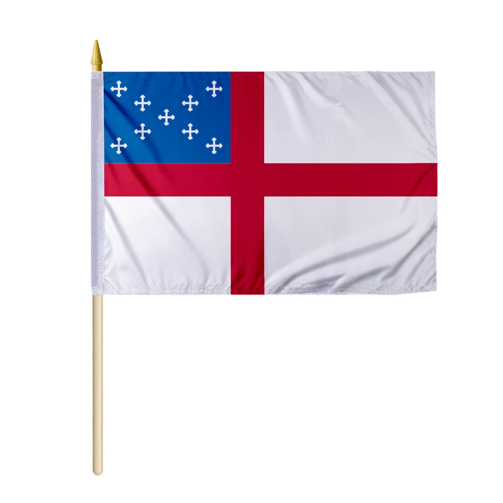 Promo Patriot's Religious Flags - Episcopal Stick Flag Multi Variation (4x6in SF - ePoly, 12x18in SF - ePoly, 12x18 in, 2x3 ft, 3x5 ft, 4x6 ft, 5x8ft, 6x10 ft) - Display Your Faith Product The William Baldwin-designed Episcopal flag has served as the Episcopal Church's official emblem since 1940. The hues stand for fidelity (blue), martyrs' blood (red), and purity (white). The flag is divided into four quarters by a crimson St. George's cross in the middle. The St. Andrew's cross is formed by the nine crosslets in the blue area of the flag's upper left corner. Shipping Our flags are carefully packaged and shipped promptly to ensure they reach you in perfect condition. Please note that we have a handling time of 5 days from the date of order Contact Our products are meticulously crafted using durable materials to ensure long-lasting quality. Each flag undergoes rigorous quality assurance checks to maintain the highest standards of craftsmanship. SPECIFICATIONS : 4"x6" Inch : Made in the USA from imported material, 100% polyester. Printed on one side with UV and fade-resistant inks. 12"x18" Inch (ePoly) : Made in the USA from imported material, 100% polyester. Printed on one side with UV and fade-resistant inks. 12"x18" Inch : Made in the USA from imported materials. 100% 200 Denier Nylon. 2'x3' Inch : Made in the USA from imported materials. 100% 200 Denier Nylon. 3'x5' Inch : Made in the USA from imported materials. 100% 200 Denier Nylon. 4'x6' Inch : Made in the USA from imported materials. 100% 200 Denier Nylon. 5'x8' Inch : Made in the USA from imported materials. 100% 200 Denier Nylon. 6'x10' Inch : Made in the USA from imported materials. 100% 200 Denier Nylon. QUALITY CRAFTSMANSHIP : 4"x6" Inch : Stitched edges with a 0.35-inch sewn open-ended ePoly sleeve. 12"x18" Inch (ePoly) : Stitched edges with a 0.6-inch sewn open-ended ePoly sleeve. 12"x18" Inch : Two rows of stitching on the top and bottom with quadruple stitching on the fly-end to prevent fraying. 2'x3' Inch : Two rows of stitching on the top and bottom with quadruple stitching on the fly-end to prevent fraying. 3'x5' Inch : Two rows of stitching on the top and bottom with six rows of stitching on the fly-end to prevent fraying. 4'x6' Inch : Two rows of stitching on the top and bottom with a double-folded quadruple-stitched fly-end to prevent tearing. 5'x8' Inch : Two rows of stitching on the top and bottom with a double-folded quadruple-stitched fly-end to prevent tearing. 6'x10' Inch : Two rows of stitching on the top and bottom with a double-folded quadruple-stitched fly-end to prevent tearing. Anti-Fade, Anti-UV: The fade-proof colors of the flag are UV-resistant, ensuring that your flag remains vibrant and eye-catching even after prolonged outdoor use. The fade-proof colors of the flag are UV-resistant, ensuring that your flag remains vibrant and eye-catching even after prolonged outdoor use. Vibrant Color: The flag stands out with its bold and vibrant colors, making a powerful statement of pride and visibility. The flag stands out with its bold and vibrant colors, making a powerful statement of pride and visibility. Show your faith and heritage with these high-quality Episcopal Flags, perfect for any display. About Us Explore Promo Patriot, your one-stop for custom flags, banners, tents, table covers, signs, and more. Discover our range on eBay, from handheld flags to display flags in Patriotic, State, Military, and international designs. With 20 years of leadership, Promo Patriot is a top supplier. Our Philadelphia facility ensures quick and cost-effective order fulfillment, meeting your needs efficiently and competitively.