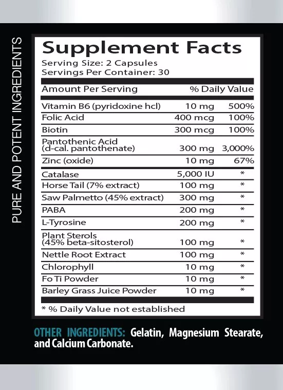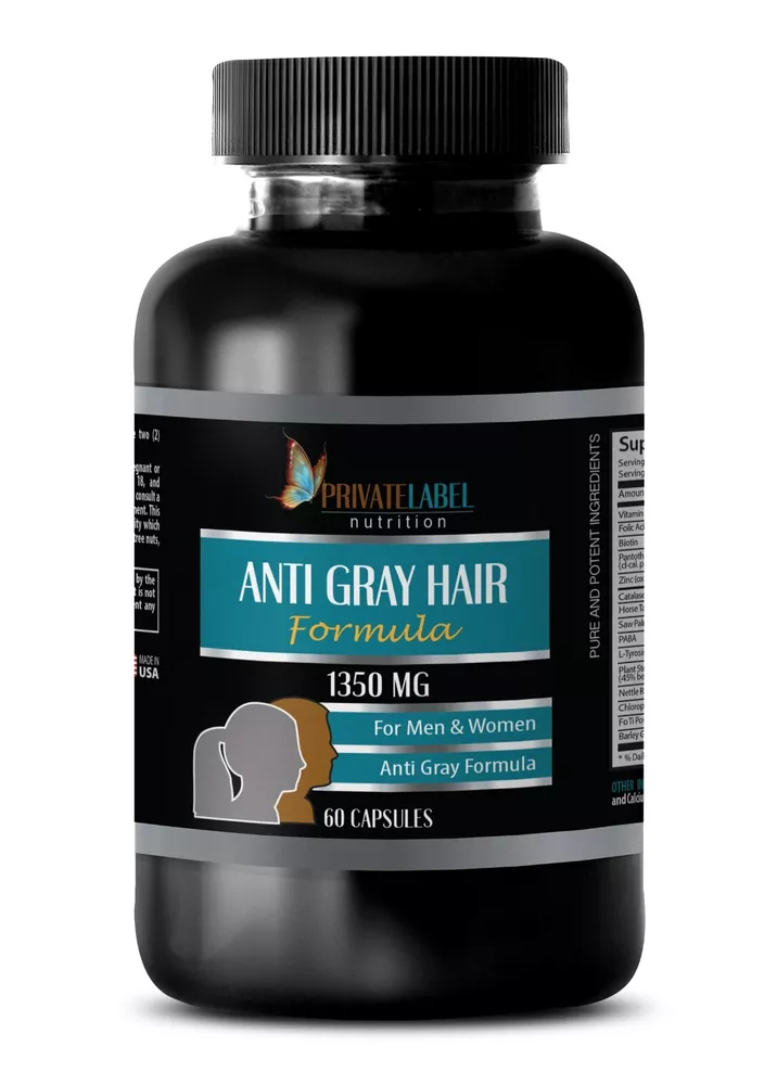 Promotes skin hydration - ANTI GRAY HAIR - Supports immune function 1 Bottles 60 Capsules ANTI-GRAY HAIR Nettle Root for Hair Strength Plant Sterols for Scalp Health Saw Palmetto for Anti-Gray Hair L-Tyrosine for Melanin Production PABA (Para-Aminobenzoic Acid) for Hair Pigmentation SAW PALMETTO FOR ANTI-GRAY HAIR: Saw Palmetto is a natural DHT (dihydrotestosterone) blocker, which helps maintain hair follicles and prevents hair thinning, a common precursor to graying. By inhibiting DHT, Saw Palmetto supports healthy hair growth, keeping hair follicles nourished and vital. This can slow the progression of gray hair, as healthier follicles are more likely to retain pigmentation longer, maintaining the hair’s natural color. PABA (PARA-AMINOBENZOIC ACID) FOR HAIR PIGMENTATION: PABA is often referred to as a natural sunscreen for hair because it can help protect hair follicles from environmental damage, such as UV exposure, which contributes to premature graying. Additionally, PABA has been found to support the body’s ability to restore natural hair color in some cases, as it plays a role in the synthesis of folic acid, a nutrient essential for hair pigmentation. L-TYROSINE FOR MELANIN PRODUCTION: L-Tyrosine is an amino acid crucial for the production of melanin, the pigment responsible for hair and skin color. By supporting melanin synthesis, L-Tyrosine helps maintain natural hair color and prevents premature graying. Supplementing with L-Tyrosine can enhance the body’s ability to produce melanin, which may delay the onset of gray hair and keep existing hair vibrant. PLANT STEROLS FOR SCALP HEALTH: Plant sterols are known for their anti-inflammatory properties, which can improve scalp health and create an optimal environment for hair growth. A healthy scalp ensures that hair follicles are functioning well and reduces the likelihood of conditions that lead to premature graying. By nourishing the scalp and reducing inflammation, plant sterols help maintain strong, healthy hair that retains its natural color for longer. NETTLE ROOT FOR HAIR STRENGTH: Nettle root is rich in minerals and vitamins that are essential for strong, healthy hair. It supports circulation to the scalp, ensuring that hair follicles receive the nutrients they need to produce healthy, pigmented hair. Nettle root also has natural DHT-blocking properties, helping to prevent hair loss and, by extension, slowing the onset of graying hair. Its nutrient-rich profile contributes to overall hair vitality and color retention.
