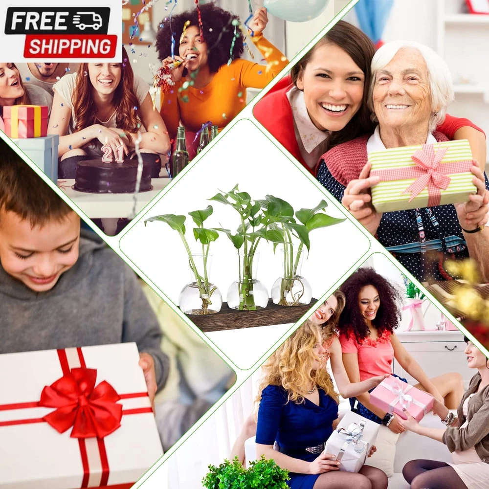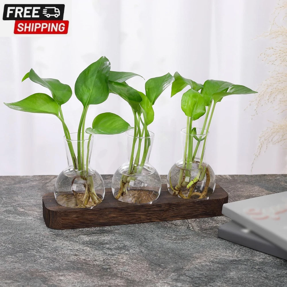 Propagation Stations,Plant Propagation Vase,Desk Plant Terrarium with Retro Wooden Stand,Plant Lover Gifts for Women for Hydroponics Plants Home Garden Wedding Decor(3 Vase) 【Plant Propagation Stations】This desktop propagation vases for plants is perfect for hydroponics, air plants, and flowers, and it also helps purify the air and create a relaxing atmosphere. Who likes plants and enjoy life will love it at a glance. 【Stylish Design】The groove design of the wooden tray is combined with a flat bottomed light bulb vase. Compared to other wall mounted bulb vases, it does not restrict plant growth and is easier to carry and exchange water. 【Retro Home Office Decor】Simple and elegant style plant propagation suit any style room. Add nice touch to your house, put it on window sill, coffee table, living room, ding room, kitchen, dormitory and bedroom. It will be more beautiful and eye-catching if you fill the bottle with colored water or some cobbles. 【Best gifts for women plant lovers】Mother's Day, birthday, Christmas, Valentine’s Day, Thanksgiving gift ideas. Nice present to your nature-loving, gardeners. Sweet wedding party, anniversary, and special occasions decoration gifts. 【Size】Wooden tray: 9.5'' L x 2.8'' W x 1'' H, Vase: 2.8"D x 3.9"H; Opening Diameter is 1.4". No need to install, can be used directly, the product should be placed in the no-sunlight to use.Note: Can not be placed in the sun! 【Service Guarantee】Customers First. We are responsible for any damage during transportation. If you have any questions, contact us through Amazon please. We will serve you wholeheartedly until you are satisfied. Product Description YIBOT Bring green into your life It really is cute,The glass is very clear and sit perfectly into the grooves in the wood base, which adds to the appeal, and the dark wood base has a rustic classiness to it. Gifts for Women This is an perfect desktop glass bulb vase for plant's propagations and cuttings, use to propagate baby plants. It is suitable for display fresh flower, hydroponics plants. Make a great gift for the plant-lover in your life. YIBOT Plants Propagation Stations Plant Terrarium With Wooden Stand Package Contents: 3x Glass Vase 1 x Wooden Tray 3 bottle wooden tray size: 9.5'' L x 2.8'' W x 1'' H Vase: 2.8"D x 4"H Material: Wood, Glass Note: No plants or other decorative objects included in this item! Note: Can not be placed in the sun! Best Gift for Plant lover Desktop Propagation station with retro style great for floral arrangement, home or office decoration as well as various gift ideas. Plant Gifts for Plant Lovers Women Best gifts for women plant lovers,suitable for various festivals such as: Mother's Day, birthday, Christmas, Valentine’s Day, Thanksgiving gift ideas. Shipping Fast shipping is very important for us. Our standard US shipping service is FREE. Your order will be shipped within 2-3 business days upon full payment received. Your order will be delivered within 2-3 business days after the handling time. We only ship to the confirmed PayPal address. We reserve the right to cancel any order for any reason at any time. We are not responsible for undeliverable addresses. Returns and payment We offer a 30 days return policy from checkout winning date. We allow only PayPal as payment method FeedBack Your feedback very important to us, after you get your package and you are satisfied with our service please leave us positive feedback If you have any problem with your order / any questions please before leave any type of feedback For any questions, using eBay contact system Please visit our eBay store to check out other items for sale! Thank you for shopping at our store.