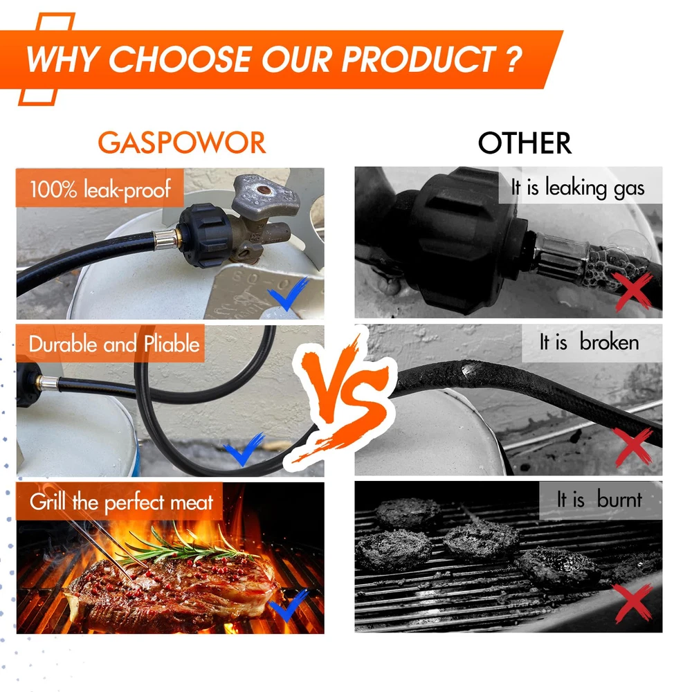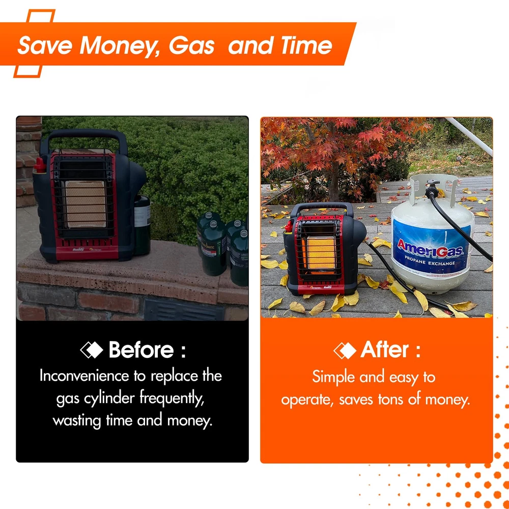 š„ćEasy Installation Propane Converter HosećOur 1lb to 20lb propane tank adapter hose with a 12ft length, is easy to install. No tools are needed; simply tighten the brass connectors by hand. In just one minute, you'll be all set and ready to use it right away. ļ¼Please ensure that your 1lb propane appliance can be connected to a CGA600 connector, before making your purchase. ļ¼ š„ć Versatile Propane Adapter Hose ćpropane heater hose is specifically designed for 1-pound appliances to connect to 5 to 40-pound propane tanks. This propane adapter 20lb to 1lb converter is fit for Buddy heaters/Weber Q grills/Coleman camping stoves/Blackstone 17" & 22" griddles (a regulator is required), and table heaters. Our propane heater hose is an ideal choice for camping, tailgating, heating, or outdoor grilling. š„ćEco-Friendly Propane Hose AdapterćThe 20lb to 1lb propane adapter provides a sustainable alternative for your 1lb propane appliances. By utilizing our propane conversion hose with a 20LB propane tank, you can significantly reduce single-use waste from disposable propane bottles. This adapter hose promotes environmental conservation by encouraging the reuse of larger propane containers, contributing to a greener planet. š„ćHigh-Pressure Propane Hose with Leakage-Proof DesignćThis propane converter hose is well-crafted with pure brass fittings, ensuring an airtight and leak-free connection during use. And our High pressure(max 350PSI) elastomeric hose consists 3 layers: weather-resistant layer, highly tensile cotton braiding, and anti-corrosion layer. With its durable and flexible structure, our propane heater hose is endure challenging outdoor conditions, making it perfect for outdoor propane grills. š„ćCSA Certified Propane Tank Hosećpropane hose adapter 1lb to 20lb is CSA certified and crafted with high-quality materials, ensuring its durability and safety during use. Additionally, we are committed to providing superior product and best service. If you encounter any post-purchase issues, our professional support team is available to assist you at any time.