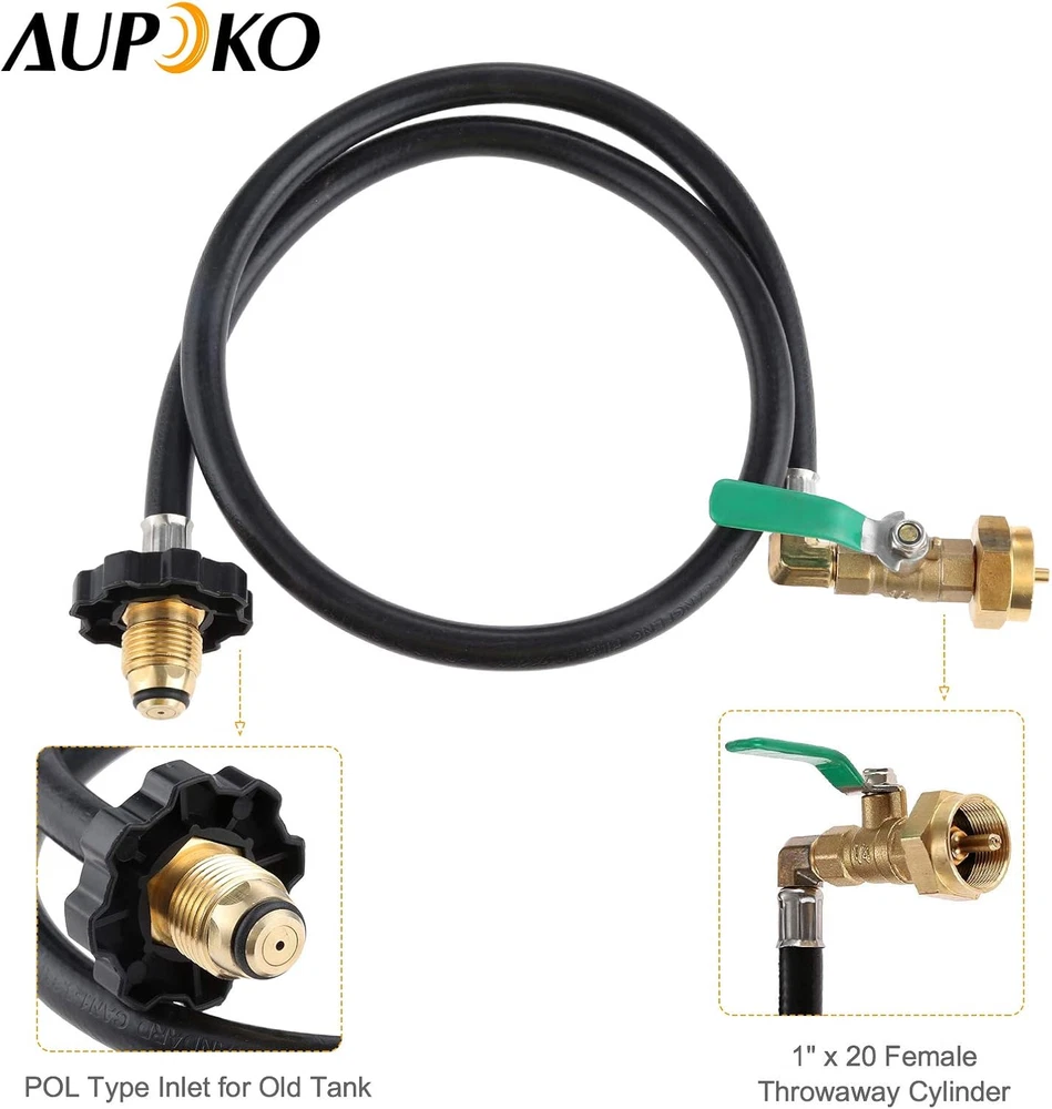 Store New Arrivals Add to Favorite View Feedback Contact Propane POL Refill Adapter Hose, 36’’ Propane Refill Hose with 1LB Tank Bottle Adapter, and On/Off Control Valve, 350PSI Rated High Pressure Propane Extension Hose Description Nominal Wall Thickness 0.5 inches Item Package Quantity 1 Batteries Required? No Maximum Pressure 350 Pound per Square Inch Color Black Material Rubber Item Weight 12.6 ounces Batteries Included? No Item Length 36 Inches Outside Diameter 1 Inches Product Dimensions 36"L x 36"W ✈ Wide Compatibility ---- This propane bottle refill adapter hose with POL Type 1LB propane refill adapter for old tank can connect 20-50Lb propane tank directly, with this adapter hose you can use it on 20Lb or larger tanks that will last you long period of time, convenient for those with larger tanks. Fits for heater, camp stove, portable grill, tabletop grill, and more. Great for camping, tailgating, heating needs or having an outdoor cookout. ✈ Premium Quality ---- This 1 pound propane tank refill adapter kit comes with quality rubber to ensure you safe leakage free operation while providing excellent weather resistance, the one pound bottle tank adapter connection of this propane refill hose is made of solid brass to ensure secure and durable for long-lasting to use. ✈ Easy To Install ---- Propane refill tool is easy and quick attachment for easier installation, can easily connect your big Cylinder to the small 1LB propane tank without move or carry. Please find the installation instruction in the following description. ✈ Note ---- If you want to connect it with your 1 pound regulator, make sure you remove the regulator on RV, if your grill connects a standard POL regulator with hose 3/8" female flare nuts, so just take off the regulator hose and the 1LB adapter on our hose then connect your RV. ✈1 Year Warranty ---- Order this 1LB propane refill adapter hose from Aupoko, we can provide 12 months free-worry warranty, should be there any question, please feel free to . Product Description Specifications Item: Propane Refill Hose with ON-Off Control Valve Length: 3 feet / 36 Inch / 91 cm Rate pressure: 350PSI Connection: POL Connector to 1" x 20 Female Throwaway Cylinder Thread Completed with ON-Off Control Valve Features This propane bottle refill adapter hose With a 36 inch Long Propane Hose and Control Valve, Replace the traditional refill adapter Using the traditional propane refill adapter you have to carry the bottle and put down which unsafe and hard to control the gas. With a High Pressure Designed Control Valve You Can Easy Open and Close the Refill Process. Easy Propane Refill Tool. Package Included 1 Pc x Propane Refill Hose with ON-Off Control Valve.(POL Type Inlet for Old Tank) This 1 pound propane tank refill adapter kit comes with quality rubber to ensure you safe leakage free operation while providing excellent weather resistance. Propane refill tool is easy and quick attachment for easier installation, can easily connect your big Cylinder to the small 1LB propane tank without move or carry. One pound propane tank on one side with on-off control valve. POL standard 20-50 lb propane tank connector is used on the other side. ABOUT US We offer the best prices around on high quality products. Our E-store includes media such as books, movies, music and games while offering electronics, toys, sporting apparel, clothing, tools, general home, garden items and more. SHIPPING We are always working hard to ensure your package arrives as soon as possible. Please understand that some factors like weather, high postal traffic, and the performance of shipping companies are outside of our control. We offer free shipping to the lower 48 states and ship within 2 business days of payment, usually sooner. We do not accept P.O. Boxes. Please provide a physical address. For shipping outside of the continental USA, we only use eBay's Global Shipping Program.The item is shipped to KY and then sent to the rest of the world. International customers are responsible for all duties and taxes. Continue to check out in order to calculate costs for shipping the item to your country. Messages regarding eBay's Global Shipping Program MUST be directed at eBay EXCLUSIVELY. RETURNS We offer a 30-Day Return Policy on items which you are not completely satisfied with. You have the option for a full-refund or an exchange of the item. No returns are available on items shipped outside of the USA. PAYMENT We accept PayPal. CONTACT US This page content is yet to come Please ad us to your favorite seller and visit again later Thank You CUSTOMER SATISFACTION We try our very best to make sure every customer is completely satisfied. If there's a problem, message us! We're happy to help. WE ACCEPT Copyright © 2021 AutoDS. | All Rights Reserved