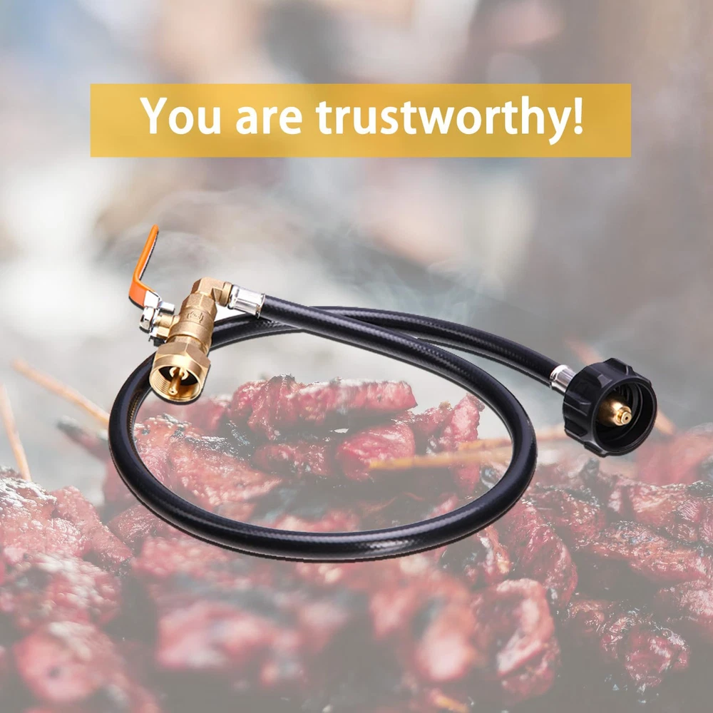 Propane Refill Adapter for 1 lb. tanks:This 3FT propane refill adapter hose comes with quality rubber to ensure you safe leakage free operation while providing excellent weather resistance,the propane refill adapter for 1 lb. tanks of this propane refill hose is made of solid brass to ensure secure and durable for long-lasting to use.The 1lb propane tank refill adapter strict quality control standards to Build and test. Propane tank refill adapter wide range of compatibility:This propane refill adapter hose can refill the 1lb camping bottle and connect 20-50Lb propane tank directly.Convenient for those with larger tanks.Fits for heater,camp stove,portable grill,tabletop grill,and more.The 1 lb propane tank refill adapter great for camping,tailgating,heating needs or having an outdoor cookout. 3FT propane refill adapter hose feature:Length - 3 feet / 36 Inch / 91 cm. Rate pressure - 350PSI.Connection - QCC1/Type1 connector to 1" x 20 female throwaway cylinder thread.350PSI high pressure propane extension hose. Propane adapter refill hose is easy and quick attachment for easier installation,1 pound propane tank refill adapter can easily connect your big cylinder to the small 1LB propane tank without move or carry,save you time and trouble. Propane refill adapter for 1 lb. tanks use advice:Over flow protection device is designed in the QCC adapter, connect the QCC1 adapter to your tank first and open gas for few seconds then connect the propane filler adapter 1 pound to your small tanks or it may not work.on propane refill adapter for 1 lb. tanks with on off control valve,if you do not want to refill,close the refill valve.The other side uses QCC1 standard 20-50 lb propane tank connector. Professional :I hope our 3FT propane refill adapter hose can solve your problem.If you need any assistance, please our 24-hour online service team. continually provides the warm shopping experience for all customers.We will show you a sincere attitude and satisfactory solution.