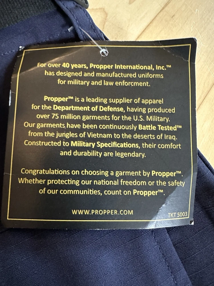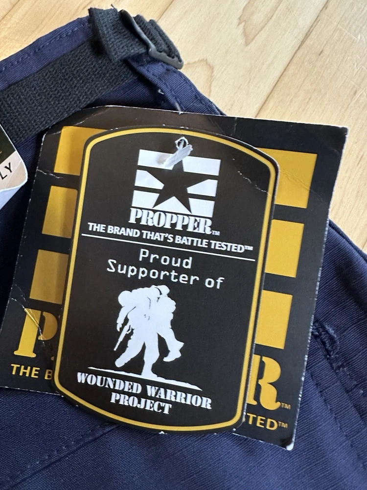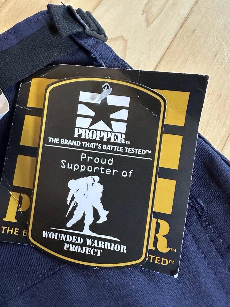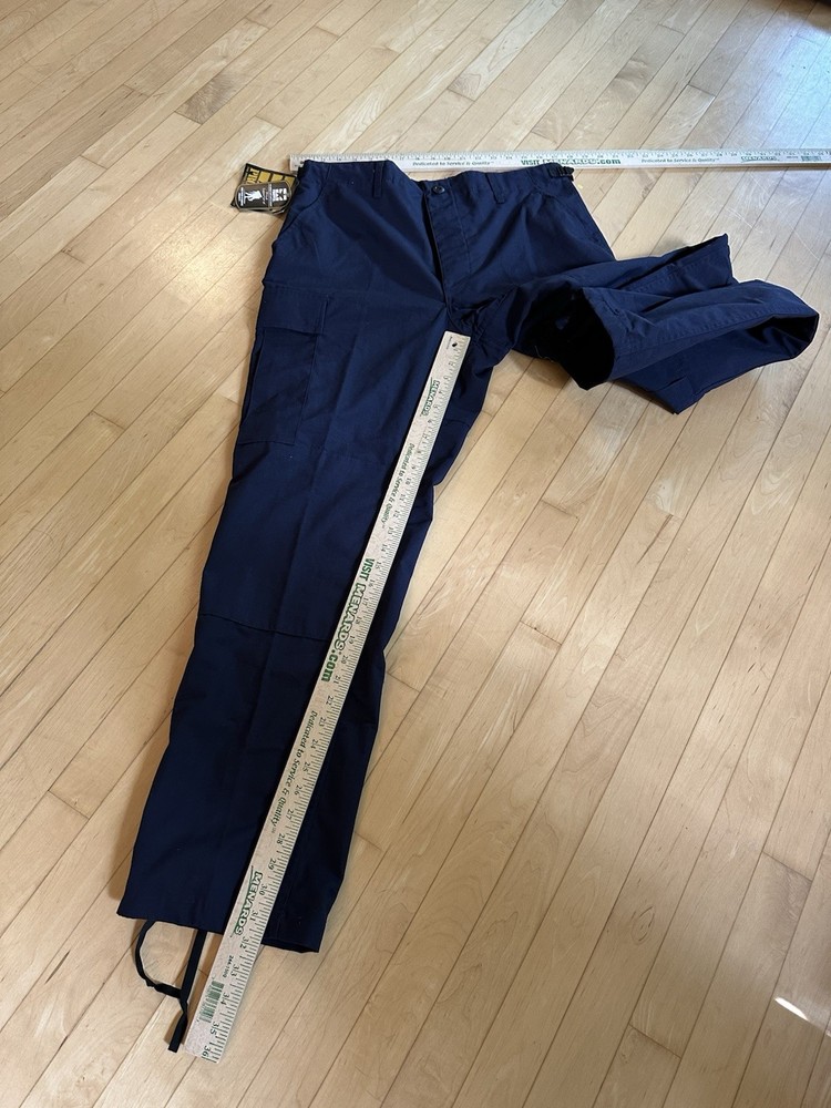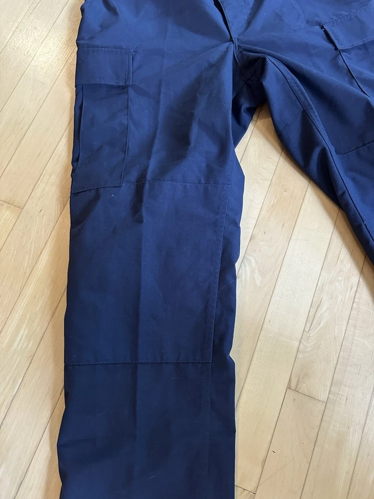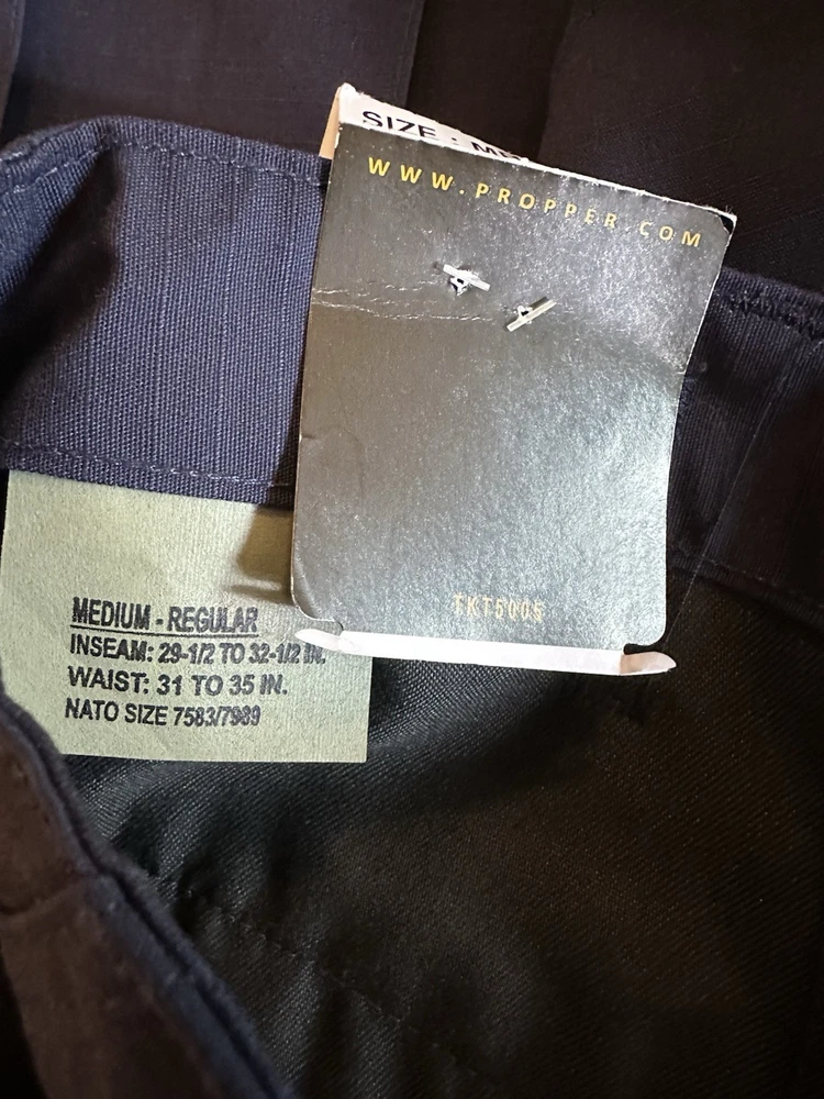 The Propper F520138405 is a dark navy blue BDU Trouser with a button fly and camouflage pattern. Made from a blend of polyester, cotton, and cotton blend materials, this medium regular fit pants feature a straight leg style and cargo pockets. Perfect for casual or business occasions, these machine washable pants are designed by the brand PROPPER and have a waist size of 32 inches. The versatile color and fabric make them suitable for all seasons. 2002