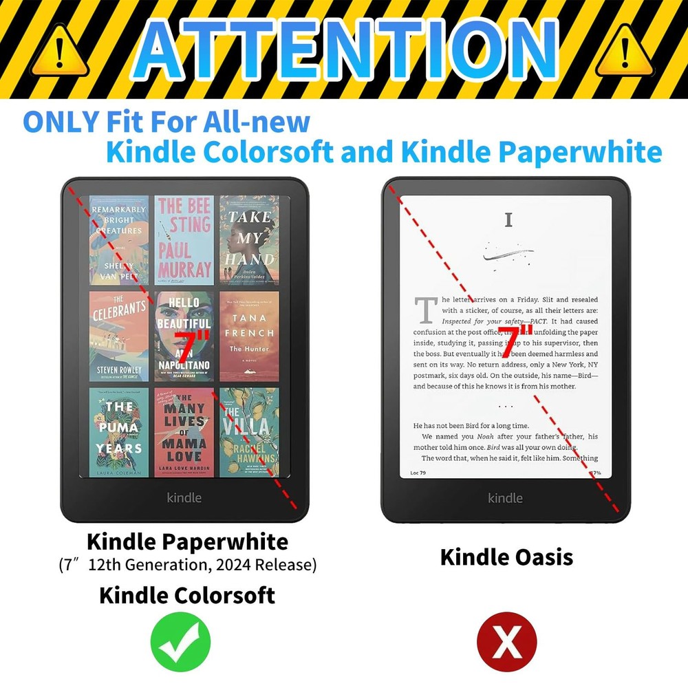 ❤️PERFECT COMPATIBILITY - Designed exclusively case for 7" all-new Kindle Paperwhite, Kindle Paperwhite Signature Edition (12th Generation, 2024 Release), and Kindle Colorsoft Signature Edition (1st Generation, 2024 Release) ONLY, will not fit any other kindle devices ❤️PREMIUM MATERIAL - case for Kindle Paperwhite 12th Gen 2024 (7") & Kindle Colorsoft Signature Edition made of premium PU leather with delicate-texture to prevent scratches, offers a soft flexible TPU back cover all around that protects from damage. The protective material feels comfortable and gives extra durability ❤️STABLE STAND & ADJUSTABLE ANGLE - for All-new 7" Kindle Paperwhite 12th Gen 2024 & Kindle Colorsoft Signature Edition 2024 folding flip shell doubles as a kickstand allows you to adjust multiple horizontal stand angles securely. The textured, anti-slip interior lining adds an additional stability. Convenient standing positions for working, writing or watching videos ❤️FASHION COMPACT AND PORTABLE PERFECT FOR ON AND GO - Slim lightweight design maintains the elegant look as well as minimum bulk. Colorful painting case protects with style and make your Kindle Reader looking more beautiful, stylish and nice gift for you, friends, family ❤️FULL ACCESS TO ALL FEATUTRES - for 7" All-New Kindle Paperwhite (12th Generation, 2024) and Kindle Colorsoft Signature Edition case with auto Wake/Sleep Get, instantly respond and save battery life. High-Precision Cutouts for a form fit and quick access to all features (cameras, speaker, ports and buttons)
