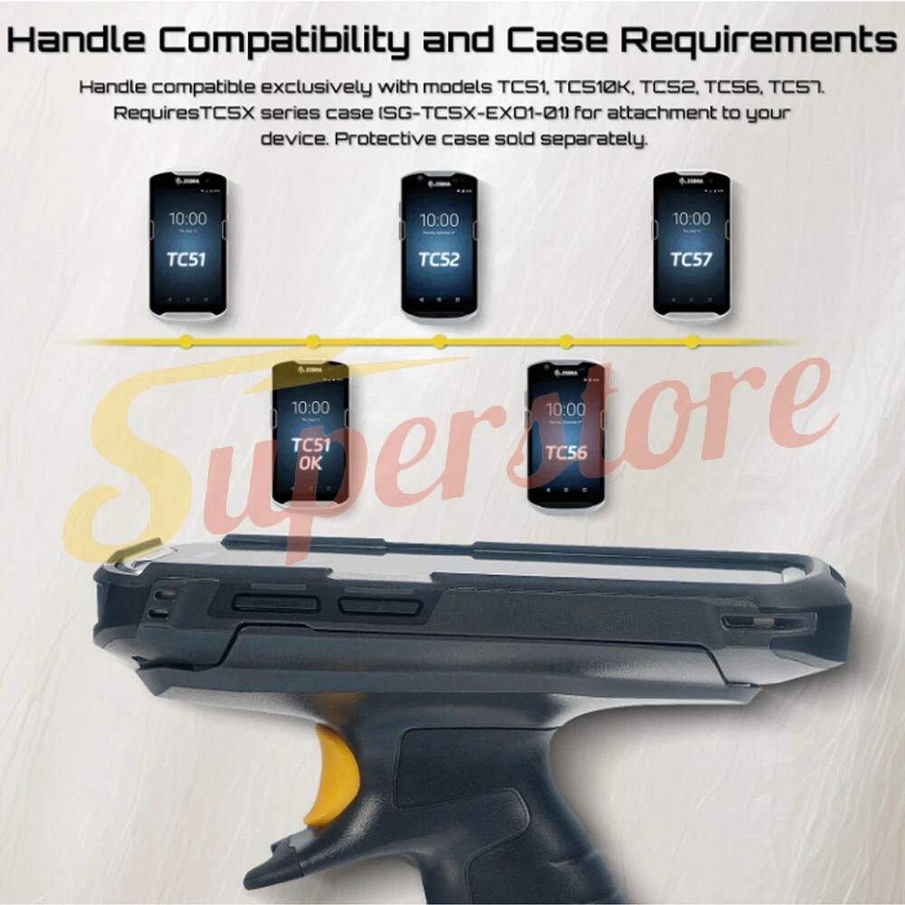 TC51 TC52 TC56 TC57 TC510K Case with Hand Strap - Protective & Ergonomic for Zebra Handheld Barcode Scanners SG-TC5X-EXO1-01 SG-TC5X-EXONHS-01 About this item Custom-Fit Durability: Engineered for compatibility with TC51, TC52, TC56, TC57, and TC510K devices, this rugged boot case (SG-TC5X-EXO1-01) ensures maximum protection with a snug, secure fit for your handheld barcode scanner. Ergonomic Hand Strap: Offers a comfortable grip for extended use, reducing fatigue and enhancing device handling, ensuring your scanner is always ready for action. The non-slip hand strap boosts security, making it an essential accessory for Zebra TC51 TC52 TC56 TC57 TC510K device. Enhanced Device Safety: Robust construction guards against drops and impacts. Coupled with the (SG-TC5X-EXONHS-01) hand strap, it provides comprehensive protection and additional security for your handheld barcode scanner. Versatile & User-Friendly: This case allows for the simple addition of trigger handles (sold separately), enhancing the practicality of your TC5X device for daily tasks, significantly boosting work efficiency. Sleek Design in Multiple Colors: Available in 8 vibrant colors, this protective case cover offers personalization along with its professional look, meeting both the style and functional needs of your workspace. Trigger Handle for Zebra Symbol TC51 TC510K TC52 TC56 TC57 Handheld Barcode Scanner Mobile Computer - P/N: TRG-TC51-SNP1-01 (Requires Protective Case for Use; Case PN: SG-TC5X-EXO1/EXONHS-01) About this item Compatibility Requirement: Important - TC5X series devices (TC51, TC510K, TC52, TC56, TC57) require a protective case (SG-TC5X-EXO1-01 or SG-TC5X-EXONHS-01) for this handle to attach. Lightweight and Comfortable Trigger: Each press of the trigger is exceptionally light and comfortable, ensuring efficiency and comfort during use. This feature greatly enhances your experience, making it ideal for extended scanning tasks. Ergonomic Design for Enhanced Comfort: Ergonomically crafted to fit the natural curve of your hand, this handle ensures a comfortable, secure grip, boosting scanning speed and reducing fatigue during prolonged use. Extended Use Compatibility: This handle is designed for a flawless fit with the TC5X series holster (SG-TC51-HLSTR1-01). Please note, the holster is sold separately. Included in Your Purchase: You'll receive a single trigger handle in the package. Please be aware, the protective case, holster, and device are sold separately.