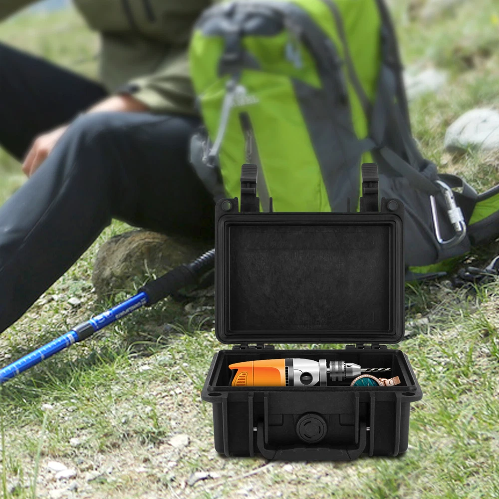 Specification Material: PP, Alloy, 304 Stainless Steel, Soft Rubber Color: Black Shape: Rectangular Process: Injection Molding Assembly Required: No Number of Lock Holes: 2 Waterproof Rating: IP67 Temperature Resistance Range: -40~90°C/-40~194°F Lock Hole Diameter: 8mm/0.31in Recommended Combination Lock Diameter: ≤6mm/0.24in Wall Thickness: 6mm/0.24in Capacity: 1.8L/1.63Qt Product Size: 21.6*18*10.3cm/8.50*7.09*4.06 in Package Size: 22*18*10.3cm/8.66*7.09*4.06 in Net Weight: 0.8kg/1.76 lbs Gross Weight: 0.9kg/1.98 lbs Package Included 1* Protective Dry Case Have a nice day~ Description With its excellent protection performance, high customization flexibility, and convenient carrying design, the protective dry case is an advanced protection solution designed to protect all kinds of precision electronic equipment and important instruments. You can use it in a wide range of applications such as military, medical, outdoor adventure, movie and television production, and many other fields. Key Features Rugged and Durable: The 6mm high-strength PP and alloy materials and injection molding process make it resistant to pressure and corrosion and able to withstand extreme temperatures (-40 to 194°F) to protect the equipment. Waterproof & Dustproof: IP67-rated waterproof and dustproof design ensures that the equipment inside the case remains dry and clean in harsh weather or sandy environments. Effective Shock Absorption: It has a built-in shock-absorbing sponge, which can effectively absorb the vibration during transportation and reduce the risk of damage. Automatic Air Pressure Balancing: When the air pressure inside and outside the case is not consistent, you can press the automatic air pressure balancing valve to easily open the case and keep it dry. Safe and Reliable: Thickened latches connect the case tightly, preventing self-opening on impact or unauthorized opening, and guaranteeing the safety of the equipment. In addition, there are two locking holes (diameter: 0.31in) designed on the case body, convenient for you to add a combination lock by yourself (not included). Easy to Carry: Suitable weight (1.76lbs) and size (8.50*7.09*4.06 ) make it easy for you to carry it around, suitable for various transportation scenarios. You can even put it in your backpack. Thoughtful Design: The already cut square sponge is convenient for you to cut or tear off the sponge according to the specific size of the placed object to meet the storage needs of different equipment. Large Capacity: The 1.63-quart capacity allows you to store multiple devices at the same time, relieving you of the hassle of carrying multiple cases. Worry-free Cleaning: A smooth surface and simple structure make daily cleaning simple and fast. Customer Service: We aim to provide quality products and services. If you have any problems, please feel free to contact us. We will reply and solve the problem for you as soon as possible. Details Ergonomic Soft Rubber Handle: It provides a better and more comfortable grip for you to carry and move the case easily. Seal Ring: The case is inlaid with a seal ring to ensure better drying results and equipment safety. 304 Stainless Steel Chain: It can better connect the upper and lower lids, providing easier opening and closing and long-lasting usability. Smooth Edges: The smooth and burr-free edges enhance the beauty of the product and better care for your skin when cleaning it. How to Customize Sponge Size Inside the box is a cut square sponge, gently press the item on the sponge to form an outline. Gently peel the sponge by hand along the contours of the press. Now you can start DIY! Application It is suitable for storing cameras, drones, recording devices, radios, sports cameras, compact projectors, and audio devices, as well as small parts, wires, memory cards, batteries, wallets, cell phones, keys, and other accessories(all excluded), that are widely used in various fields such as instrumentation, gauges, security, electronics, electric power, communications, aerospace, chemical industry, nuclear power, exploration, scientific research, transportation, photography, troopers, unmanned aerial vehicles,and expedition, and can be applied in camping, scuba diving, hiking, kayaking, rowing or mountaineering. Specification Material: PP, Alloy, 304 Stainless Steel, Soft Rubber Color: Black Shape: Rectangular Process: Injection Molding Assembly Required: No Number of Lock Holes: 2 Waterproof Rating: IP67 Temperature Resistance Range: -40~90°C/-40~194°F Lock Hole Diameter: 8mm/0.31in Recommended Combination Lock Diameter: ≤6mm/0.24in Wall Thickness: 6mm/0.24in Capacity: 1.8L/1.63Qt Product Size: 21.6*18*10.3cm/8.50*7.09*4.06 in Package Size: 22*18*10.3cm/8.66*7.09*4.06 in Net Weight: 0.8kg/1.76 lbs Gross Weight: 0.9kg/1.98 lbs Package Included 1* Protective Dry Case Notes Please check the style and size before purchasing. Please note that the case does not include a combination lock, if you need it, please purchase and install it yourself. Please allow the slight color difference caused by the shooting light and 1-3cm error due to manual measurement and make sure you do not mind before ordering. Payment Delivery details Terms of sales About us Contact us Payment We accept ebay payment 。 Fees such as import duties, taxes are not included in the item price or shipping costs. These charges are the buyer's responsibility. Delivery details Shipping: 2-9 working days to: USA Terms of sales We maintain high standards of excellence and strive for hundred percent customer satisfaction. Feedback is very important to us. We hope that you contact us immediately before you give neutral or negative feedback, so that we can address your concerns. It is impossible to address issues if we do not know about them! About us Your satis faction is our ultimate goal. We work hard to earn your trust and future business. Our certified technicians have tested each item before shipping. The unit comes with 1 year lim