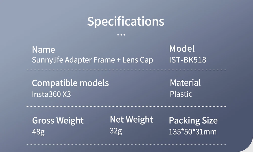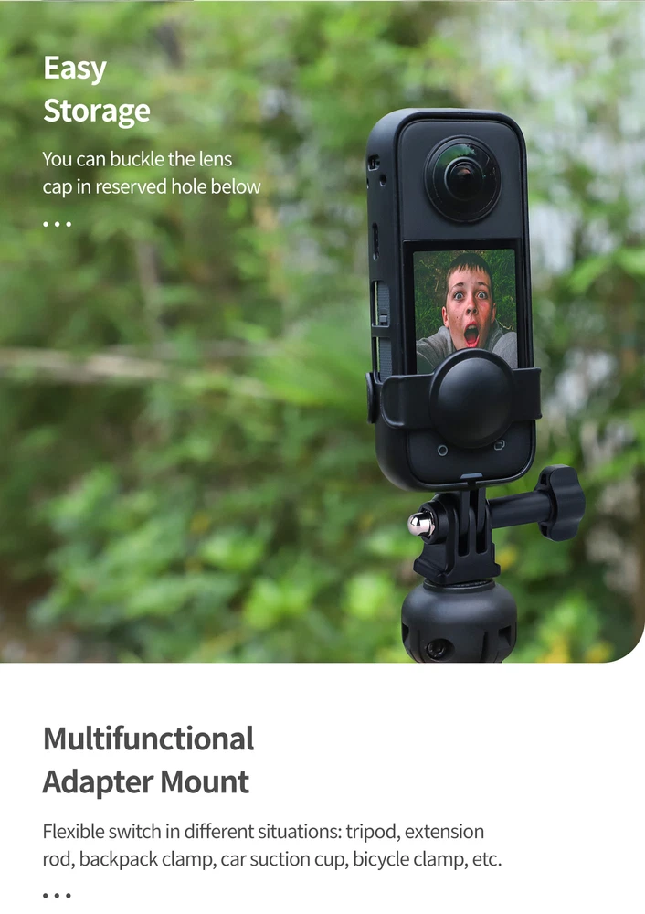 Product Description Features: 1. Customized. It is specially designed for Insta360 X3. Panoramic shooting will not be included in the picture, and the picture will be completely presented. 2. Precise opening, both positive and negative. The protection frame is reserved with functional holes for power keys, microphones, speakers, etc., which can not only receive sound without damage, but also support quick installation on the front and back. 3. Equipped with lens protection cover, double protection and safe storage. 4. The angle can be adjusted to meet different shooting needs. 5.1/4 Standard adapter, which can be used with tripod, extension rod, backpack clip, vehicle suction cup, bicycle clip, etc Specifications: Applicable model: for Insta360 X3 Material: Plastic Net weight: 32g Package include: 1* Plastic Frame Shipping Returns Contact Us Payment 1. Items sent from US warehouse. 2. Receiving time = Processing time + Shipping time. 3. Pro cessing Time: Around 1-2 business Days. 4. Shipping Time: 3-5 business day. it may have a little delay during some holiday (such as Christmas), any problem, please feel free to contact. 1. 30 days warranty from the purchased date. Please contact us via email before returning the defective item. 2. Our warranty does not extended to any product that are physically damaged or that are not under normal operating conditions as result of misuse or improper installation on the buyer/user's part. 3. Return items should include the original packaging and all accessories. buyers MUST contact us for the returning address. 4. In all cases, buyers pay shipping fees at their own cost to return products for exchange or refund. We will be responsible for the postage of replacements. Refund will be made upon receipt of the returned item. If you have any question, please e-mail us immediately, we will reply you as quickly as possible. We care about our valued customers, and will always try to help you. We accept all verified payment from eBay. Shipping 1. Items sent from US warehouse. 2. Receiving time = Processing time + Shipping time. 3. Pro cessing Time: Around 1-2 business Days. 4. Shipping Time: 3-5 business day. it may have a little delay during some holiday (such as Christmas), any problem, please feel free to contact. Returns 1. 30 days warranty from the purchased date. Please contact us via email before returning the defective item. 2. Our warranty does not extended to any product that are physically damaged or that are not under normal operating conditions as result of misuse or improper installation on the buyer/user's part. 3. Return items should include the original packaging and all accessories. buyers MUST contact us for the returning address. 4. In all cases, buyers pay shipping fees at their own cost to return products for exchange or refund. We will be responsible for the postage of replacements. Refund will be made upon receipt of the returned item. Contact Us If you have any question, please e-mail us immediately, we will reply you as quickly as possible. We care about our valued customers, and will always try to help you. Payment We accept all verified payment from eBay. You may also like 2Pcs Dryer Roller Wheel Drum Support Kit Replacement Part For Maytag Whirlpool 18.91 USD 3.99 USD 8PCS Hair Clipper Cutting Guide Combs With Metal Clip Replacement Tools For WAHL 13.38 USD 3.99 USD Leather Cushion Face Cover Eye Foam Mask Pad Anti-Sweat For Oculus Quest 2 VR 15.94 USD 18 Grids Watch Tiny Parts Storage Box Plastic Repair Acc Container + Dust Cover 11.75 USD Metal Bead Eyeglass Chain Glasses Strap Holder Lanyard Sunglasses Non-slip 8.93 USD Soft Rubber Dust Blower Air Pump Cleaner Watch & Camera PCB Repair Cleaning Tool 4.61 USD 3.99 USD powered by