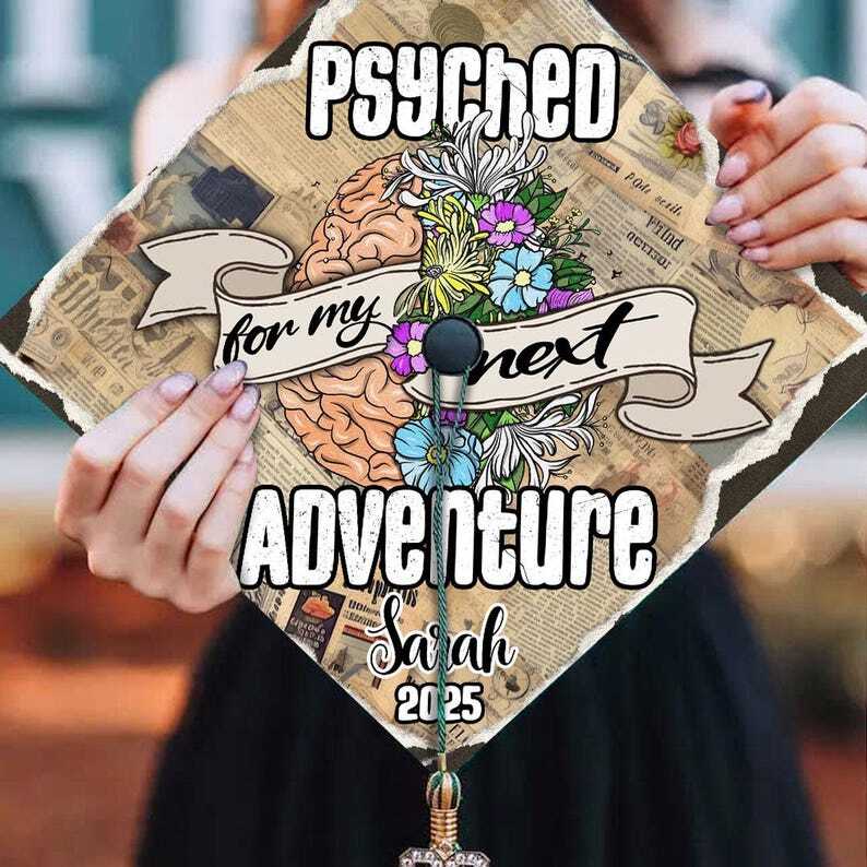 Celebrate your achievement and embark on your next chapter with a personalized touch. This unique Psychology Graduation Cap Topper is a vibrant, multi-colored acrylic piece that's both handmade and unisex, perfect for anyone proud to don their cap. It features the phrase "Psyched For My Next Adventure," ensuring that you leave your ceremony with a statement of excitement and anticipation. Crafted with care in Vietnam, the topper can be easily personalized by entering your name in the provided instructions. Adding a personal touch has never been easier, making your graduation day even more memorable. Please reach out via Ebay message if you'd like to change any text for a bespoke finish. Product Details: - Material: Acrylic - 9.5 x 9.5 inches printed Acrylic topper - Double-sided adhesive to attach to your cap - It's easy to apply to your graduation cap up to minutes before graduation.