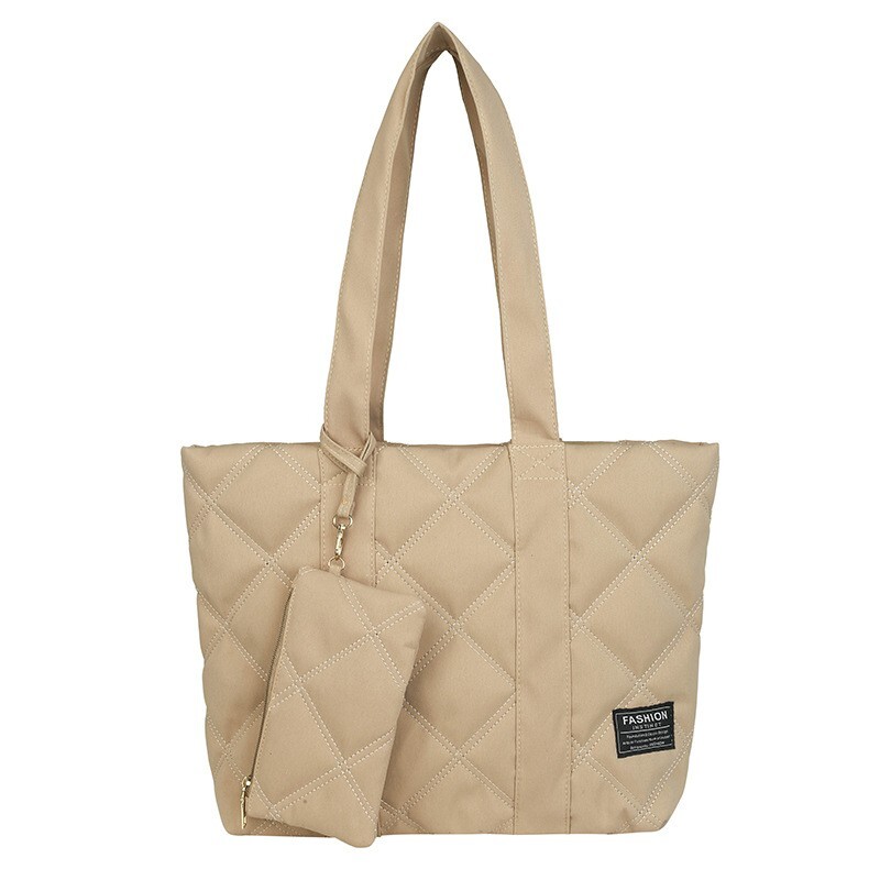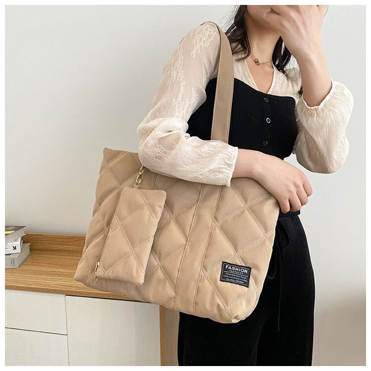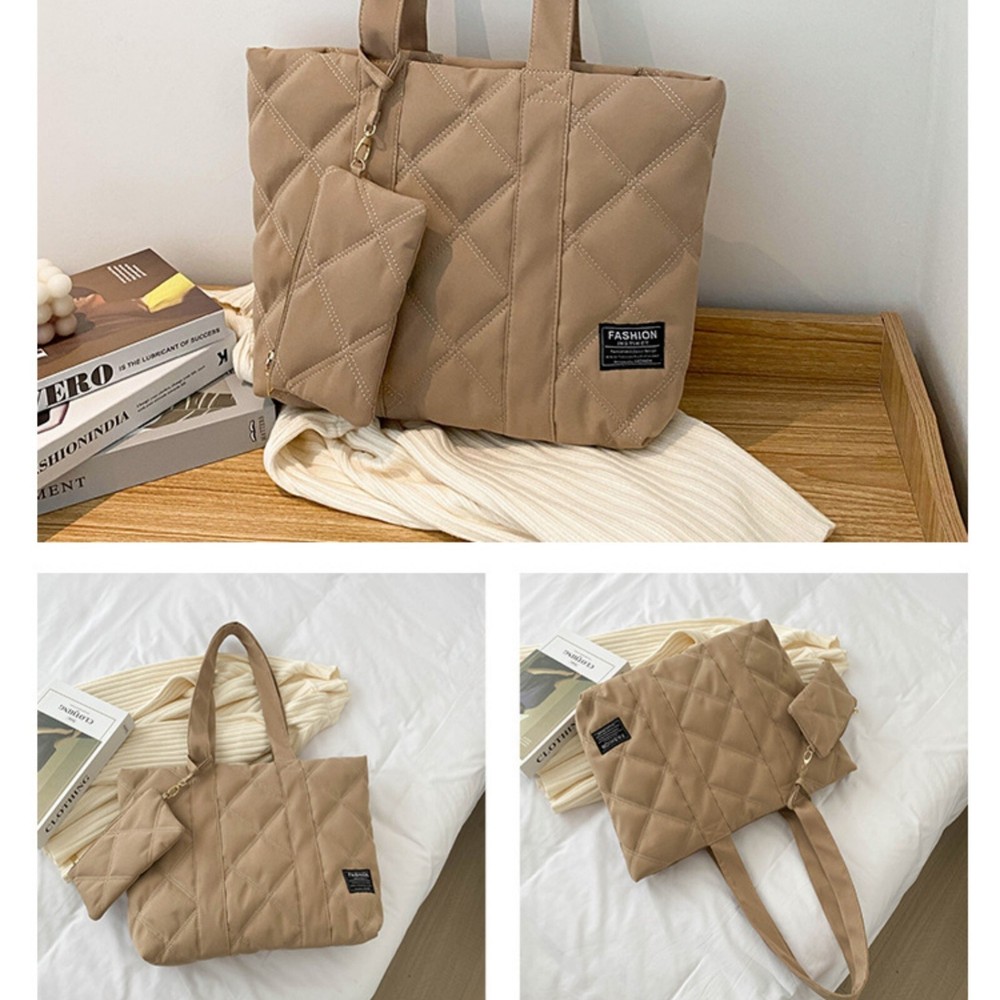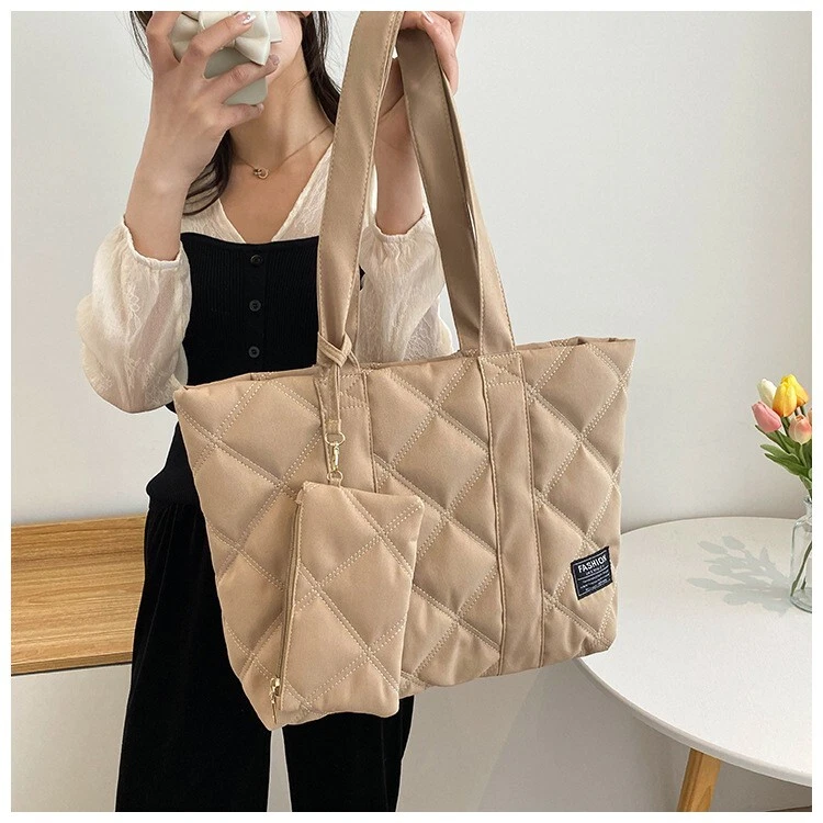 Package: 1*Oxford cloth tote bag 1*Oxford cloth wallet Feature: Capacity : Ultra lightweight yet substantial, ideal for carrying daily supplies. The stylish quilted and puffy tote design can match any outfit. Zipper closure prevents your stuff from getting lost Versatile Tote : The women's tote handbag serves multiple purposes, functioning as a work bag, handbag, gym bag, casual shoulder bag, or travel bag. Suitable for various occasions such as work, travel, study, shopping, and gym activities Stylish and Functional : Combining style with functionality, this puffy tote bags for women is both practical and stylish, elevates your look while meeting all your practical needs. Stay organized and prepared with this versatile and chic bag Specification: Matericl:Oxford cloth Weight:0.28kg Type:Shoulder bag Note: *Due to the light and screen setting difference, the color may be slightly different from the pictures. *Please allow slight dimension difference due to manual measurement. *Please feel free to contact us with any problem. *Cell phones, eyeglasses, cosmetics, flowers, umbrellas, and other accessories pictured are for display purposes only and are not included in the products sold.