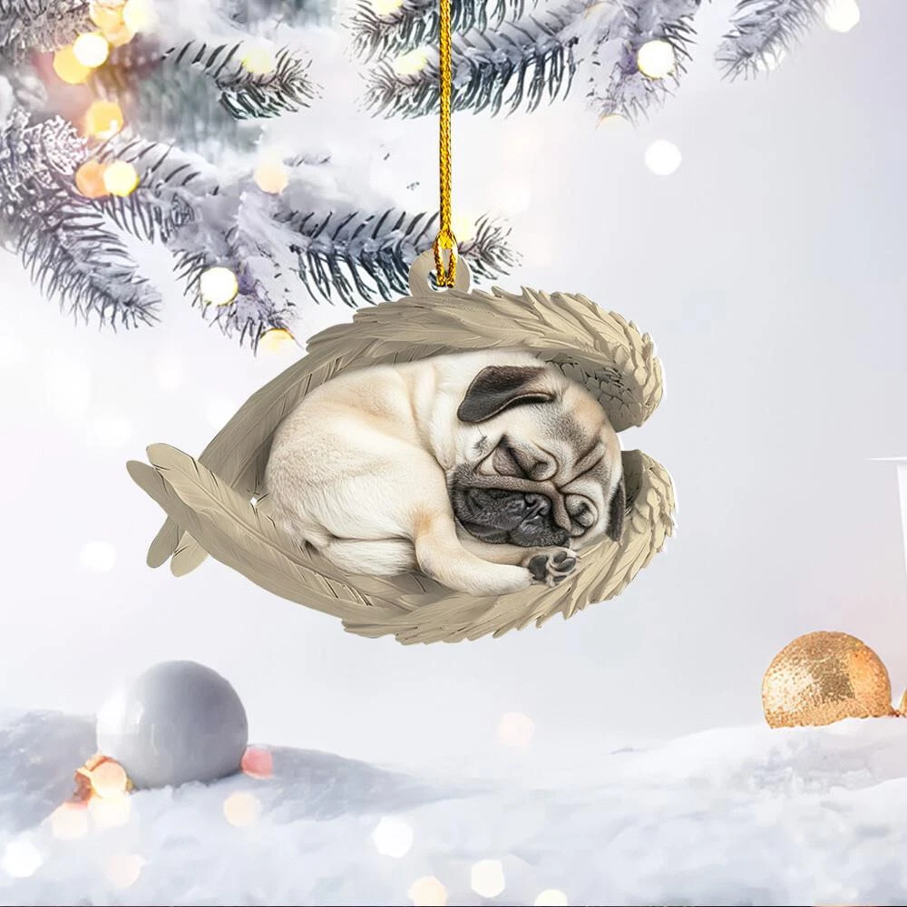 Pug Dog Sleeping Angel Wings Car Ornament Pug Dog Christmas Ornament Gift