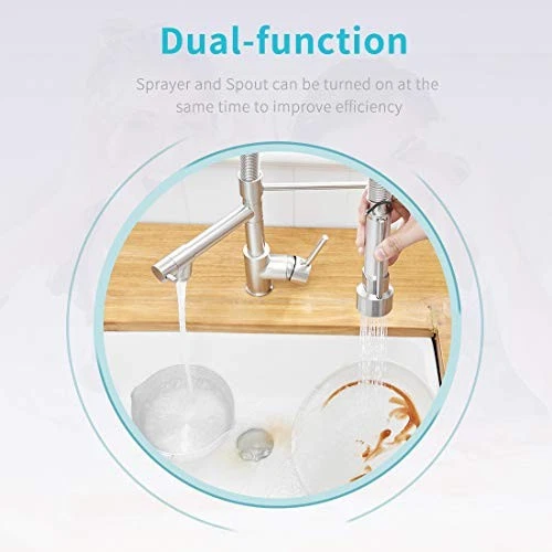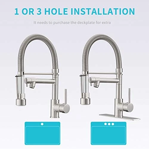 Return Policy Fast Delivery Trusted seller Pull Down Kitchen Faucet with Lock Sprayer,Single Handle Spring Stainless Steel Kitchen Sink Faucet Brushed Nickel Product Description 【BEST CHOICE】Compact 17.7-inch height fits beneath almost any home kitchen cabinet . Single handle control water temperature and flow volume easily,high arc 360 degree swivel spout supply full range washing access 【PRACTICAL DESIGN】 The lock and bracket design provides more convenience and safety. When you wash the dirty dishes, you do not have to hold the bar constantly to use it. You can use the lock to open the spray and support the spray with the bracket to release your hands. Tfore, you can wash the dish cleaner with your hands. Even t is a large plate, handing the plate with your hands will be much safer. 【Providing Quality and Design to the Multi-Family Community】The kitchen faucets with pull down sprayer and a separate pot filler spout, they can be turned on at the same time. Tfore, when your lover or roommate prepare dinner or wash dishes with one sprayer, you can assist them or do what you want to do with another one. It can save your time and may enhance intimacy with each other. 【NEW COMPACT SPRING DESIGN】Compared with normal spring,this design is more flexible,no need of much effort to stretch the spring,you can pull down it to the location you want easily,this can bring much more convenience to you and your family 【EASY TO INSTALL】 It included all the necessary hardware and washers to complete the install in under 30 minutes by yourself instead of plumber.If it is 3 holes in your sink,you can buy a escutcheon for extra to make faucet beautiful. Shipping Returns Payment Shipping Shipping is FREE to all addresses other than APO/PO boxes in the lower 48 states. All our stock ships from US-based warehouses. Shipped via USPS or UPS (depending on location and package weight) Unless stated otherwise, all orders will ship within 24-72 hours of your payment being processed. Check our feedback to see the great reviews of FAST shipping we offer. Returns Seller does not accept returns Payment We currently accept payment via eBay managed payments only. Once payment is cleared, we will dispatch your shipment within 1-3 business days. Please refer to the "Shipping" tab for more information regarding shipping speed to your destination.