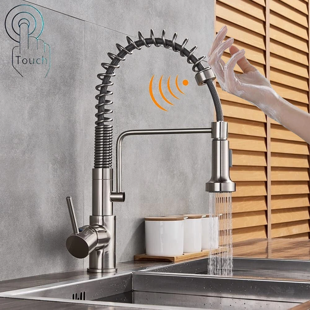 Product Description Function: Touch Sensor Kitchen Sink Faucet Feature :Swivel Spout,Pull-Out Finish: Matte Black/ Brushed Nickel Number of Handles: Single Handle Installation Holes: One Holes Faucet Total Height: As picture shows Valve Type: Ceramic Valve Faucet Body Material: Stainless Steel Faucet Spout Material: Brass Faucet Handle Material: Brass Water Feature:Mix Hot and Cold Water Pressures:Minimum 0.5 bar, 1.0 bar recommended Water Flow: 1.8 GPM 5 Years warranty Safety first - all bathroom faucet and commercial faucets designed for drinking water use are fully compliant with the latest federal and state lead-free standards Easy to install Swivel Spout can make the faucet fit for double bowl kitchen sink Payment Only PayPal is Accepted. Immediately payment is required after the Winning Bid or Buy it Now Shipping Usually shipment can be arranged within 1 working days after receiving payment. We usually ship by Fedex ,UPS,China Post. Usually the delivery time is 7-20 days. Remote areas will needs extra shipping cost and more time. We ship according to the address on PayPal. (After you make the payment, PayPal will send us an email automatically, informing us the payment and shipping address.) So please make sure your address on PayPal is the right one.We do not ship to PO.BOX address Mail transit time is best estimated, but not guaranteed. As transit time varies. Contact us Shipping damage has to be reported within 7 business days of which the product was delivered. If you have any questions, please be free to contact with us by eBay massage,we will answer your questions ASAP. Feedback I describe items as well as I can. If I have missed something, please let me know. Please e-mail me before leaving feedback if you are unhappy with your item, so we can work it out. International Buyers – Please Note: Import duties, taxes, and charges are not included in the item price or shipping cost.