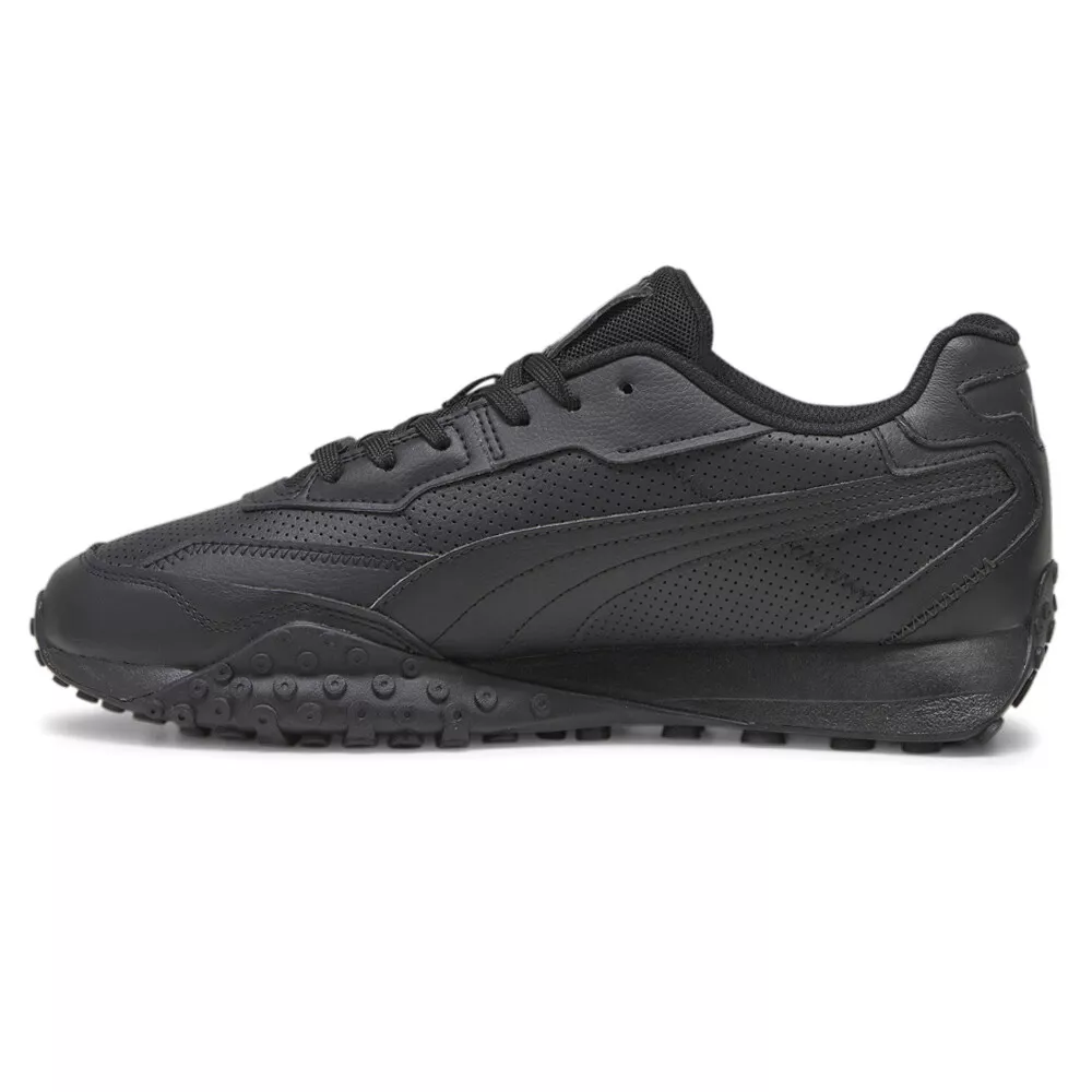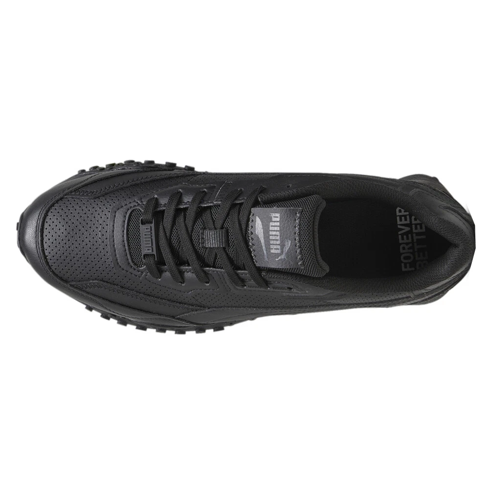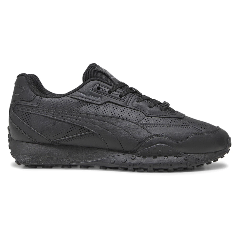 Blktop Rider Leather Lace Up Sneakers Product Details Perforated synthetic base with leather overlays Leather toe and heel overlays Synthetic mudguard and heel underlay EVA midsole Rubber outsole Meet the newest member of the PUMA Rider family, the Blktop Rider, in which heritage colors and materials meet modern design elements in this classic, new silhouette. This '80s era sneaker features a perforated synthetic base with leather overlays Additional Details Color: Black Occasion: Casual Gender: Mens Age: Adult Brand: Puma