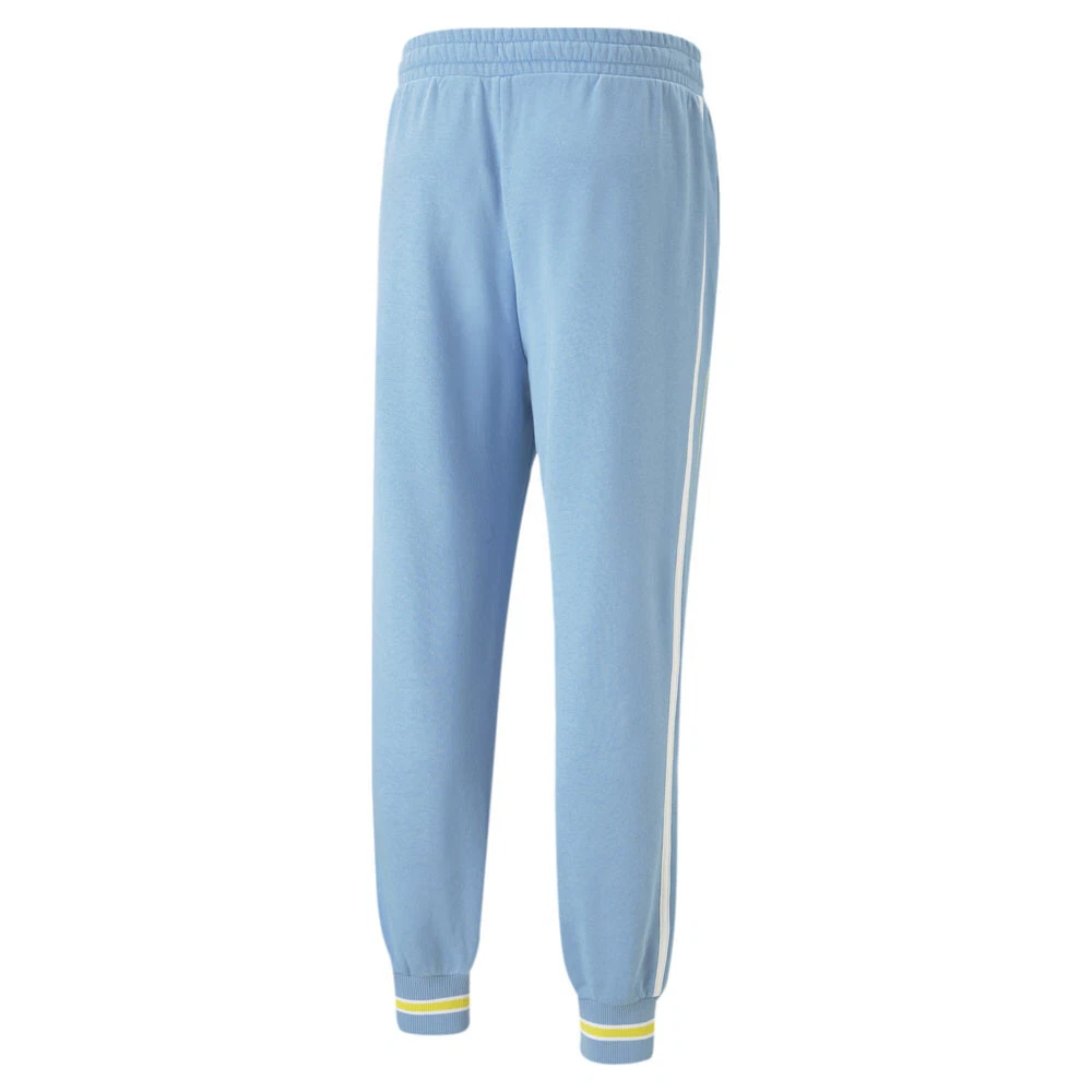 BMW MMS Statement Sweatpants Product Details Relaxed fit Side pockets Ribbed cuffs 68% cotton, 32% polyester These eye-catching joggers are one of the statement pieces from the collaboration. Do you dare break the mould? Additional Details Color: Blue Occasion: Casual Gender: Mens Age: Adult Brand: Puma