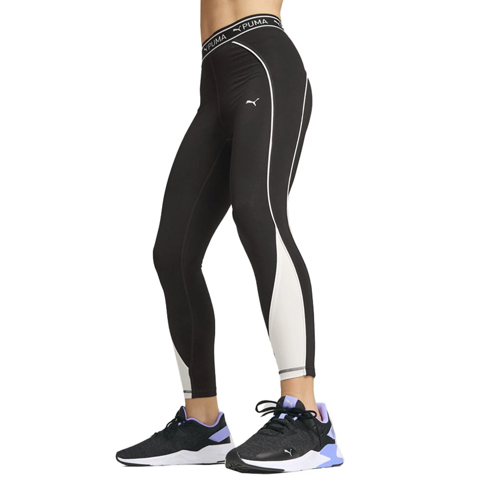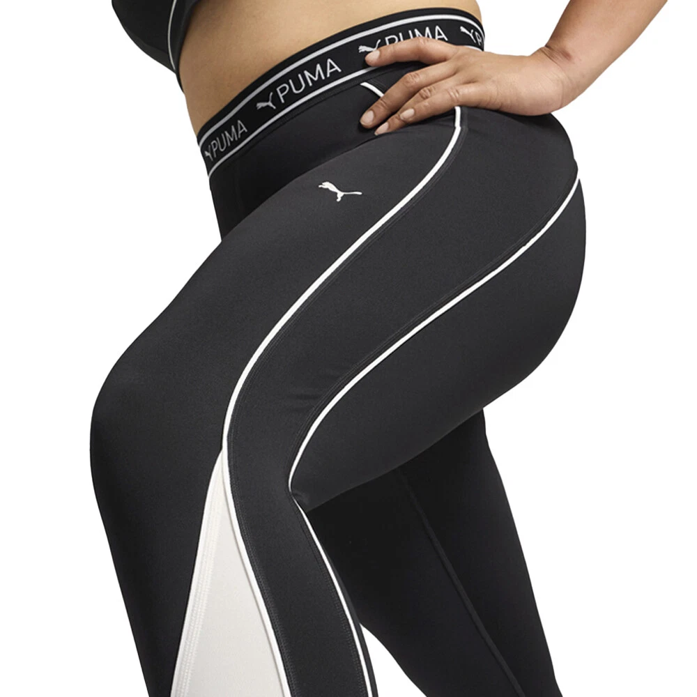 Fit Train Strong 7/8 Athletic Leggings Product Details High cut elastic waistband Forward-facing seams 7/8 Length Duochrome colourblock 89% polyester, 11% elastane Dial up your workout with these colourblock tights. We've taken this regular silhouette and added some aesthetic details to it to give you the confidence we all need when we hit the gym. Get ready to look and feel your best in this pair of sweat-wicking tights. Additional Details Color: Black Occasion: Casual Gender: Womens Age: Adult Brand: Puma
