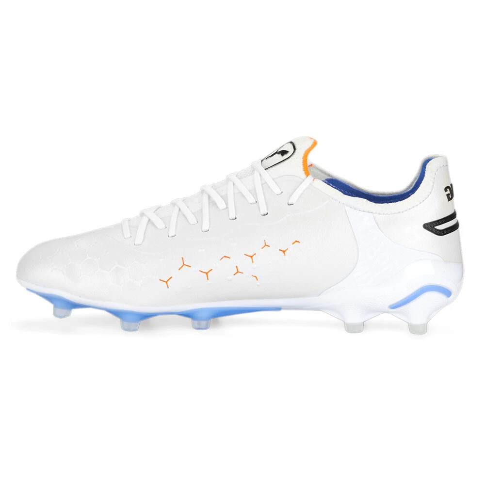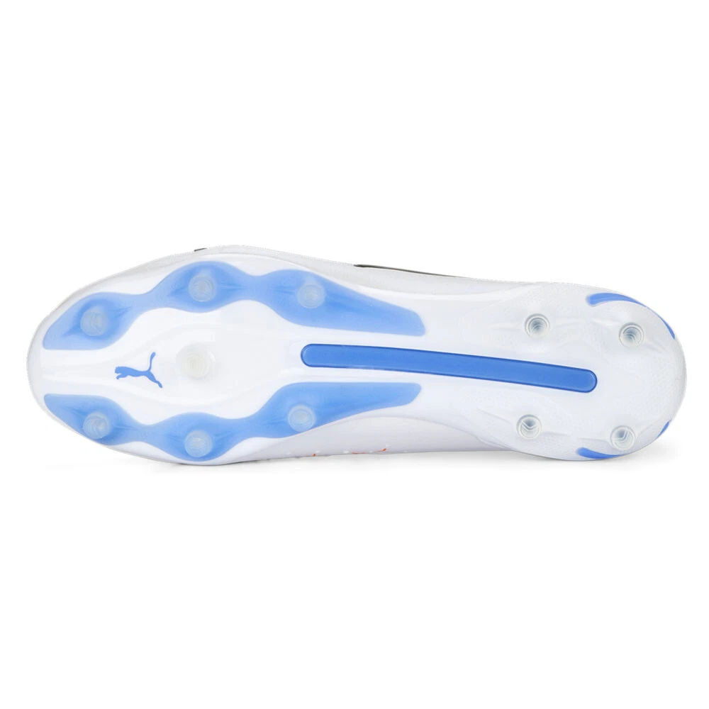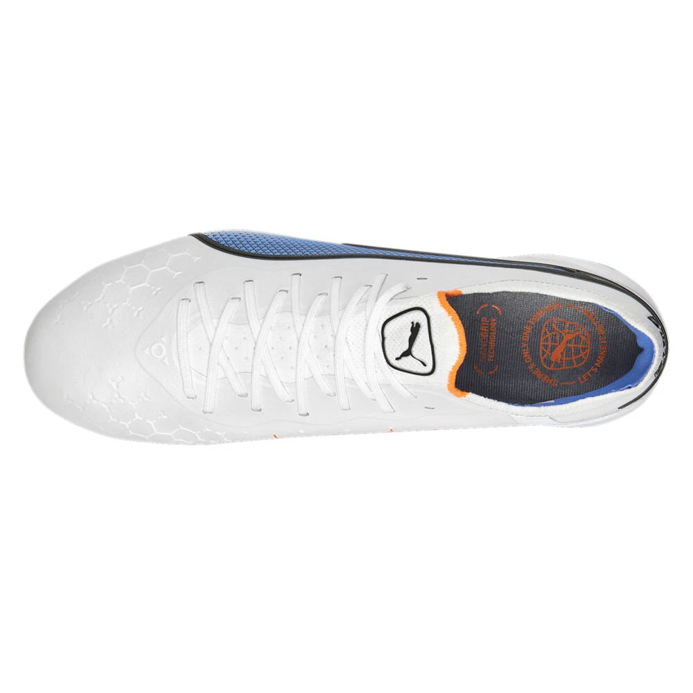 King Ultimate Firm Ground/Artificial Ground Outsole Soccer Cleats Product Details Lightweight outsole with external heel counter, integrated stability spine, and conical studs FG/AG: Firm ground/Artificial ground outsole Suitable for use on both firm natural surfaces and artificial grass (4G) PUMA Formstrip on the lateral vamp Control never felt this comfortable. An icon that spans generations, the KING is back with bold design upgrades and innovative materials that work better – for the player and for the planet. Like the all-new K-BETTER upper material, made with recycled content to reduce environmental impact while improving the signature touch, comfort, and stretch resistance. The new lightweight outsole features an external heel counter, integrated stability spine, and conical studs, so you have as much control over your movement as you do over the ball. Additional Details Color: White Occasion: Casual Gender: Mens Age: Adult Brand: Puma