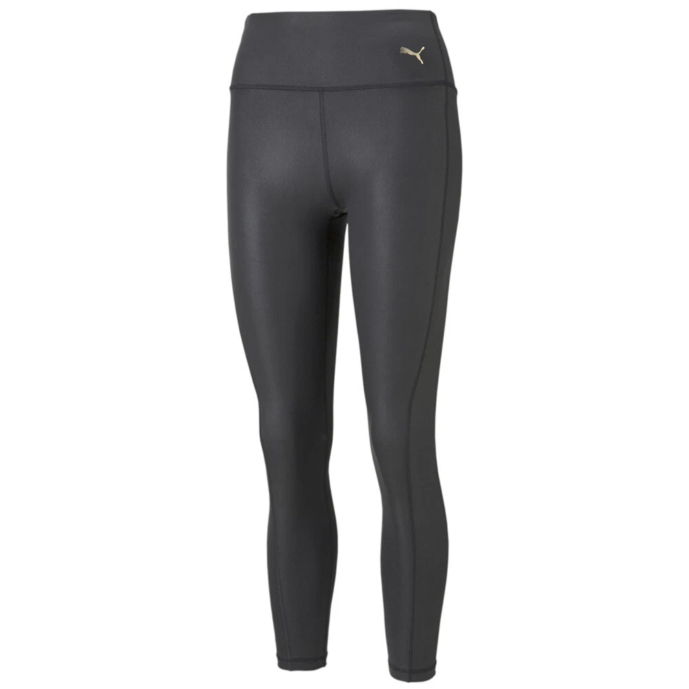 Moto High Waist 7/8 Athletic Leggings Product Details Moisture wicking 77% polyester, 23% elastane PUMA cat logo on waistband Chase intensity in the Moto Pack from PUMA. It’s made for those with a try-anything attitude and the style to match. Dark, matte colors and edgy, leather-inspired, texture print details compliment your inner confidence while high-performance tech gives you the backup you need to keep up. Additional Details Color: Black Occasion: Casual Gender: Womens Age: Adult Brand: Puma