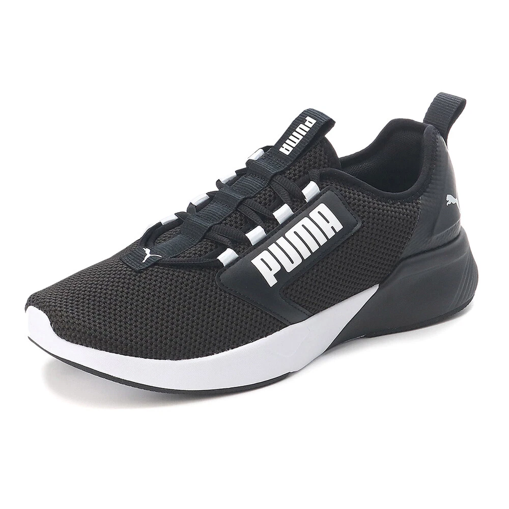 Retaliate Tongue Running Shoes Product Details Mesh upper Lace up closure CMEVA midsole Rubber outsole Meet speed with a vengeance: the new Retaliate gives a fresh look to our Contemporary Essentials line, with bold branding across the midfoot and a dynamic material mix alongside a plethora of high-tech design features to help you go further, faster. A lightweight CMEVA midsole and a cushioning SoftFoam sockliner enable a high-energy stride with optimum impact absorption, while flatlock stitching at the collar minimises friction to give you the comfiest ride possible. Additional Details Color: Black Occasion: Casual Gender: Mens Age: Adult Brand: Puma