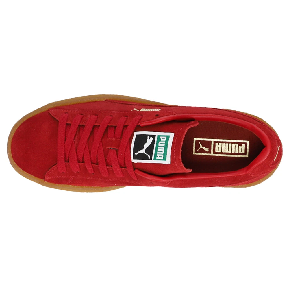 Suede Crepe Lace Up Sneakers Product Details Suede upper Lace closure Padded collar Cushioned midsole Rubber outsole PUMA’s iconic Suede style has been changing the game for more than 50 years – from Tommie Smith’s victory stand protest at the 1968 Olympics to the b-boys of 1980s NYC. Its continued evolution sees it retaining the much-loved suede upper design here, but we've switched out the legendary outsole for a real crepe sole. Crepe is a natural, sustainable material that is celebrated for supreme comfort and blends seamlessly with the exceptional quality suede upper. And so, the reign of the finely crafted Suede continues… Additional Details Color: Red Occasion: Casual Gender: Mens Age: Adult Brand: Puma
